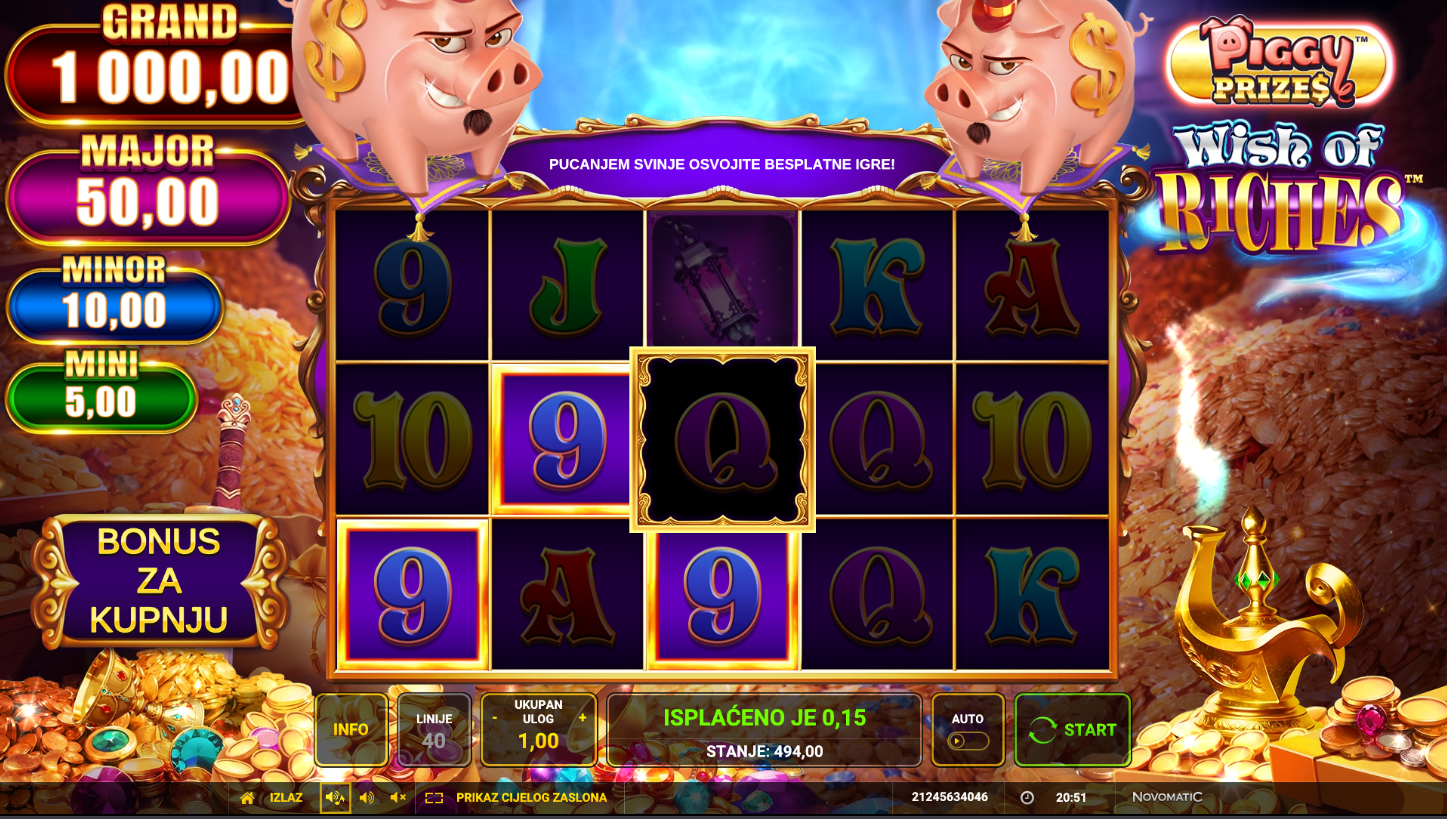 1. Ima li Piggy Prizes Wish Of Riches Buy Bonus besplatne vrtnje?