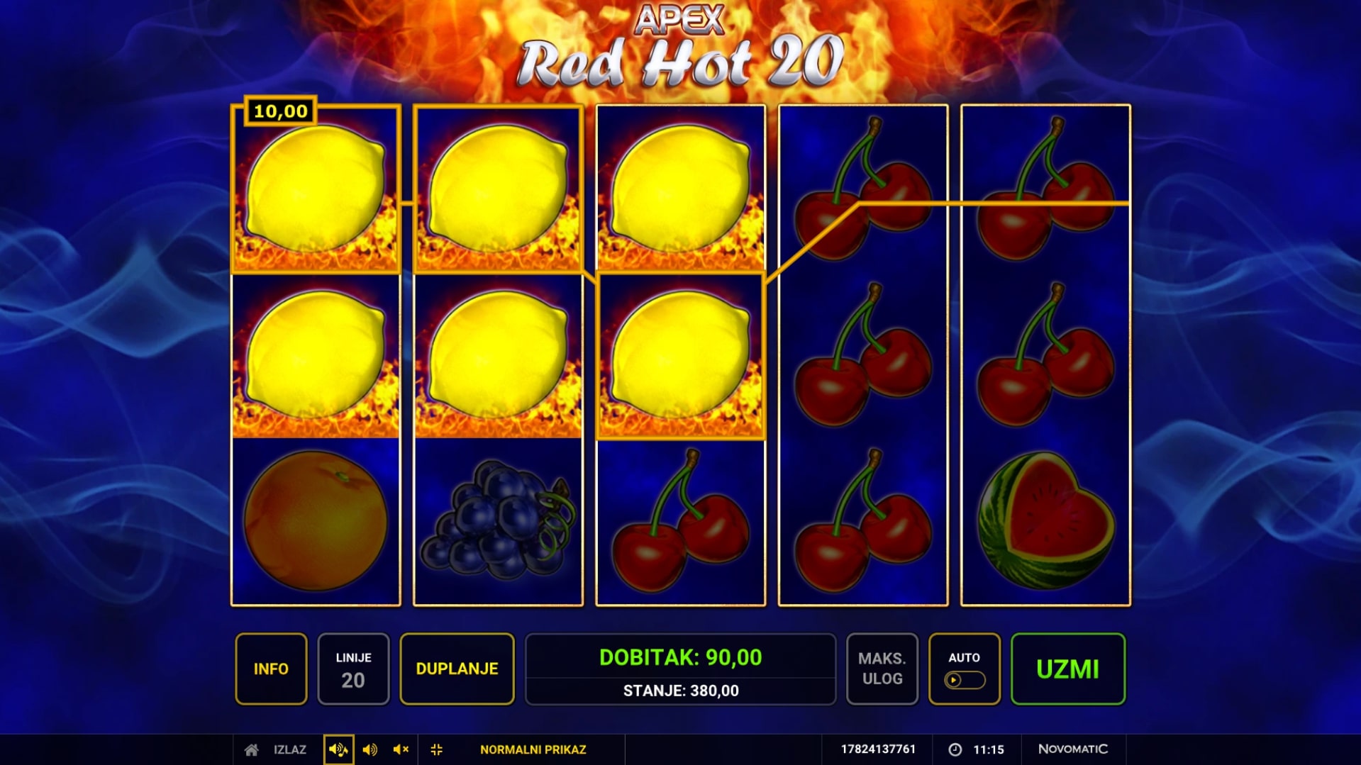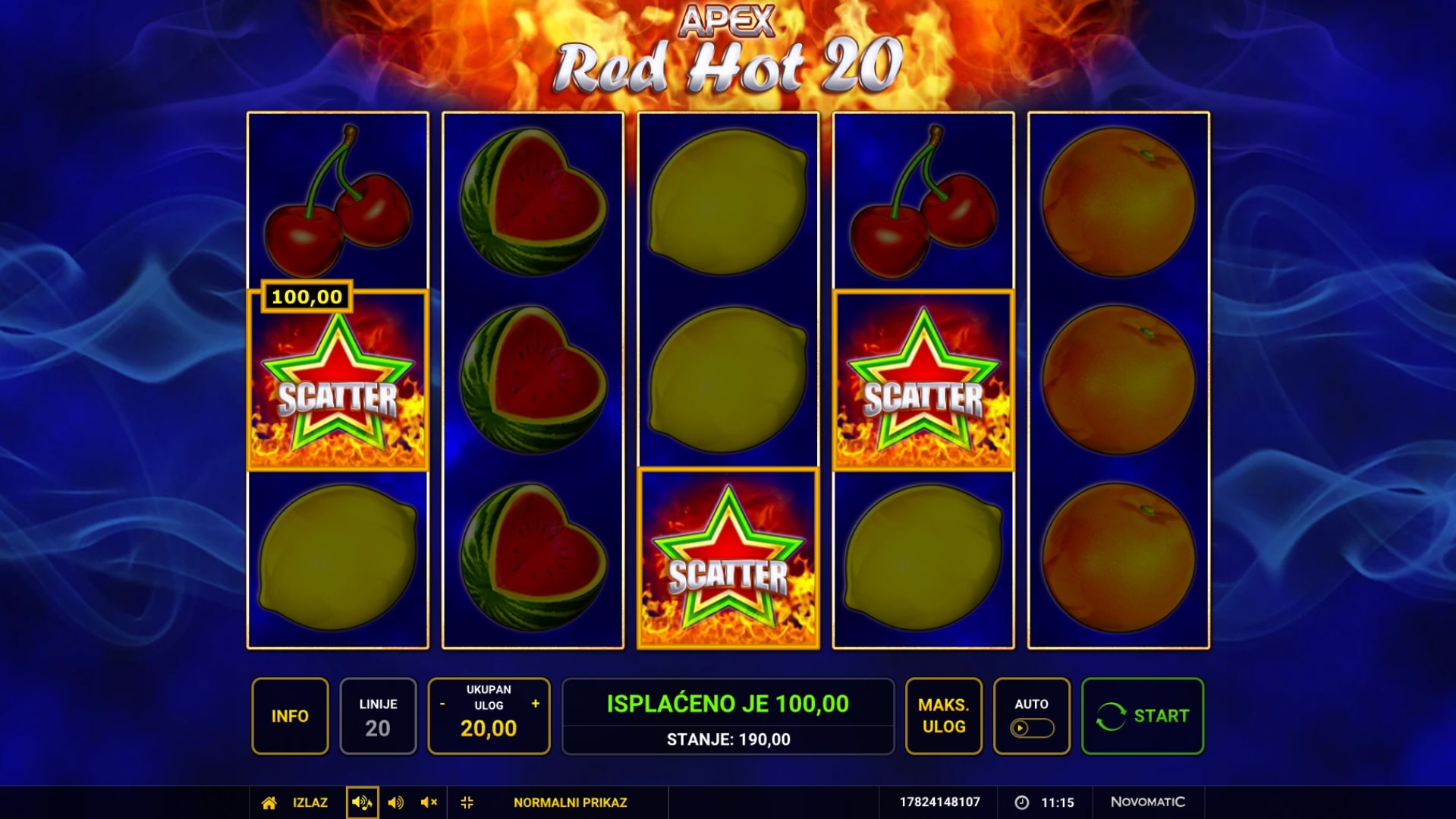 Red Hot 20 slot je igra klasičnog karaktera koja šalje igrača u nezaboravnu avanturu svijetom voća i ludih dobitaka. Najviše isplaćuju simboli grožđa, sedmica i zvijezda, dok sedmice također mogu djelovati kao zamjena za druge simbole u potrazi za dobicima. U slučaju dobitka, igrač ga može udvostručiti pogađanjem boje karte okrenute licem prema dolje. Zaigraj Red Hot 20 te osvoji osvježavajuće nagrade!