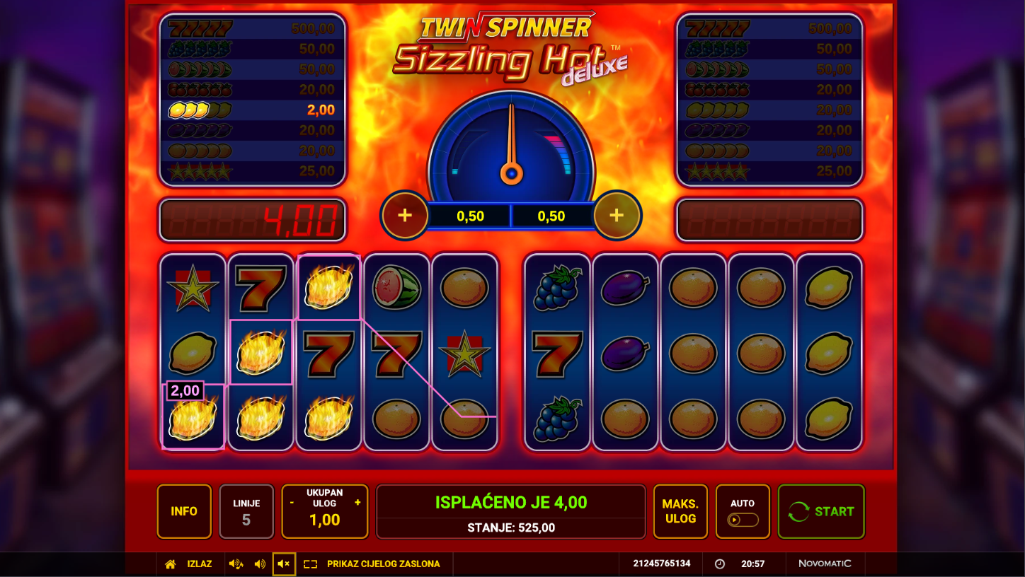 4. Koji su minimalni i maksimalni ulozi u igri Twin Spinner Sizzling Hot deluxe?