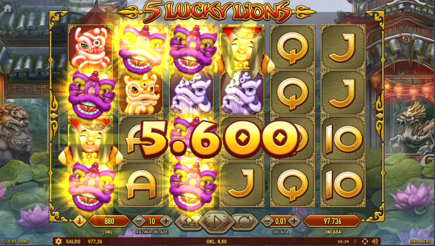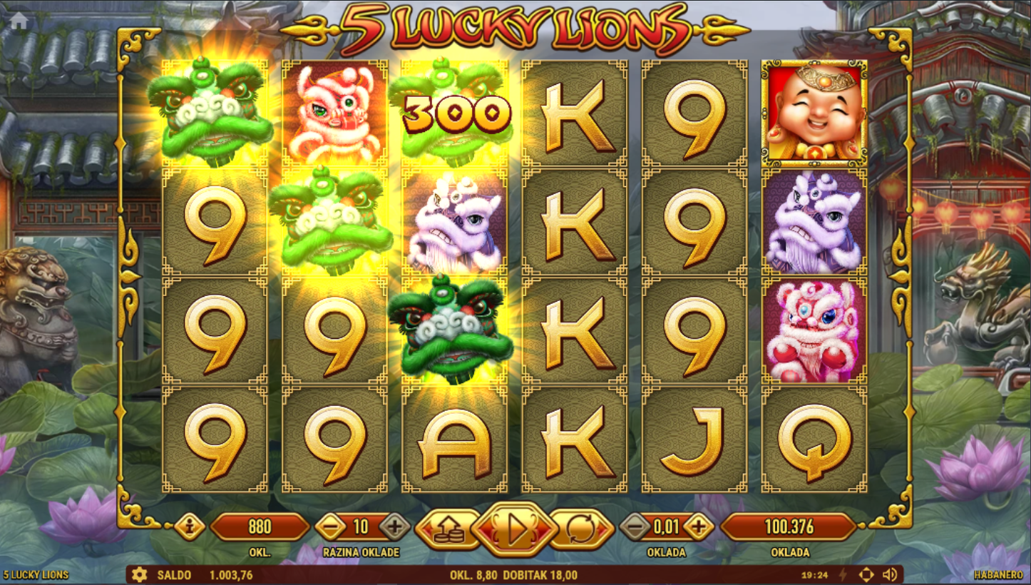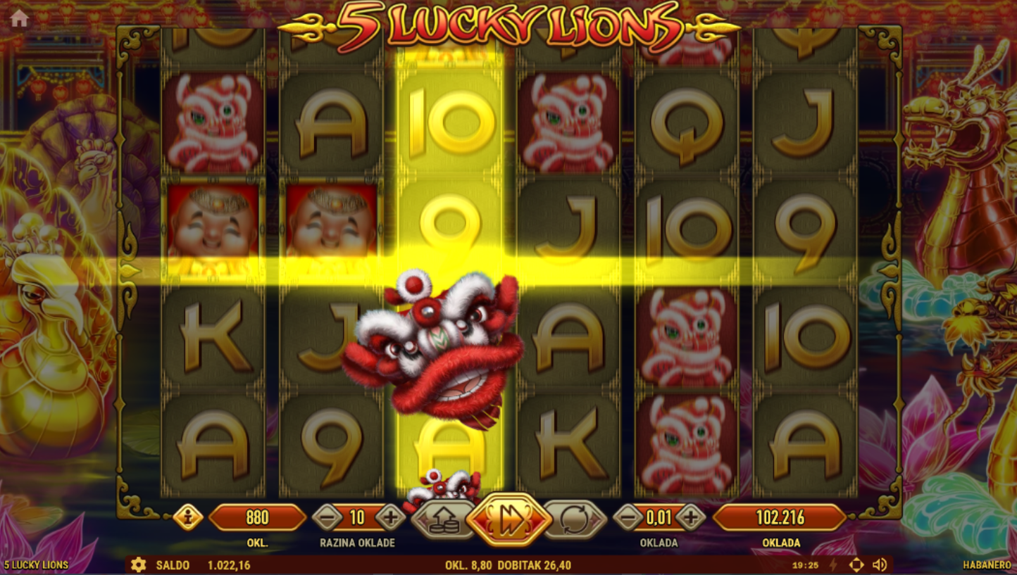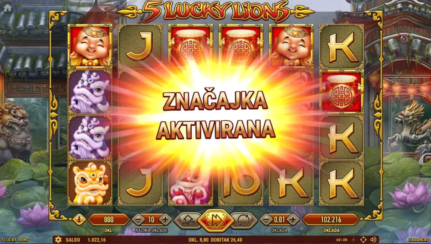 Habanero ti donosi svijet kineskih simbola sreće i šarenih lavova koji ne donose samo spektakl, već i ozbiljne dobitke. 5 Lucky Lions nudi ti šest rola i 88 načina da pogodiš zlatnu kombinaciju. Lavovi plešu kad slete, bubnjevi najavljuju dobre stvari, a atmosfera igre te uvlači kao da si na festivalu sreće. Ovo nije samo igra, ovo je zen s eksplozijom boja i potencijalom. Jesi li spreman da lav zaigra za tebe?