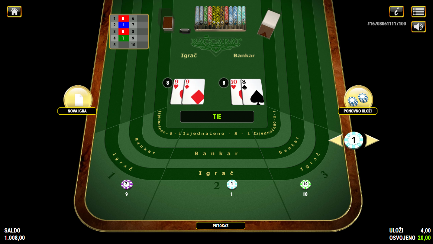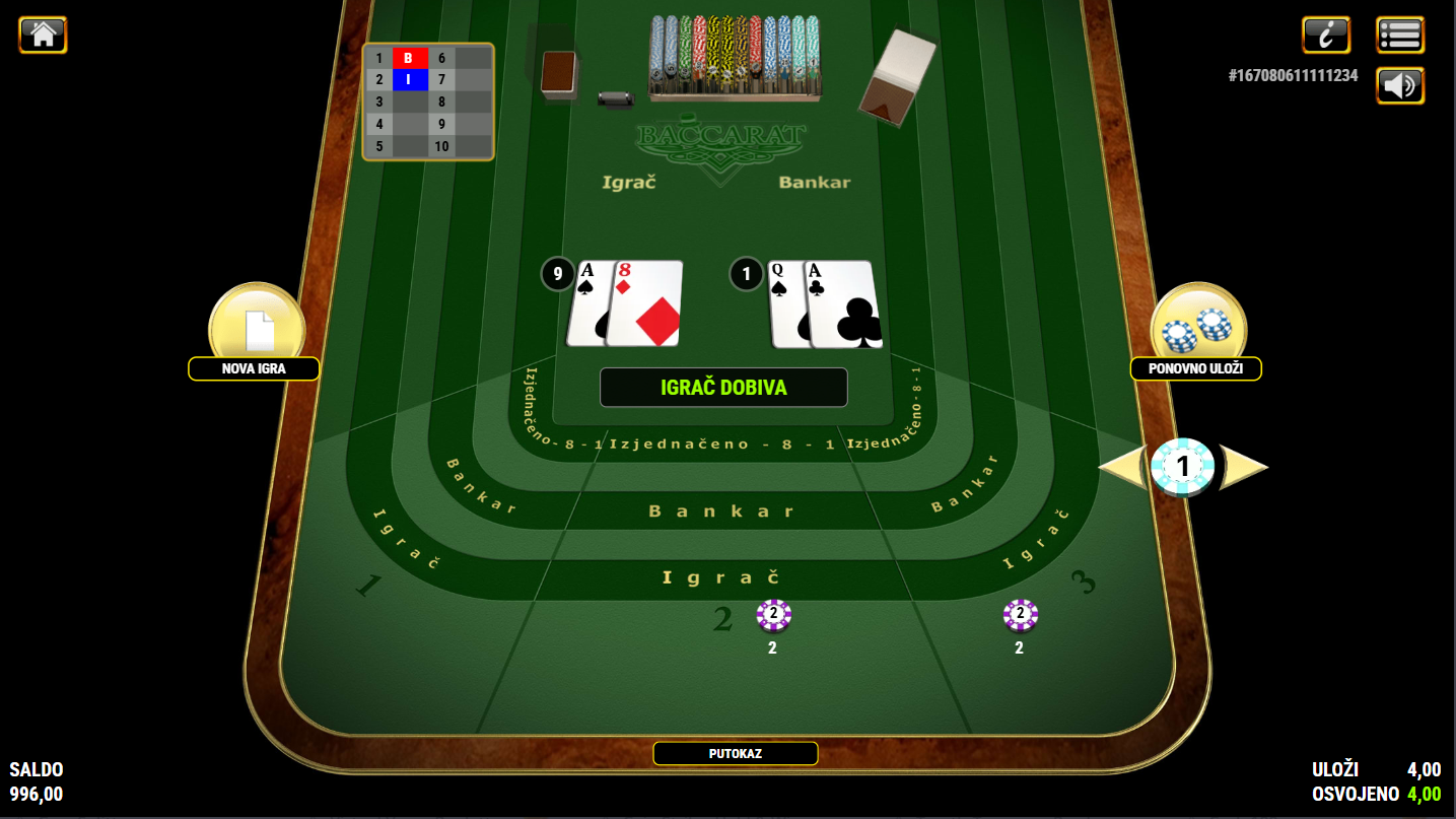 American Baccarat ima RTP od 98,94%, a volatilnost je nepoznata!
