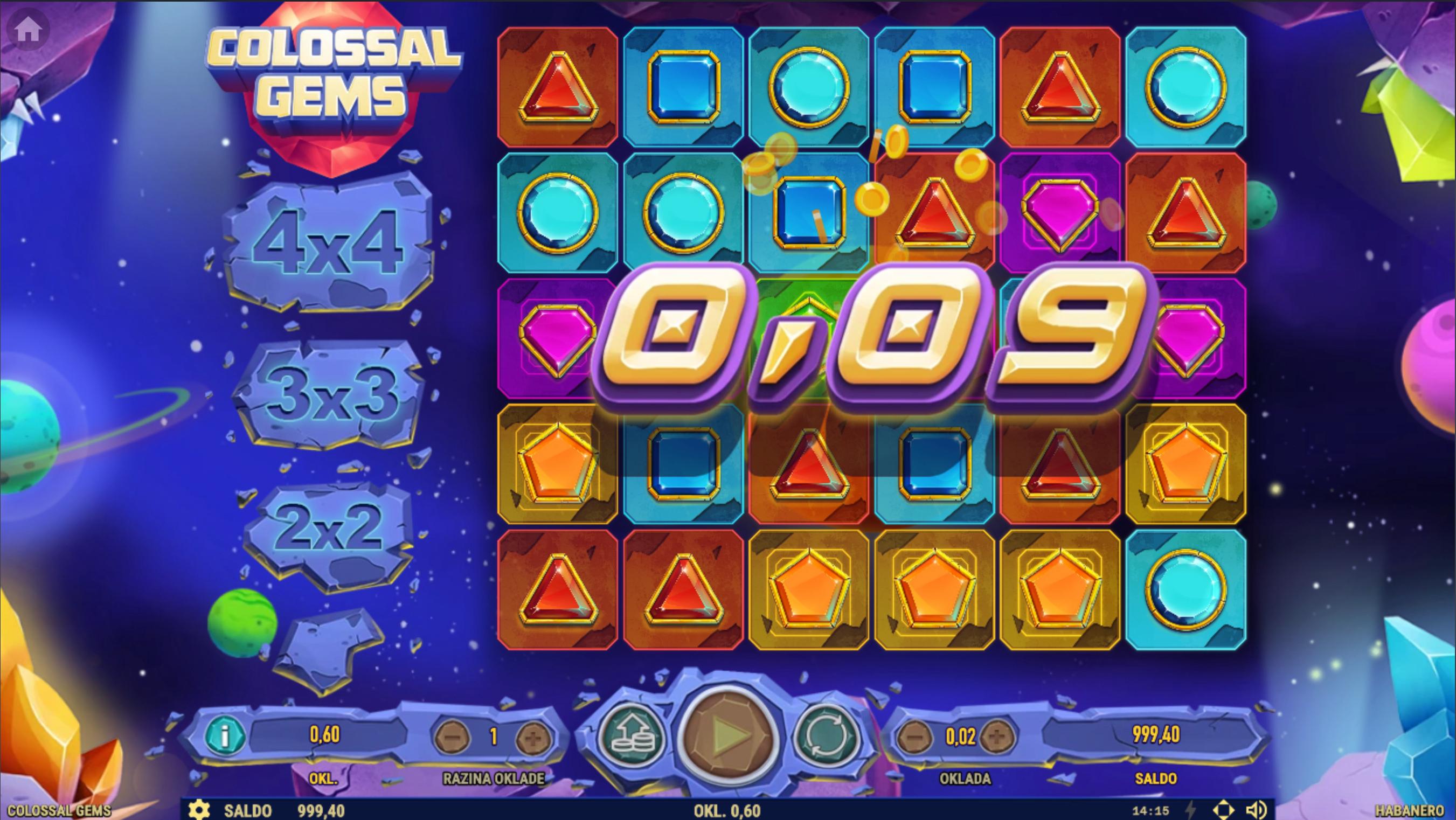 RTP igre Colossal Gems iznosi približno 96,72 %, što je u skladu s industrijskim standardima za online slot igre. Volatilnost je niska, što znači da su dobitci češći, ali manji u iznosu. Maksimalni mogući dobitak iznosi do 360.000x uloga.