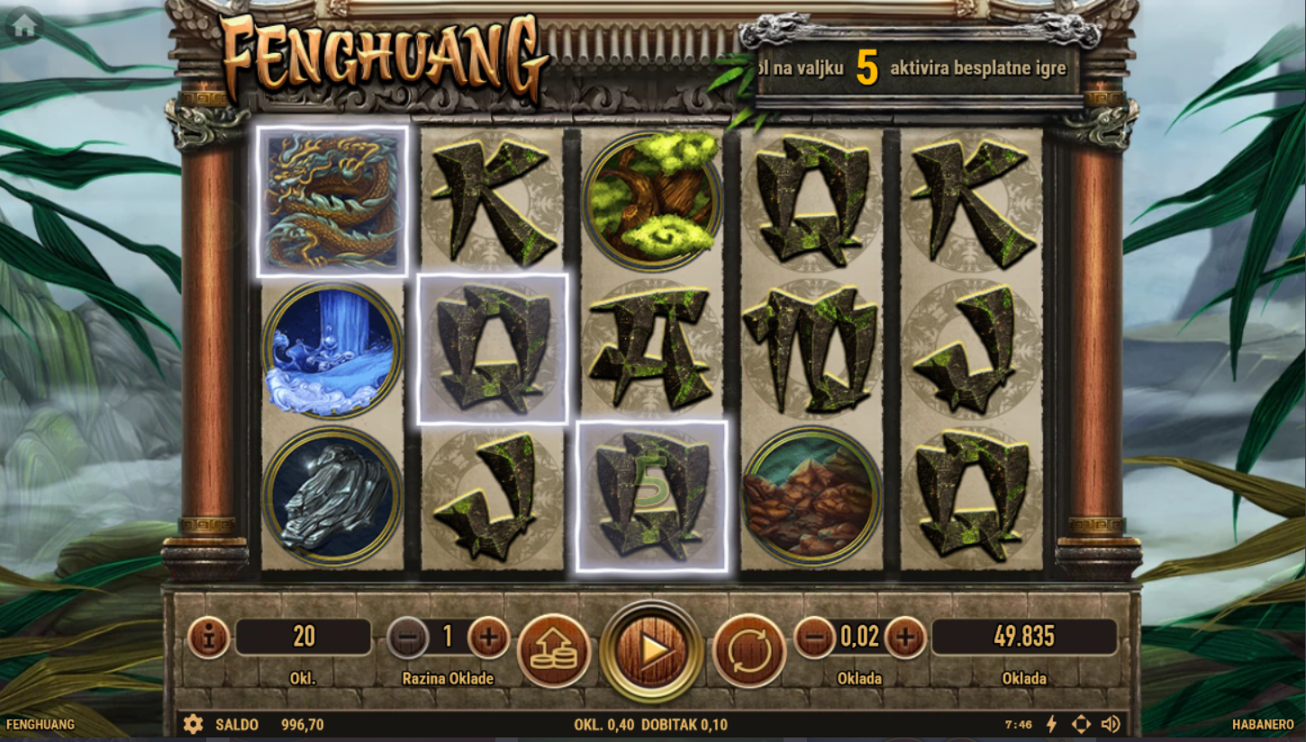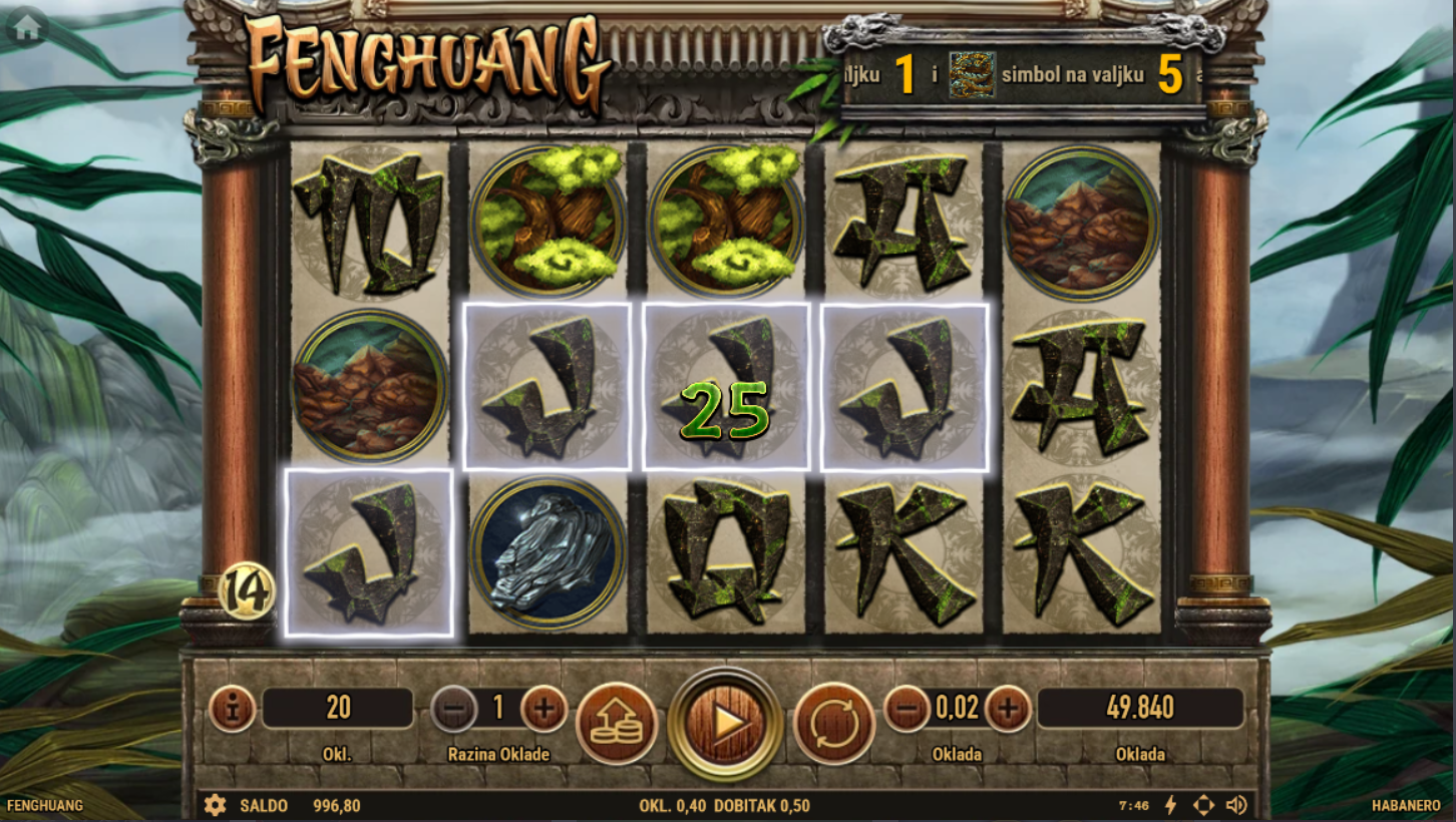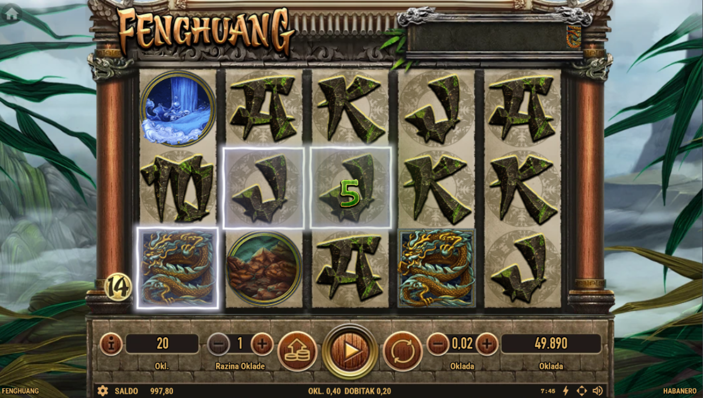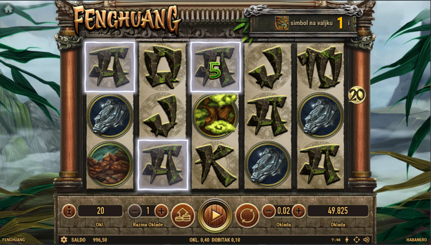 Fenghuang i Habanerote vode u srce kineske mitologije, gdje legendarni zmaj i feniks vladaju kolutima i čuvaju skrivena bogatstva. Svaka vrtnja donosi dašak mistike, uz simbole prirode, drevnih znakova i orijentalnog ugođaja. Atmosfera igre kombinira mirnoću i uzbuđenje, stvarajući osjećaj da si zakoračio u sveti hram pun legendi.