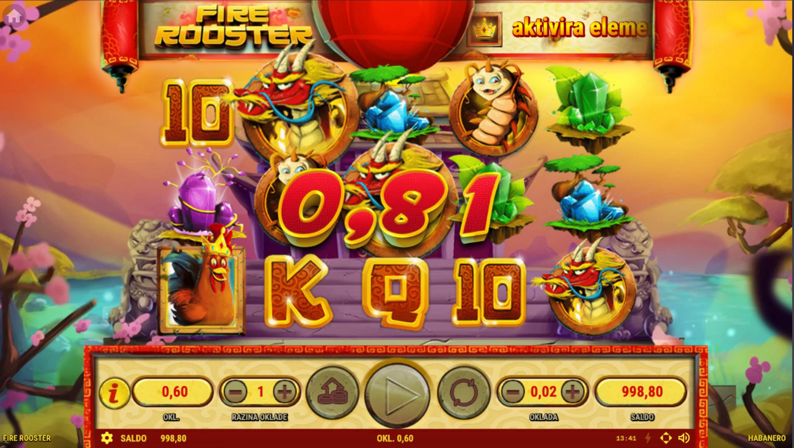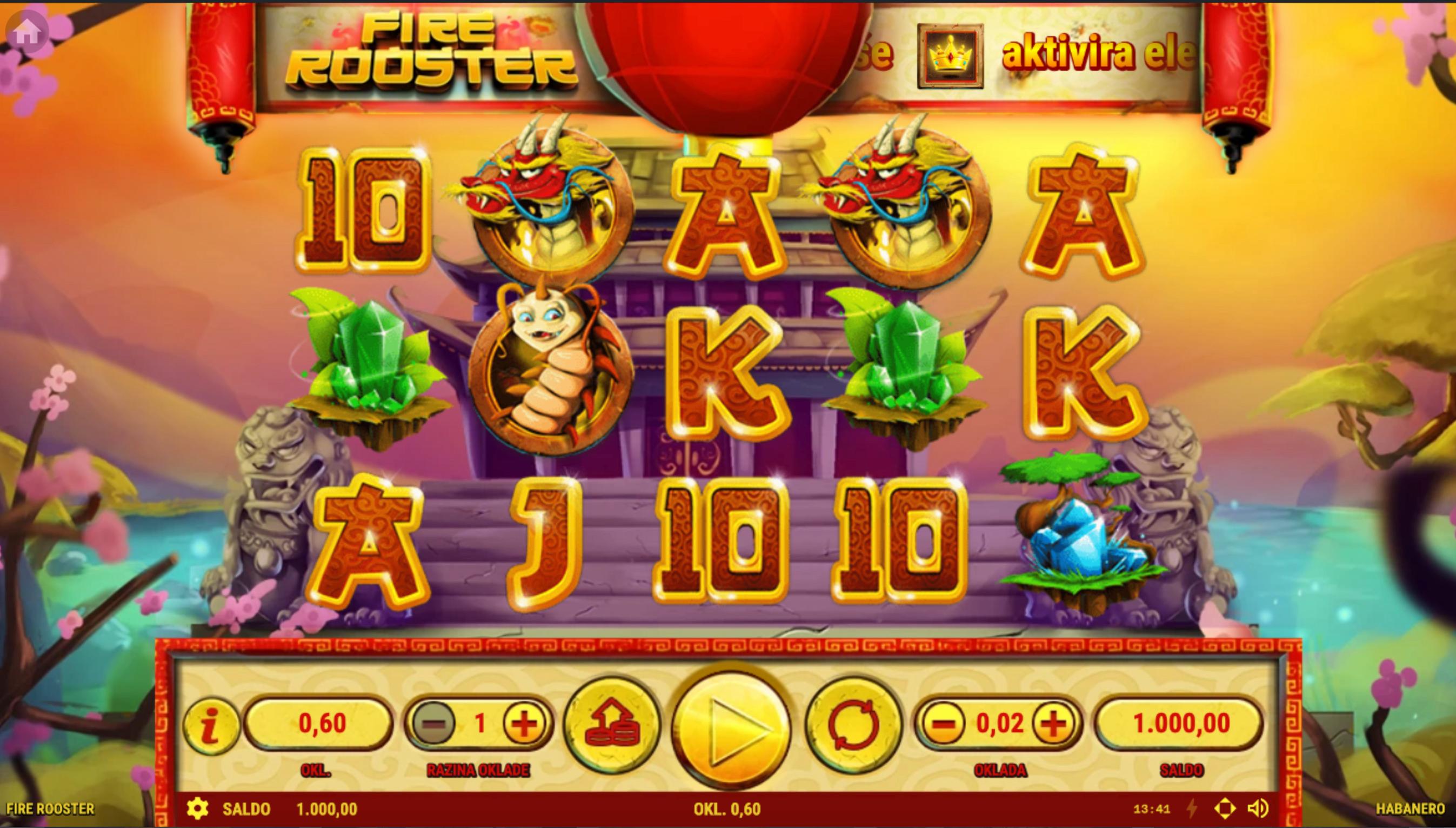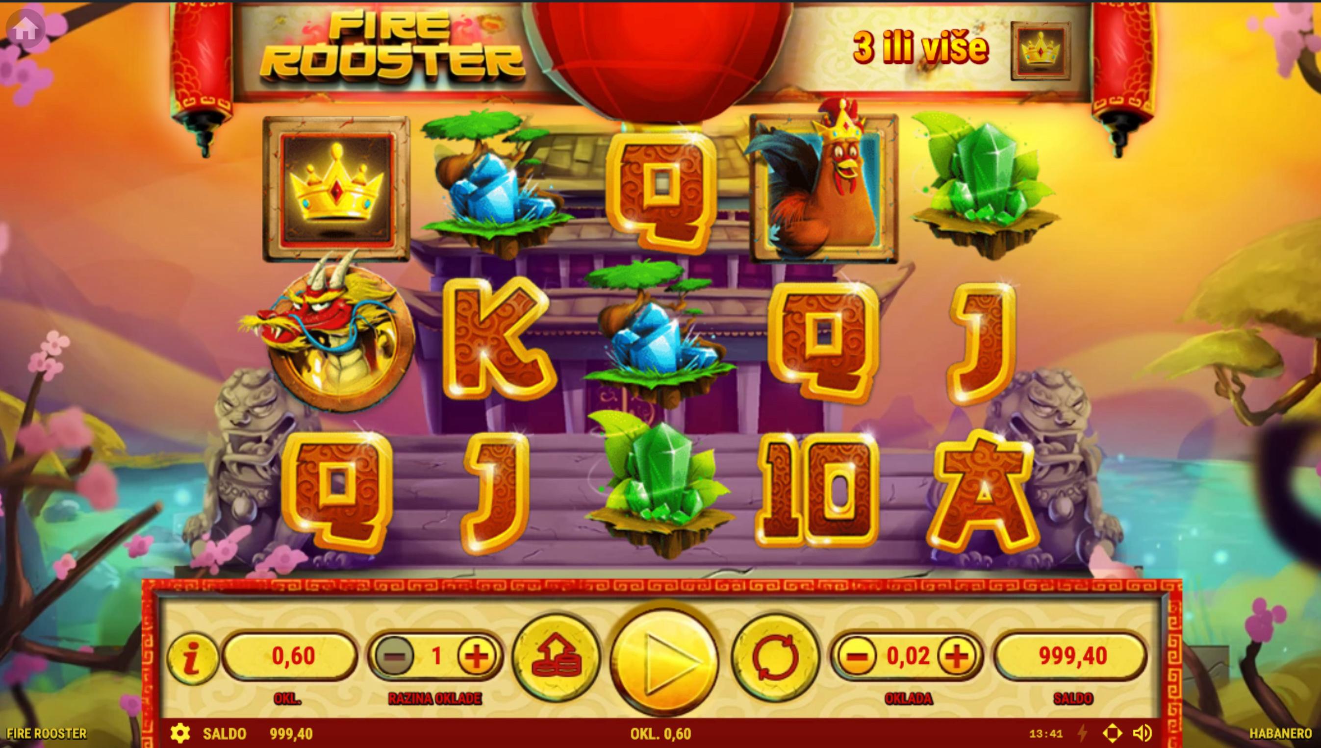 Fire Rooster je video slot koji je razvio Habanero. Igra se odvija na 5 koluta i 3 reda, s 243 načina za dobitak. Tema igre kombinira orijentalne simbole i motive kineskog zodijaka – pijetla kao centralnog simbola – uz dragulje, zmajeve i simbole iz kineske mitologije. U igri se mogu pojaviti wild simboli, scatter simboli i progresivni jackpot, a tijekom bonus rundi wild simboli mogu „eksplodirati“ i proširiti se kako bi stvorili dodatne dobitne kombinacije.