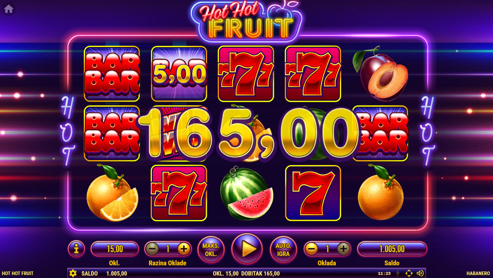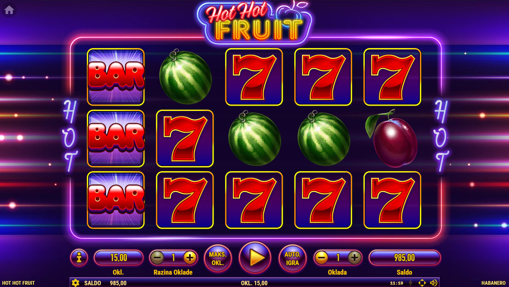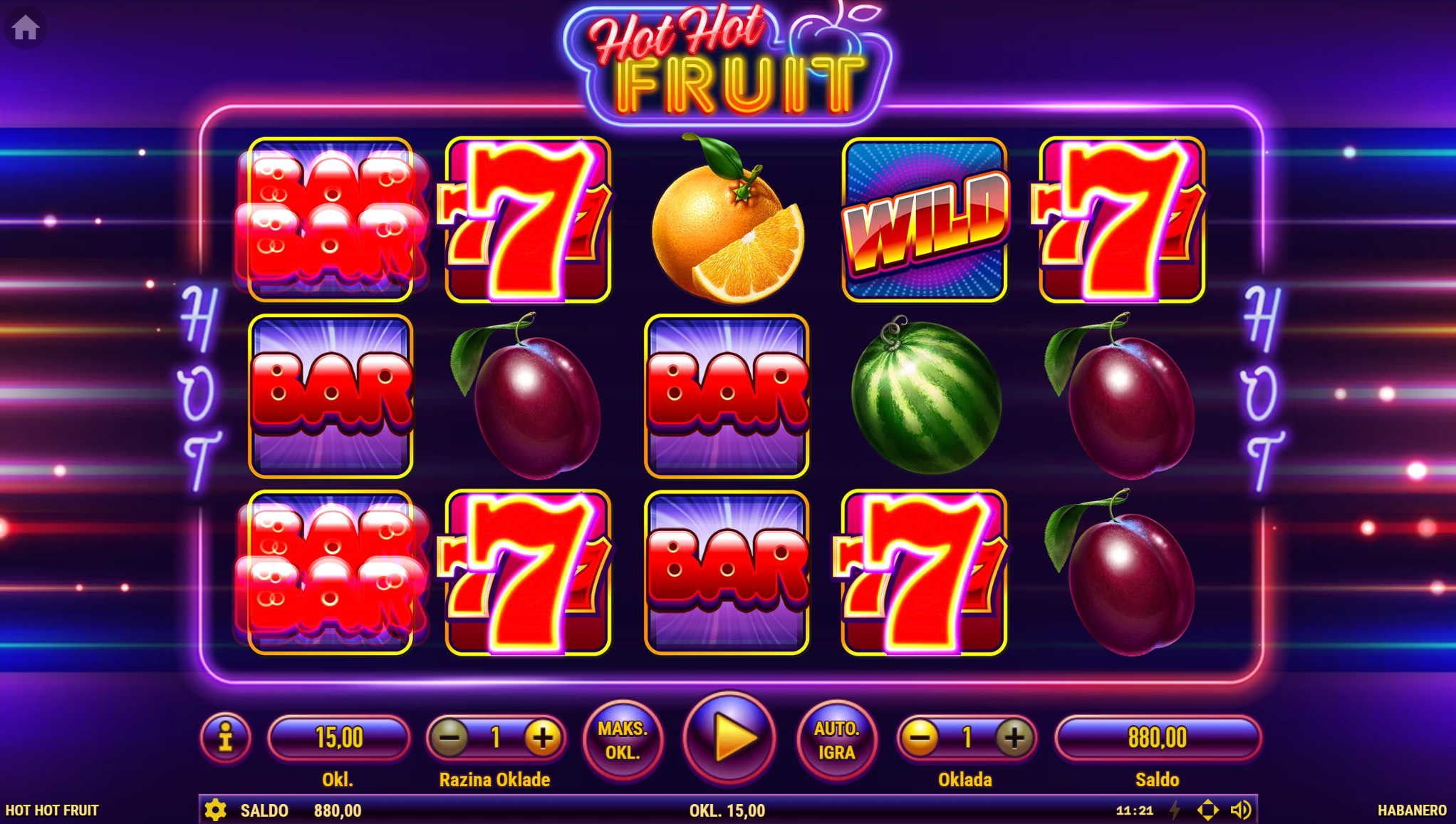 Hot Hot Fruit vodi svoje igrače kroz zabavnu avanturu obogaćenu pažljivo ilustriranim voćnim simbolima uz dodatak zlatnih efekata. Super jednostavan način igranja omogučiti će igračima dugotrajnu zabavu, a kako bi ona također bila i uzbudljiva pobrinuti će se Hot Hot Fruit wild simboli koji će tvoje dobitke pretvoriti u veće i učestalije. Ako voliš igre koje ti pružaju izvrstan omjer rizika i dobitaka došao si na pravo mjesto! Prepusti se zabavi i užitku te sa sobom odnesi velike dobitke!