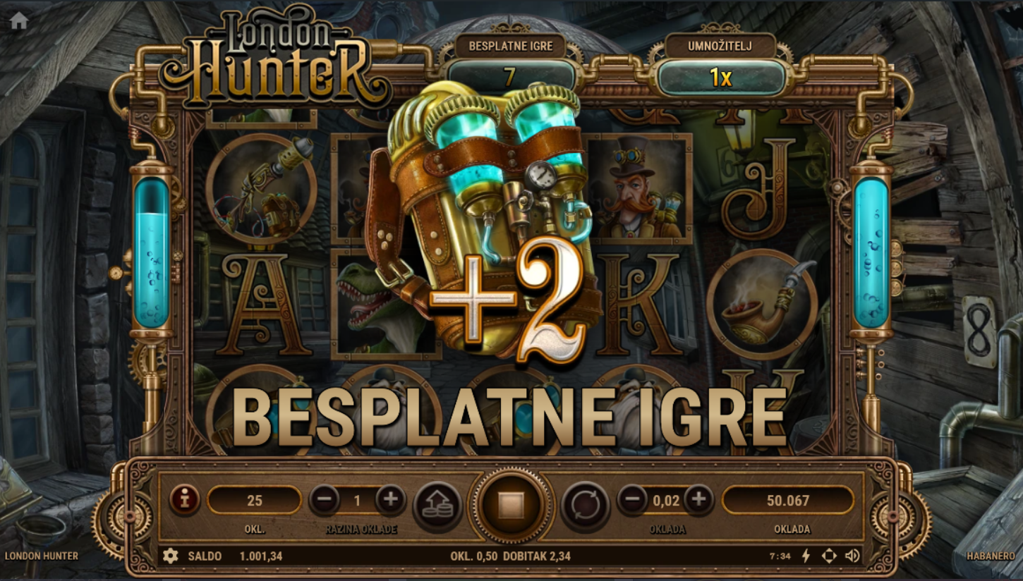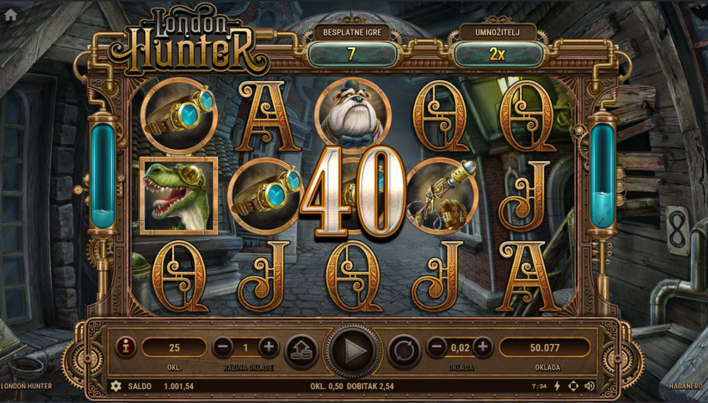 RTP iznosi oko 96.6%, što je iznad prosjeka slot igara. Volatilnost je srednja, pa igra nudi dobar balans između manjih i većih dobitaka. Najveći aduti su bonus besplatnih vrtnji i nasumični jackpoti. London Hunter je idealan za one koji vole steampunk estetiku i dinamičan gameplay.