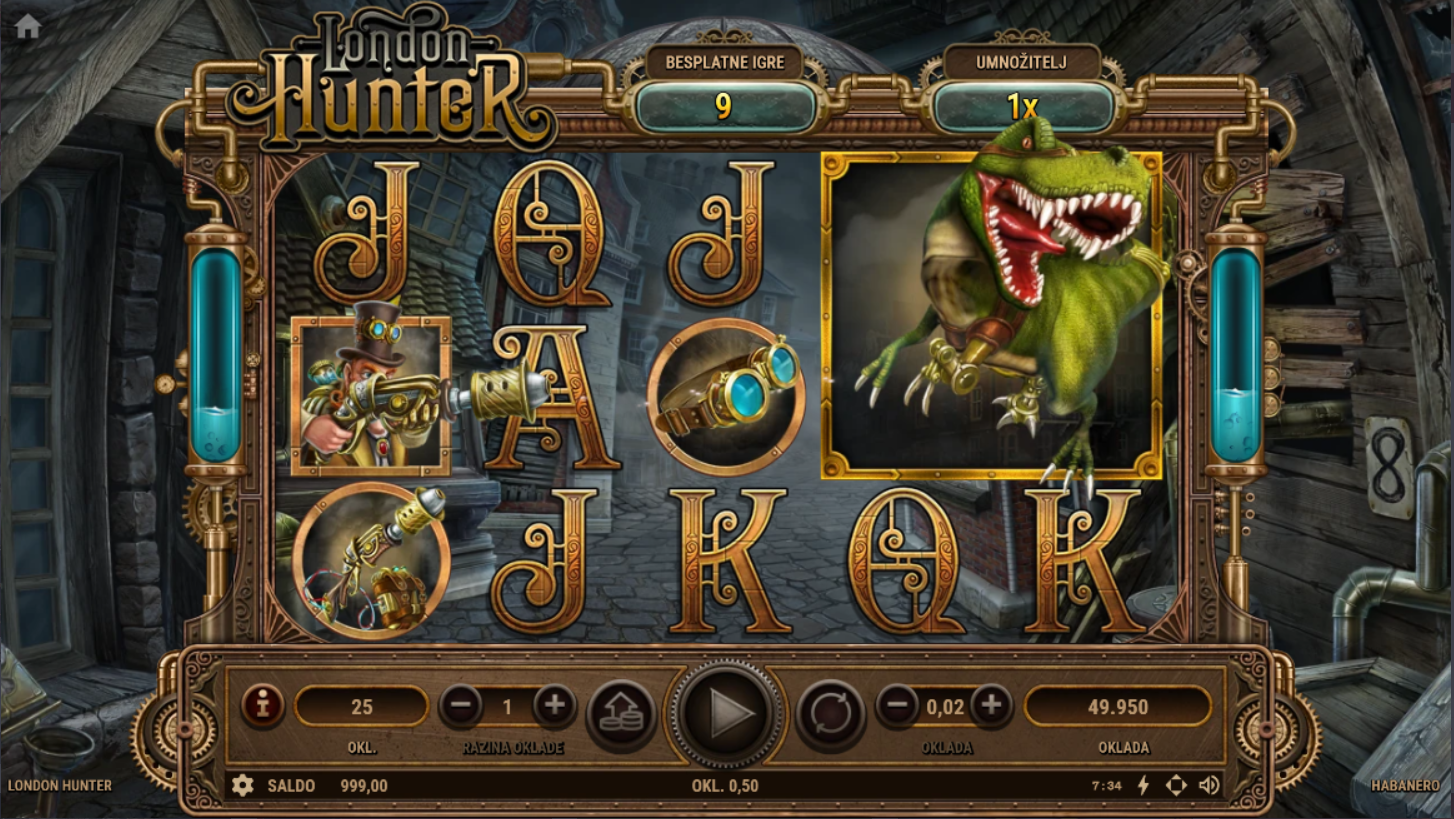 London Hunter je steampunk slot od Habanera smješten u viktorijanski London, gdje lovac juri strašnog T-Rexa. Igra se na 5 kolona, 3 reda i 25 fiksnih linija. Atmosferu čine parni strojevi, misteriozni grad i uzbudljivi simboli poput lovca, puške i samog dinosaura. Vizuali i glazba stvaraju dojam prave avanture u alternativnoj povijesti.