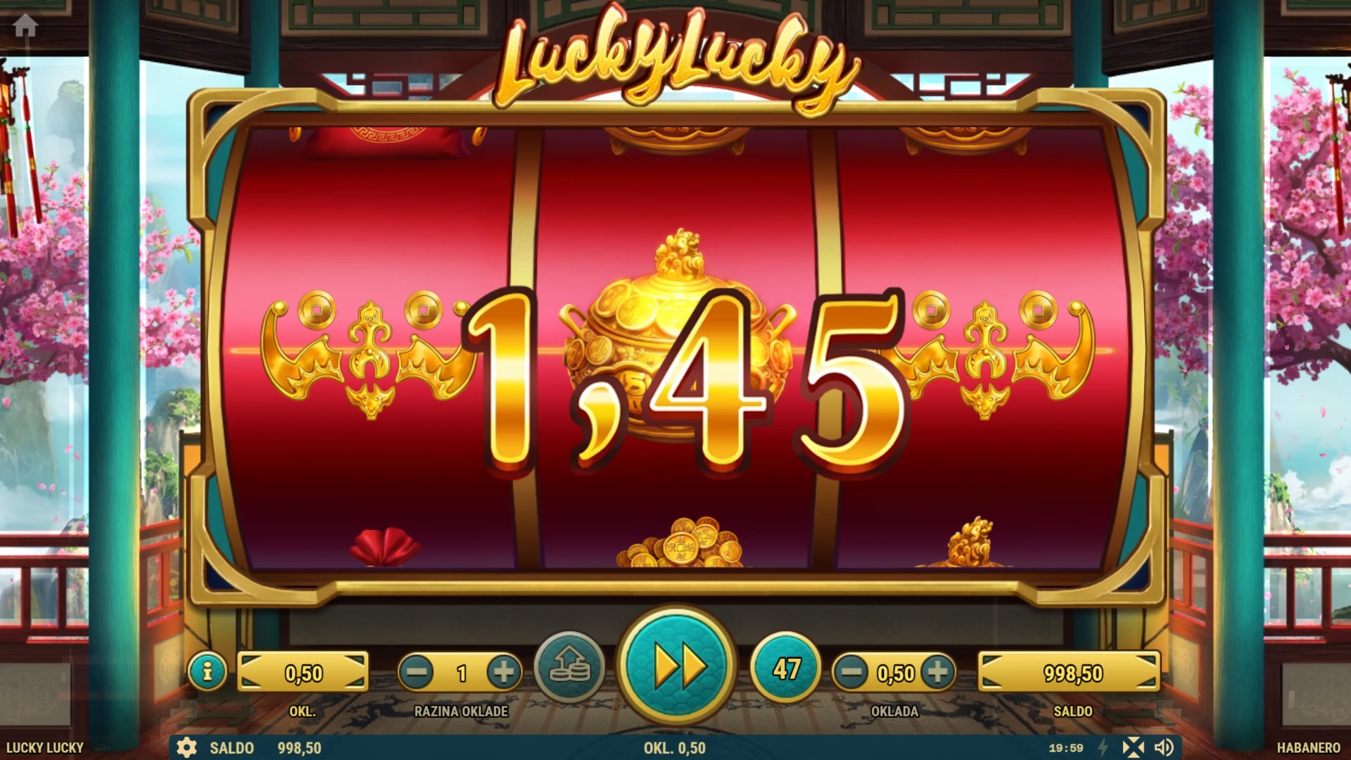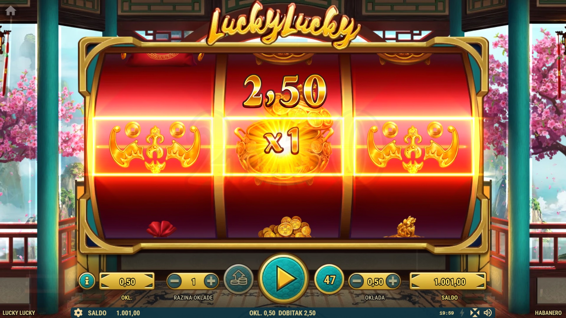 Lucky Lucky je igra jednostavna za igranje. Sve što trebaš napraviti je zavrtjeti bubnjeve i nadati se najboljim kombinacijama simbola. Budući da postoji samo jedna isplatna linija, kombinacije se računaju isključivo s lijeva na desno. Tri identična simbola donose nagradu, pri čemu su zlatno drvo, vreće novca i zlatni ukrasi oni koji donose najveće iznose. Wild simbol ne samo da mijenja druge simbole, već može nasumično dodati množitelj x2 ili x3, što znači da dobitci mogu biti značajno povećani – pogotovo ako se više Wild simbola spoji u istoj kombinaciji!