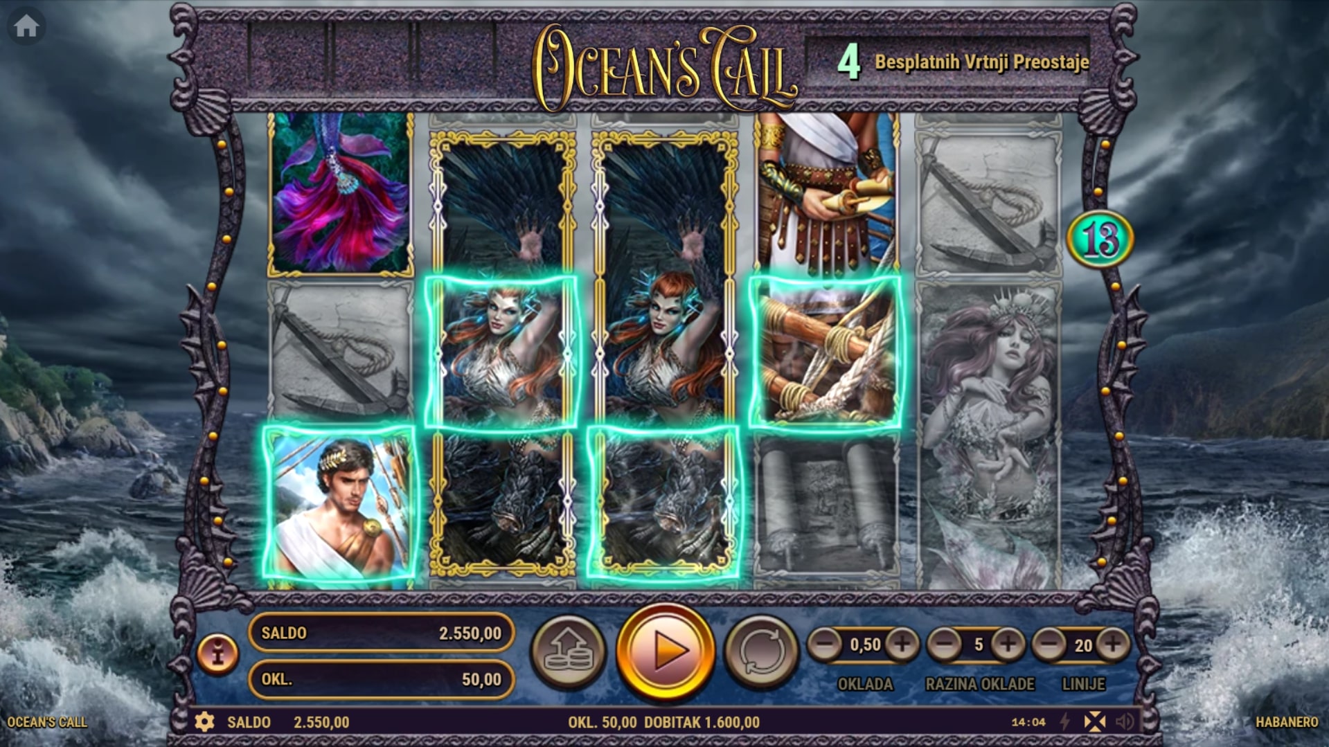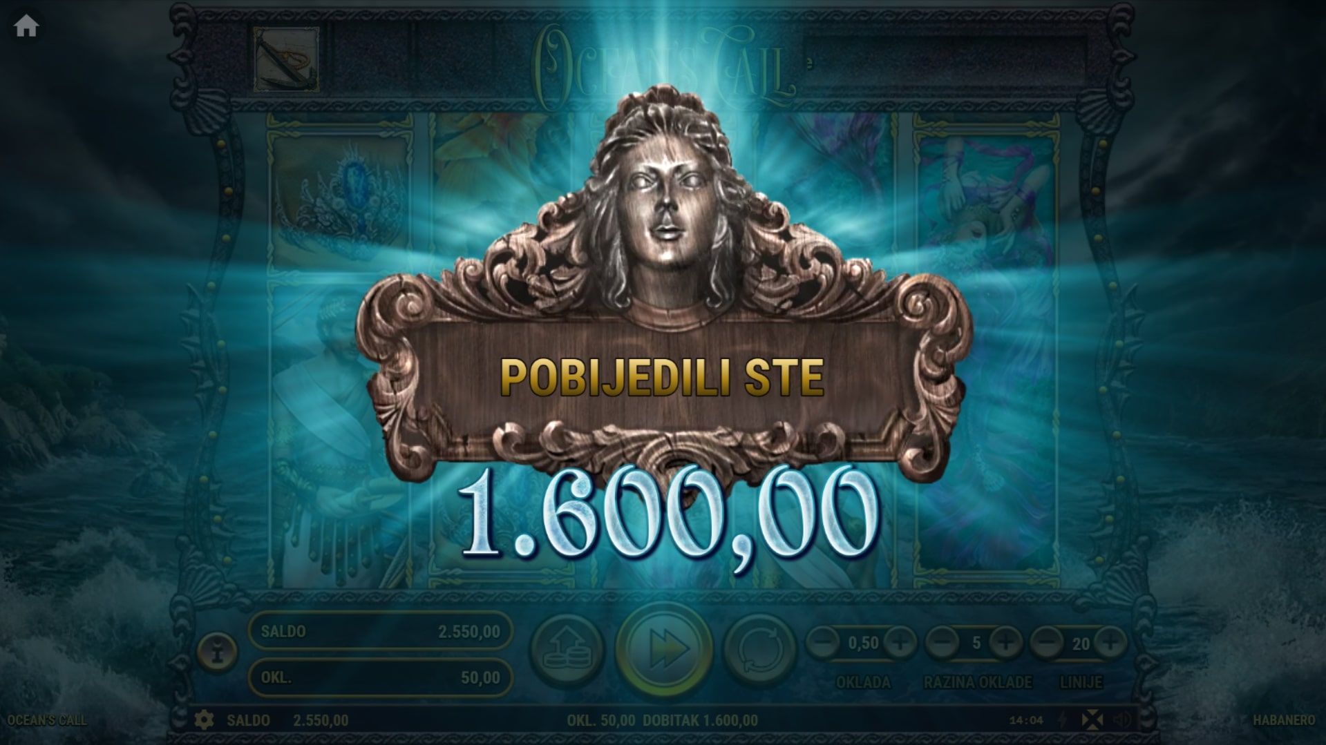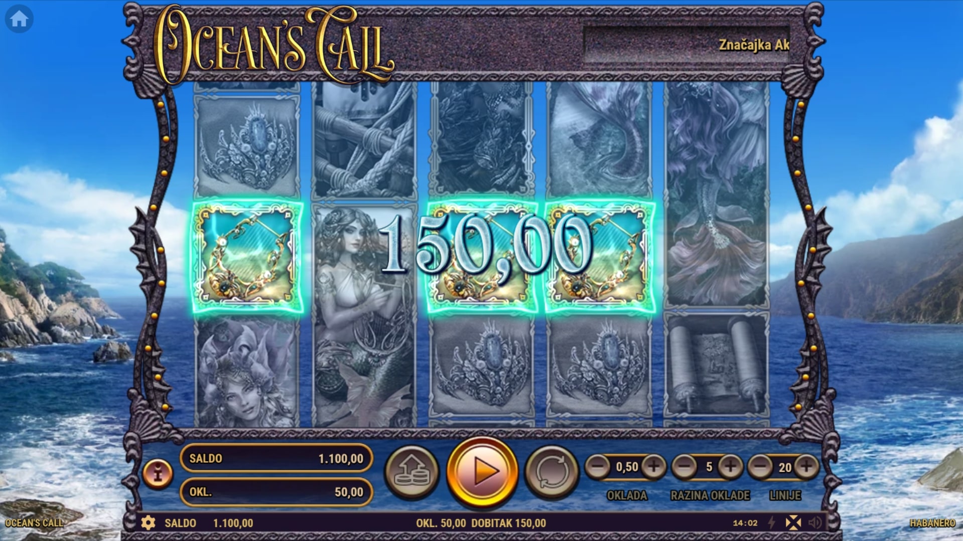 Ocean's Call slot je igra avanturističkog karaktera koja igrača vodi u pustolovinu dubokim oceanima koji skrivaju razne tajne i dobitke. Najviše isplaćuju simboli mape i tijare, dok igra sadrži razne simbole sirena koji mogu prekriti cijeli kolut, od kojih jedan služi kao zamjena za druge simbole. Besplatne vrtnje pokreću se pojavom simbola harfe. Zaigraj Ocean's Call te osvoji misteriozne nagrade!