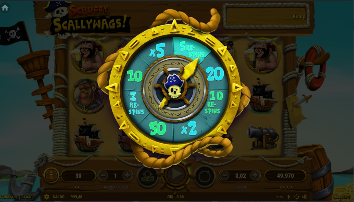 Da, Scruffy Scallywags nudi progresivni jackpot koji se može osvojiti nasumično.