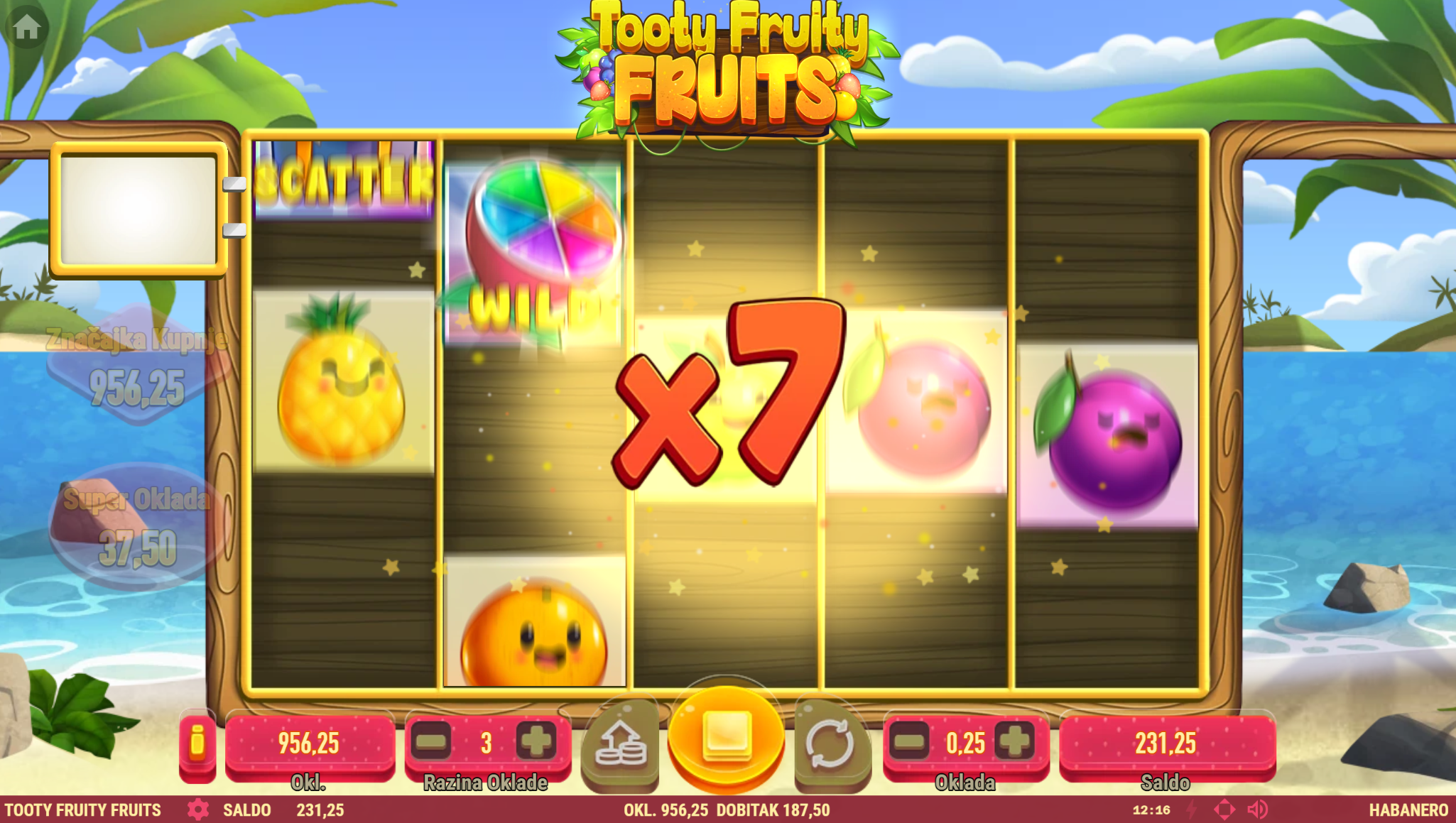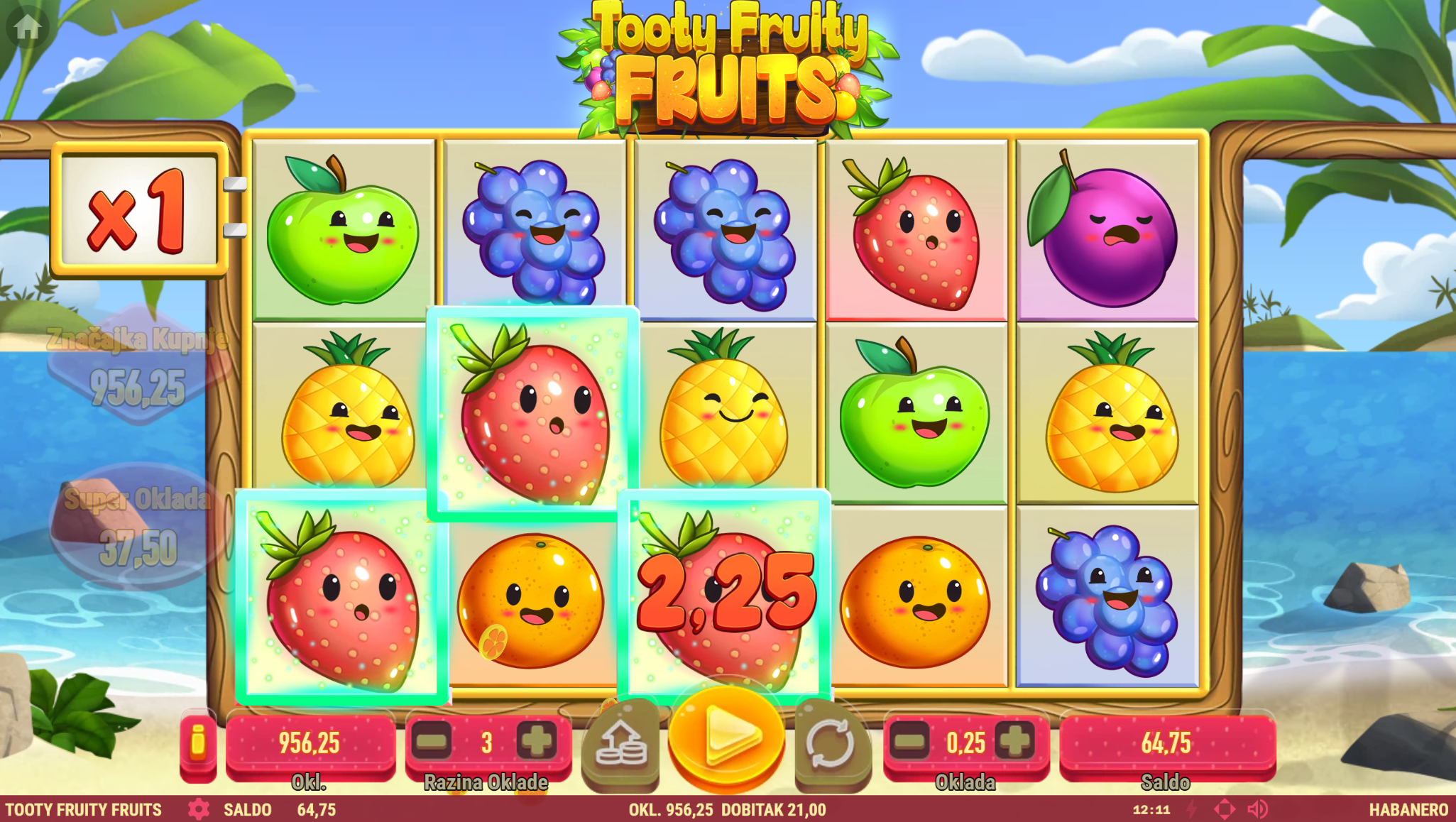 Tooty Fruity Fruits vodi svoje igrače kroz fantaziju voćnih okusa začinjenu motivima zlata i bogatim wild simbolima. Primamljivo ilustrirano voće jednostavnog dizajna kao i način igranja učiniti će dozu zabave i zanimacije nedostižnom! Kako uzbuđenju tu nebi bio kraj pobrinuti će se wild simbol i igranje pretvoriti u super uzbudljivo te bogato po pitanju dobitaka! Kao jedan od najpopularnijih slotova, Tooty Fruity Fruits odličan je izbor za sve igrače koji vole izvrstan omjer rizika i dobitaka.