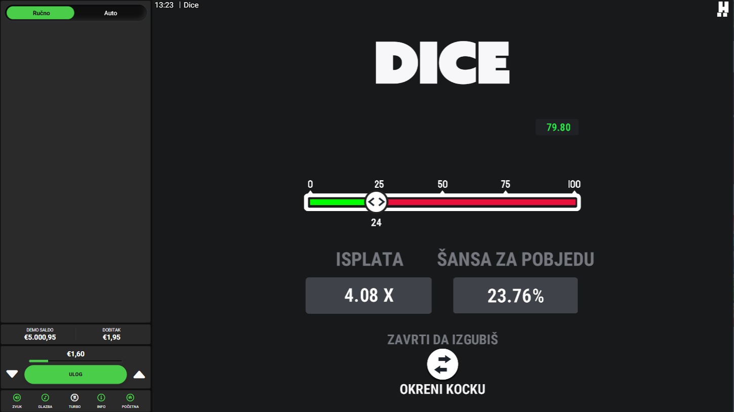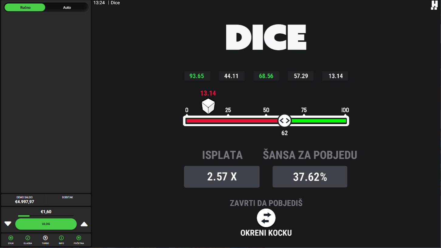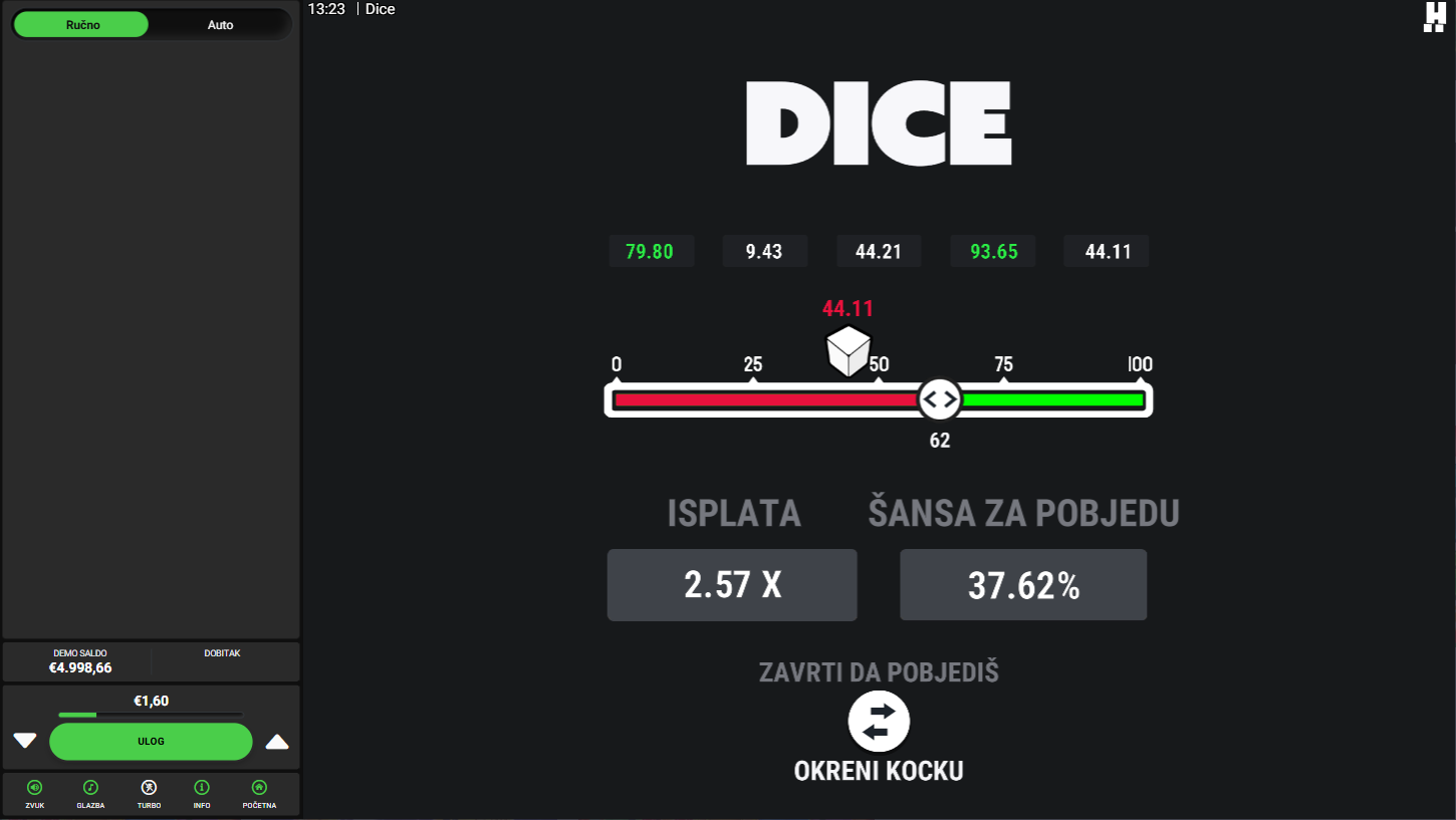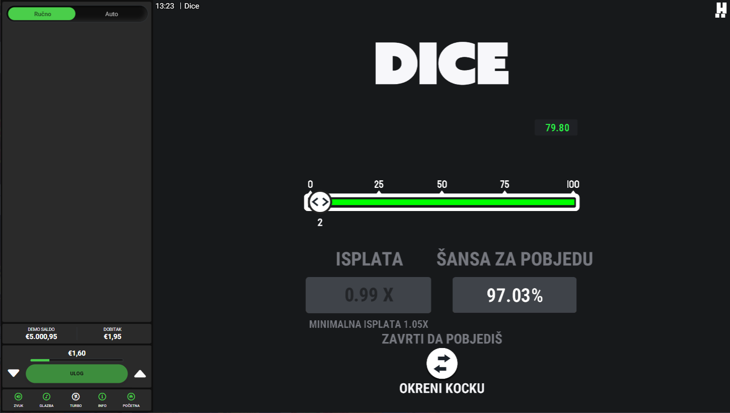 4. Koji su minimalni i maksimalni ulozi u igri Dice?