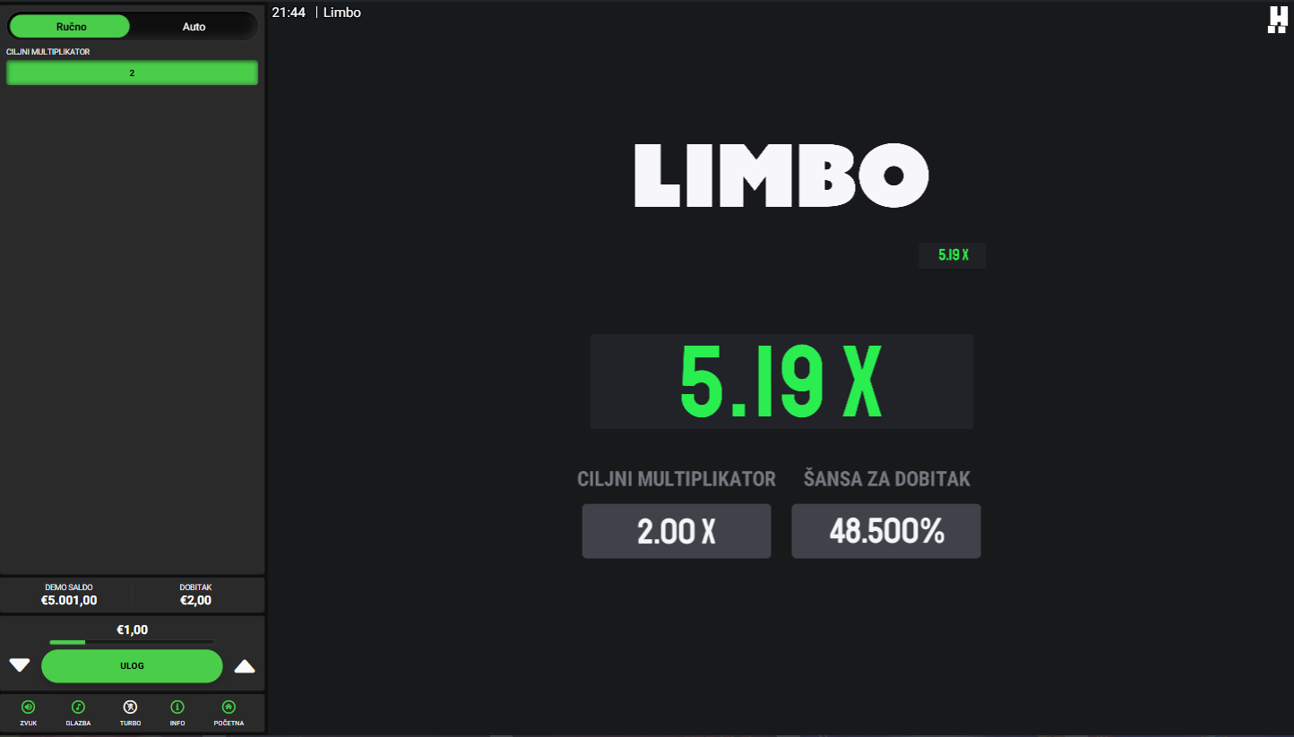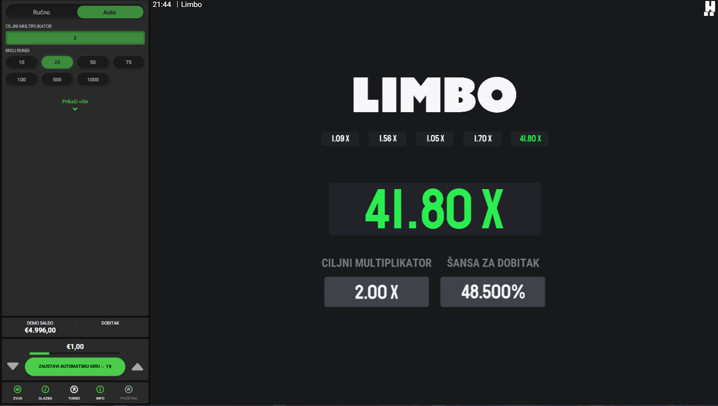 4. Koji su minimalni i maksimalni ulozi u igri Limbo?