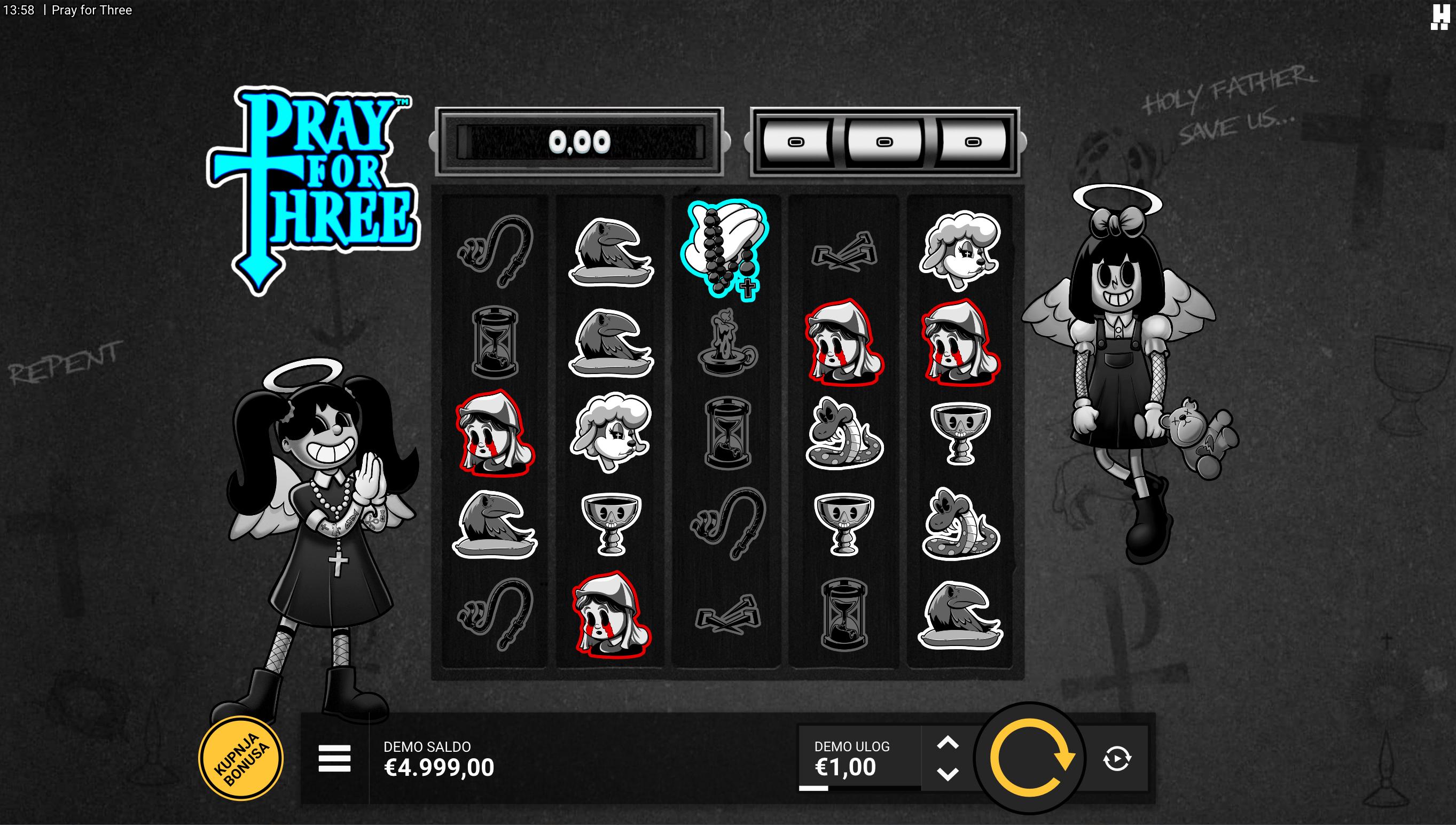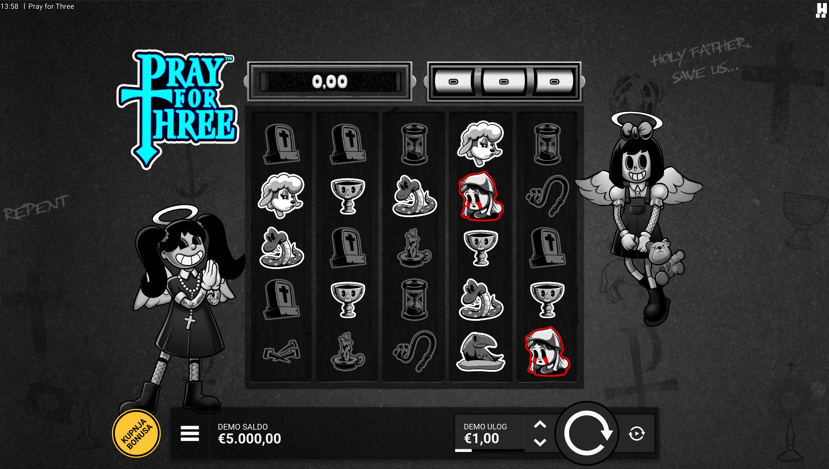 Uroni u mračni svijet podzemlja uz Pray for Three, slot igru providera Hacksaw Gaming koja donosi jedinstvenu gotičku atmosferu s elementima mistike i crnog humora. Vizualno upečatljiv stil i dinamične animacije stvaraju intenzivno iskustvo igranja. Iako igra ne uključuje jackpot, Pray for Three nudi veliki potencijal dobitaka kroz multiplikatore i posebne bonus značajke.