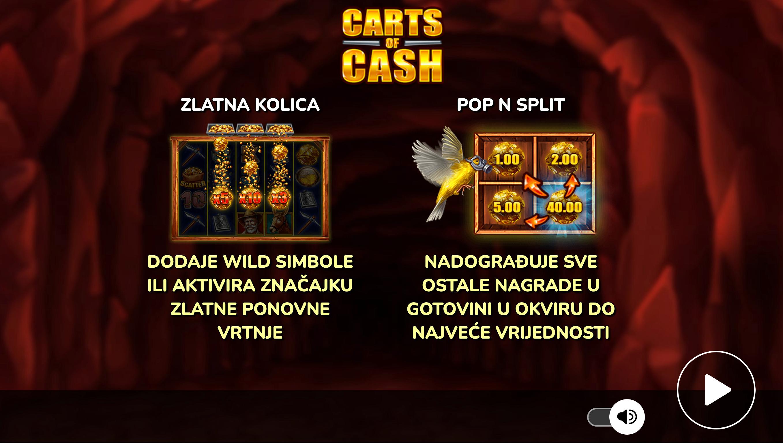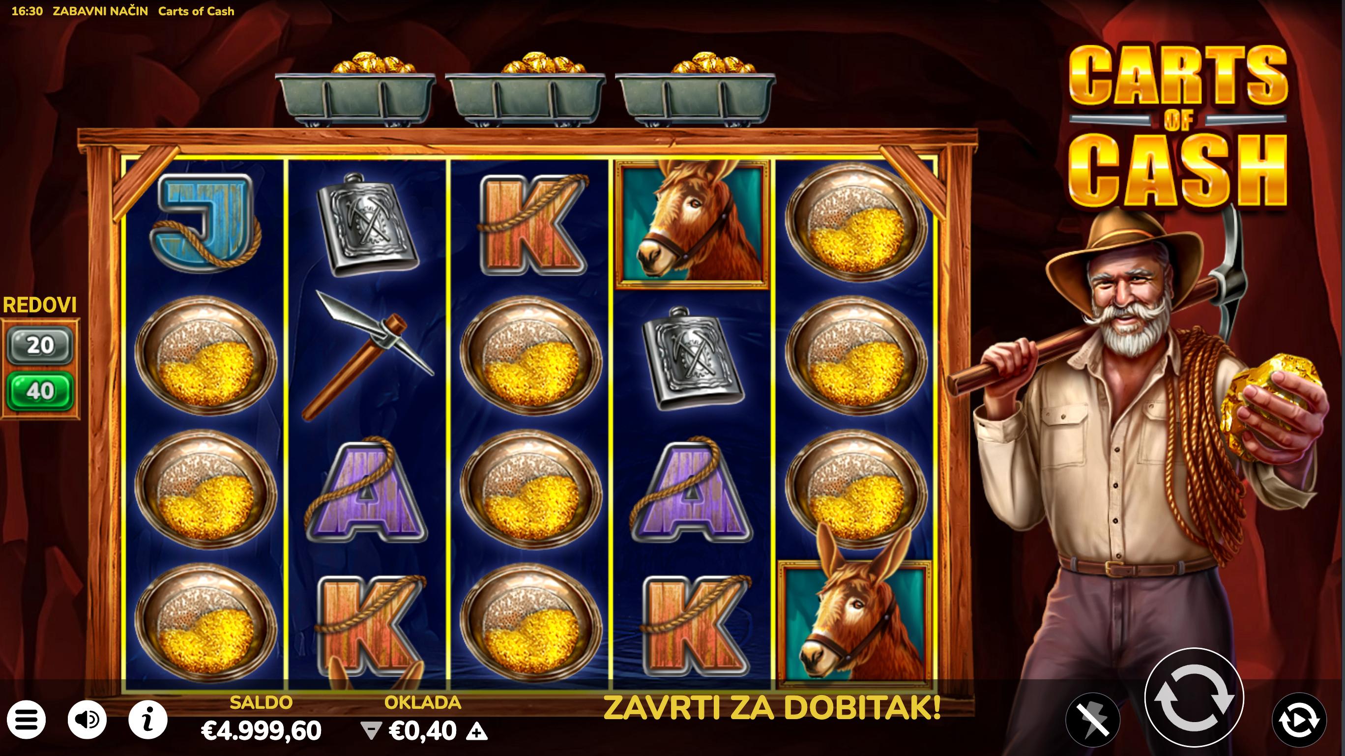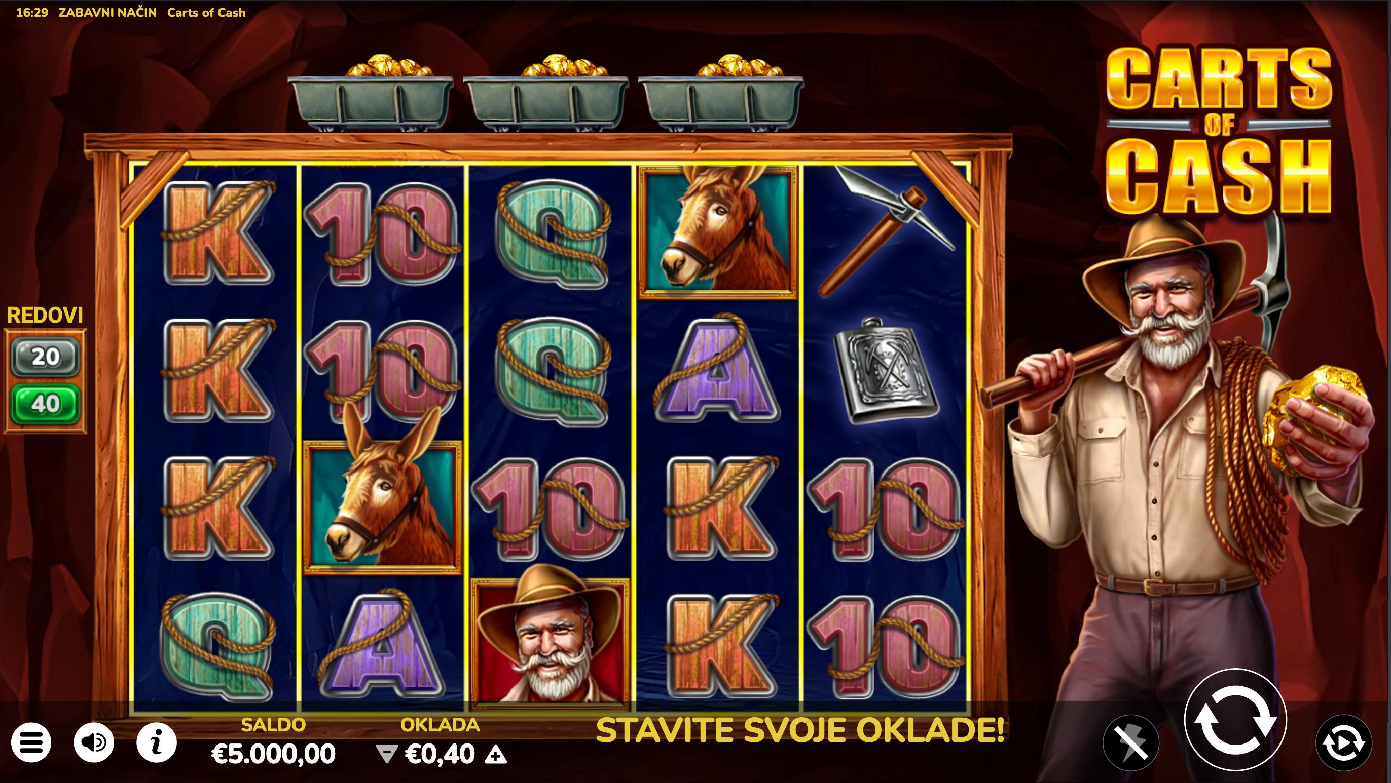 Carts of Cash je video slot providera Oryx, smješten u rudarsku tematiku gdje simboli prikazuju rudare, zlato i kolica.