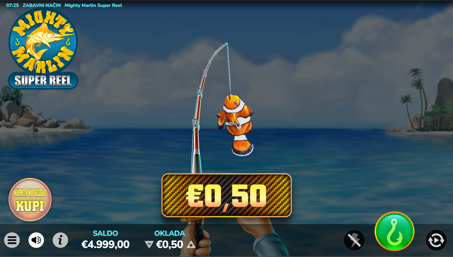 Zaboravi složene linije i tisuće simbola, ovdje se sve vrti oko jednog savršenog spina! Postavi ulog, baci udicu i gledaj kako kolut odlučuje hoćeš li izvući sitnu ribu ili ogromnog Marlina. Uz opciju Bulk Buy, možeš baciti više udica odjednom i povećati šanse za ulov života. Igra je brza, jednostavna i stvorena za one koji vole trenutni adrenalin. Svaki klik je novi val uzbuđenja!