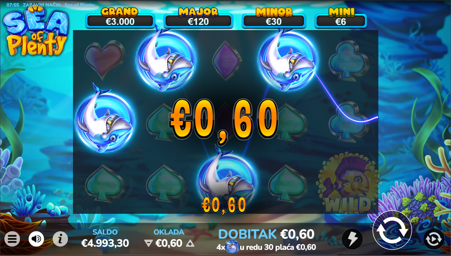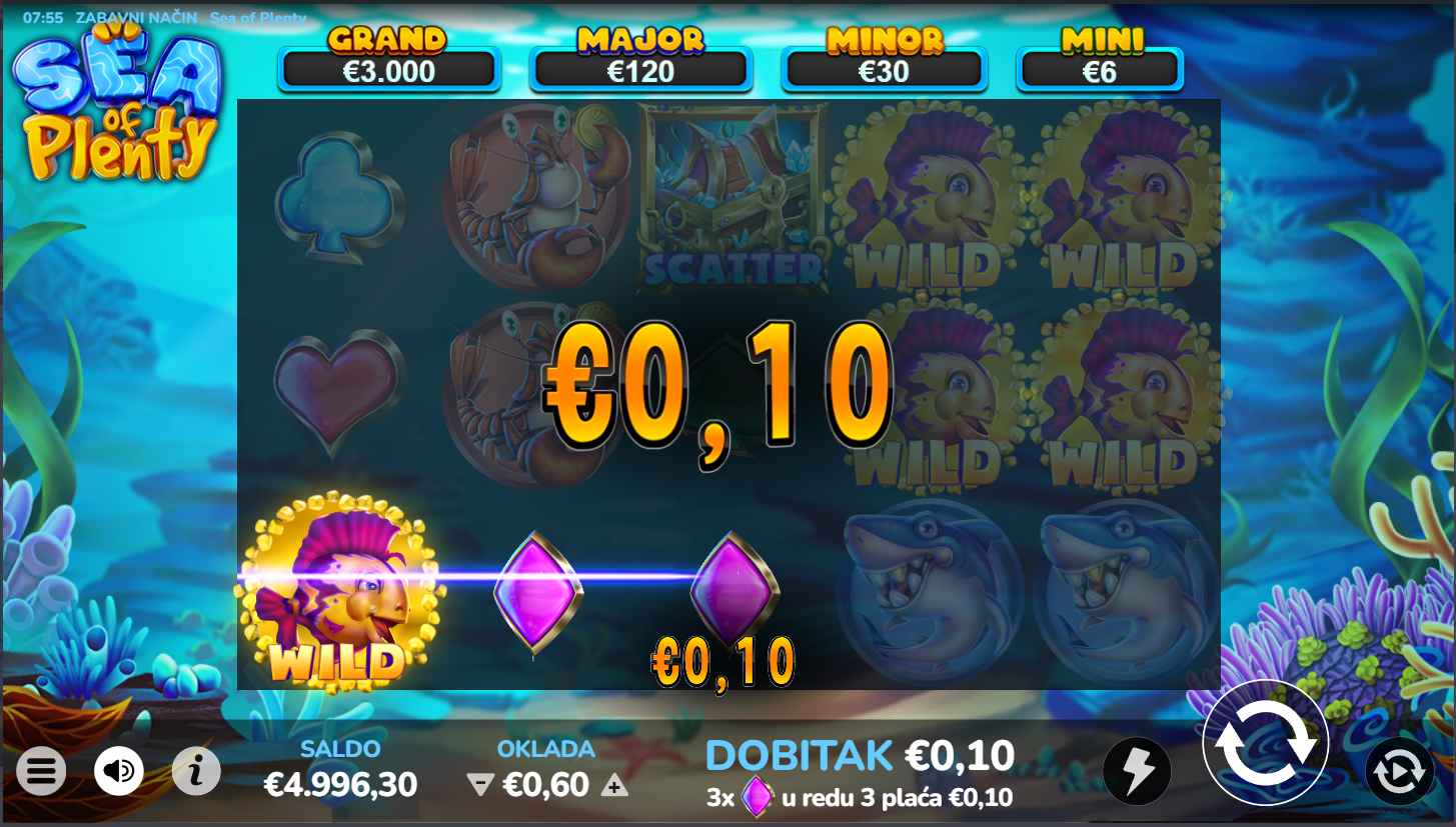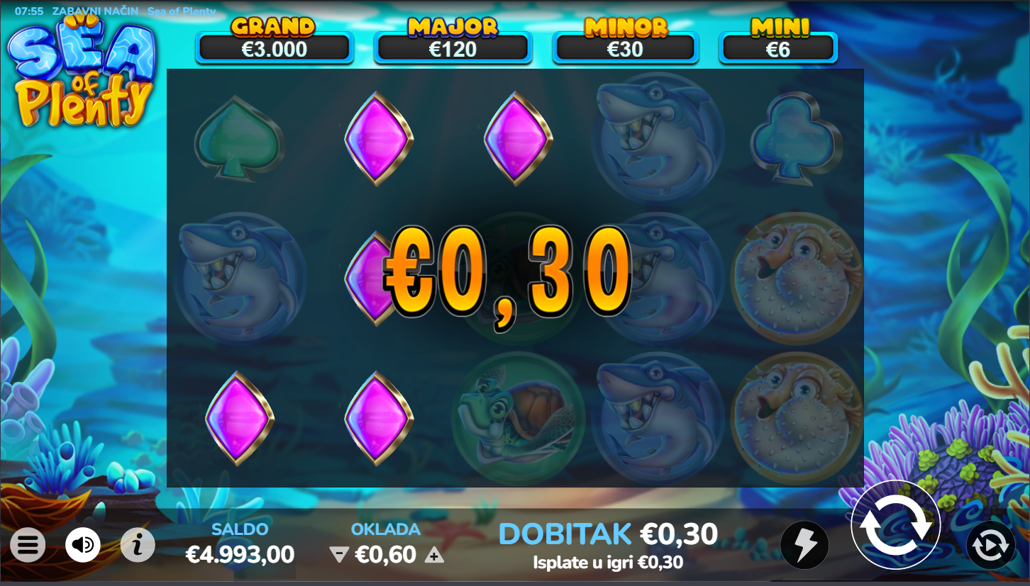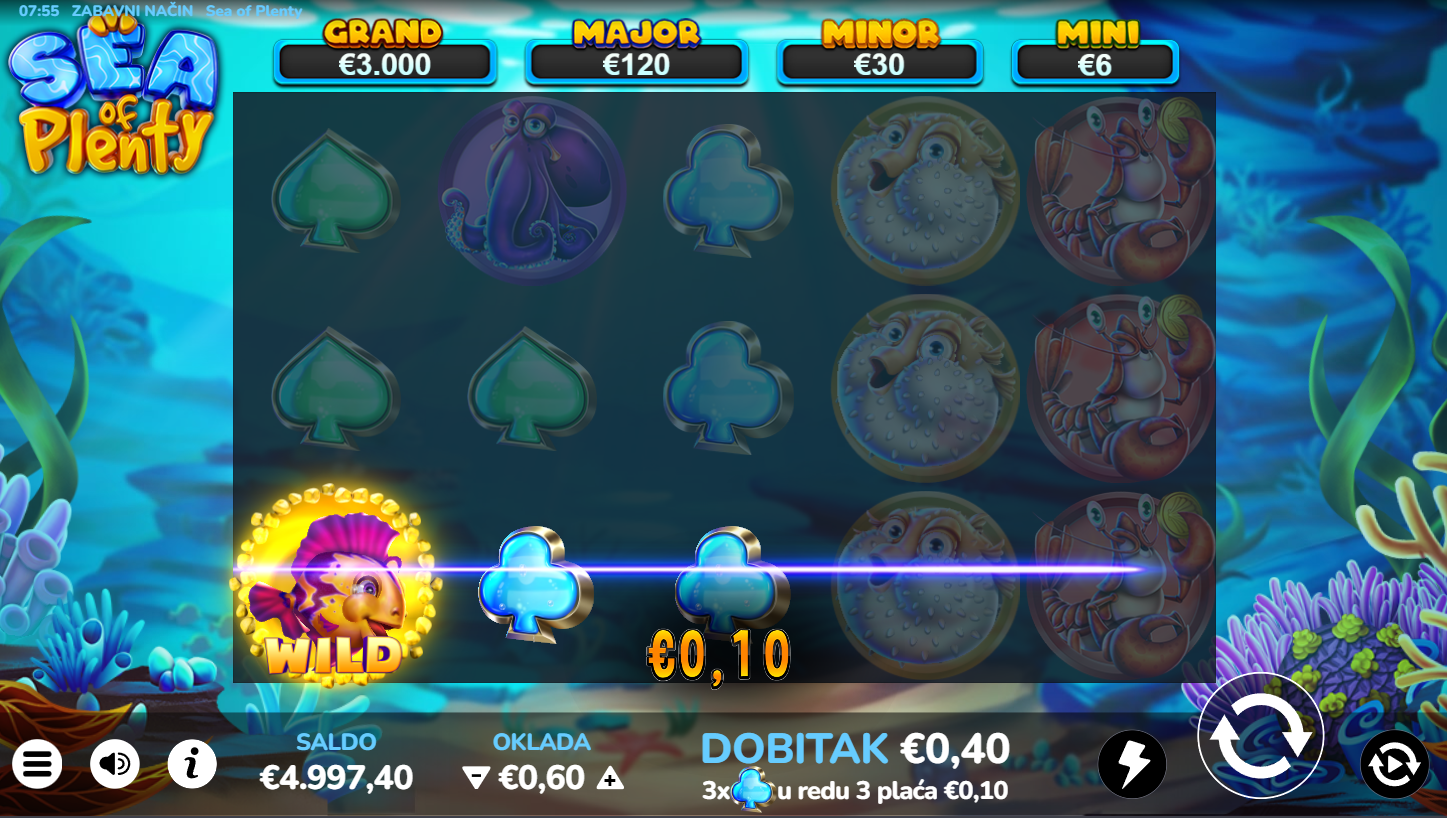 Zaroni duboko u ocean sreće i otkrij blago skriveno među šarenim ribama! Sea of Plenty vodi te u morski svijet pun uzbuđenja, svjetlucavih simbola i valova dobitaka. Indigo Magic je stvorio igru koja spaja opuštajuću atmosferu mora s uzbudljivim slot iskustvom. Svaki spin donosi novi val iznenađenja i mogućnost da izroniš s punim džepovima! U ovoj igri more stvarno ima puno za ponuditi!