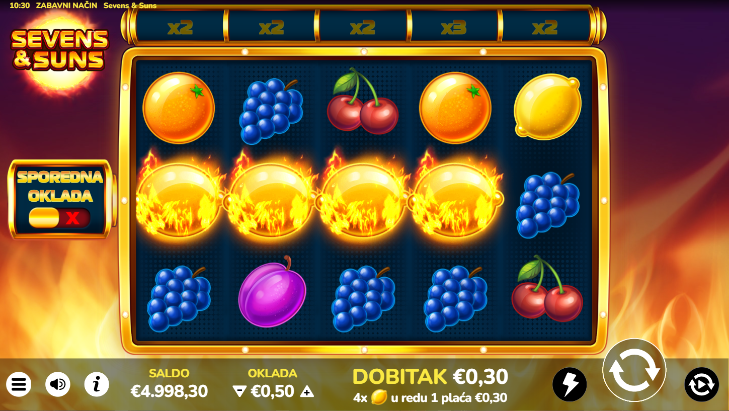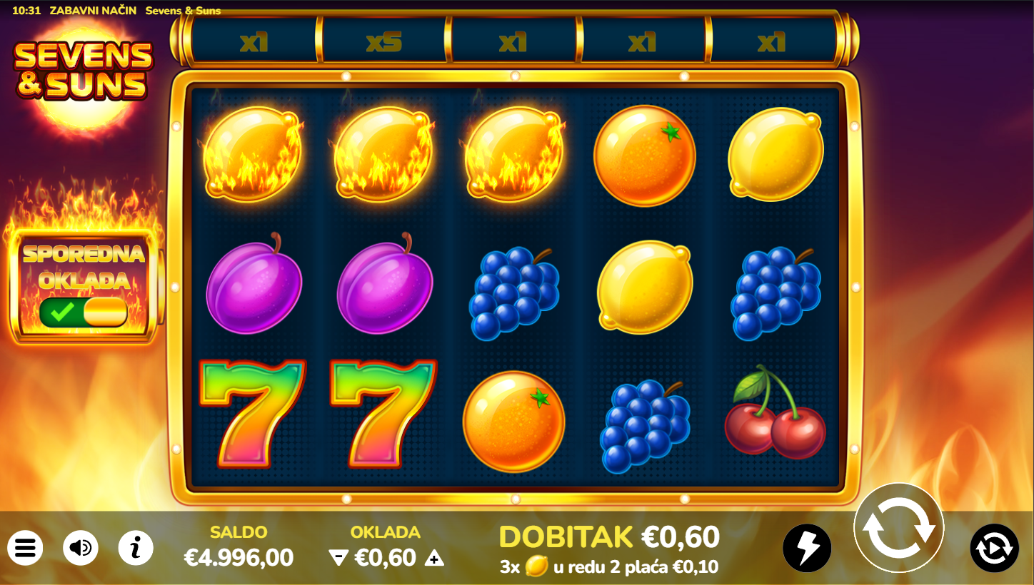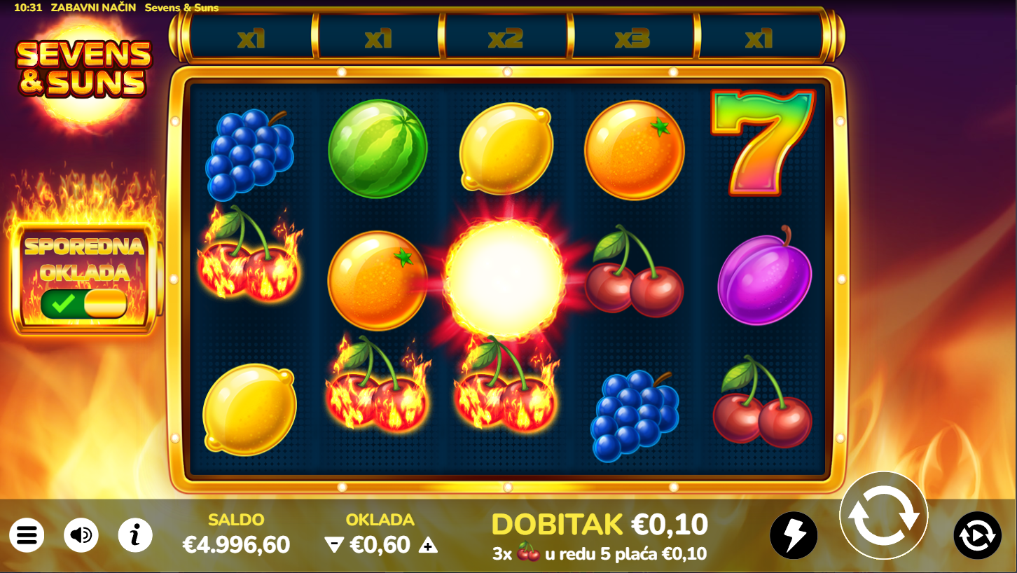 4. Koji su minimalni i maksimalni ulozi u igri Sevens & Suns?
