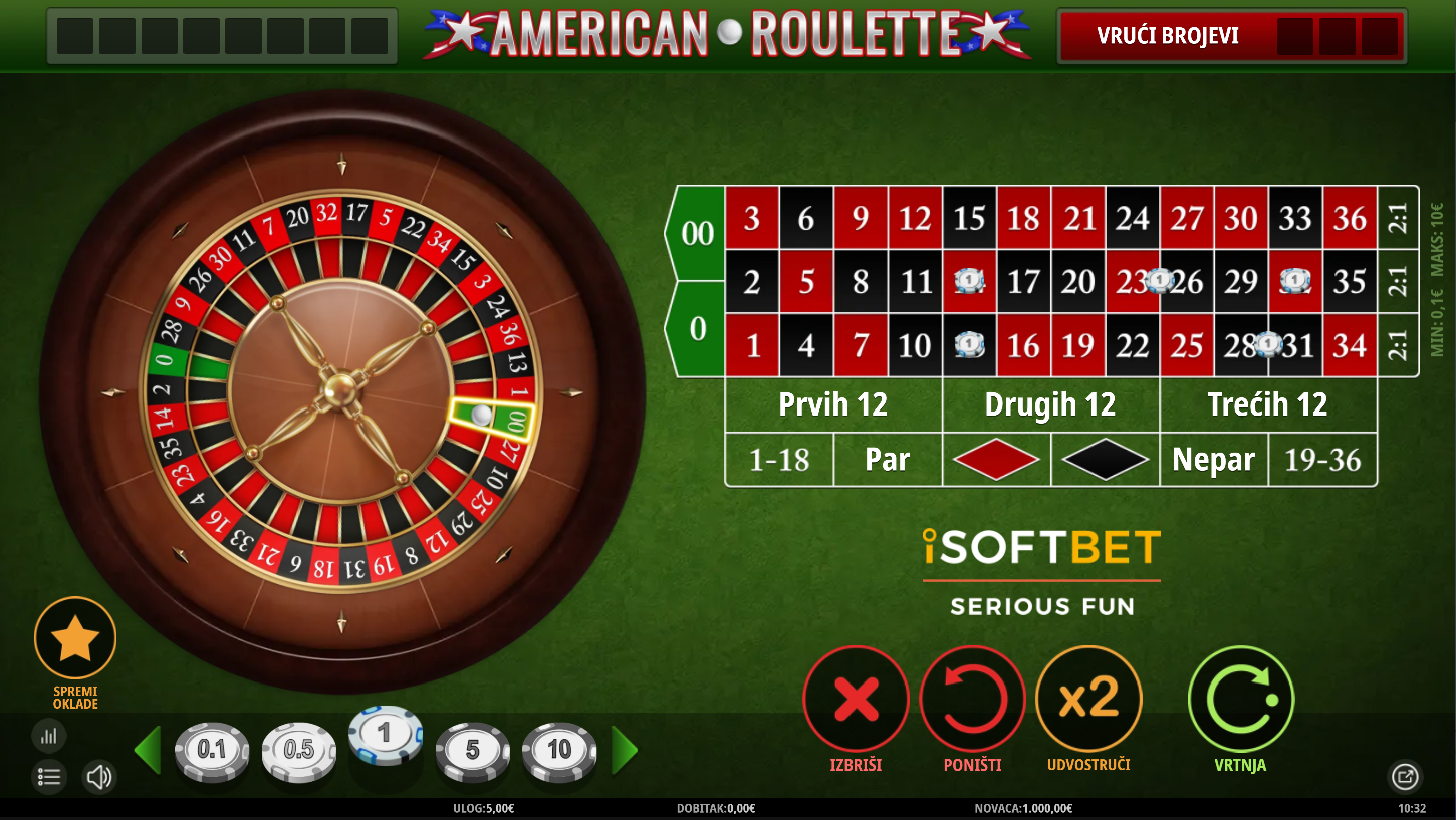 4. Koji su minimalni i maksimalni ulozi u igri American Roulette?