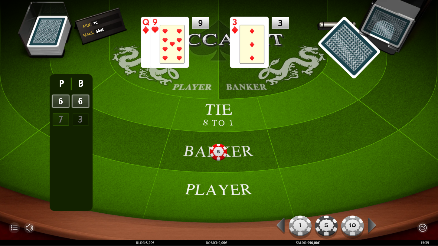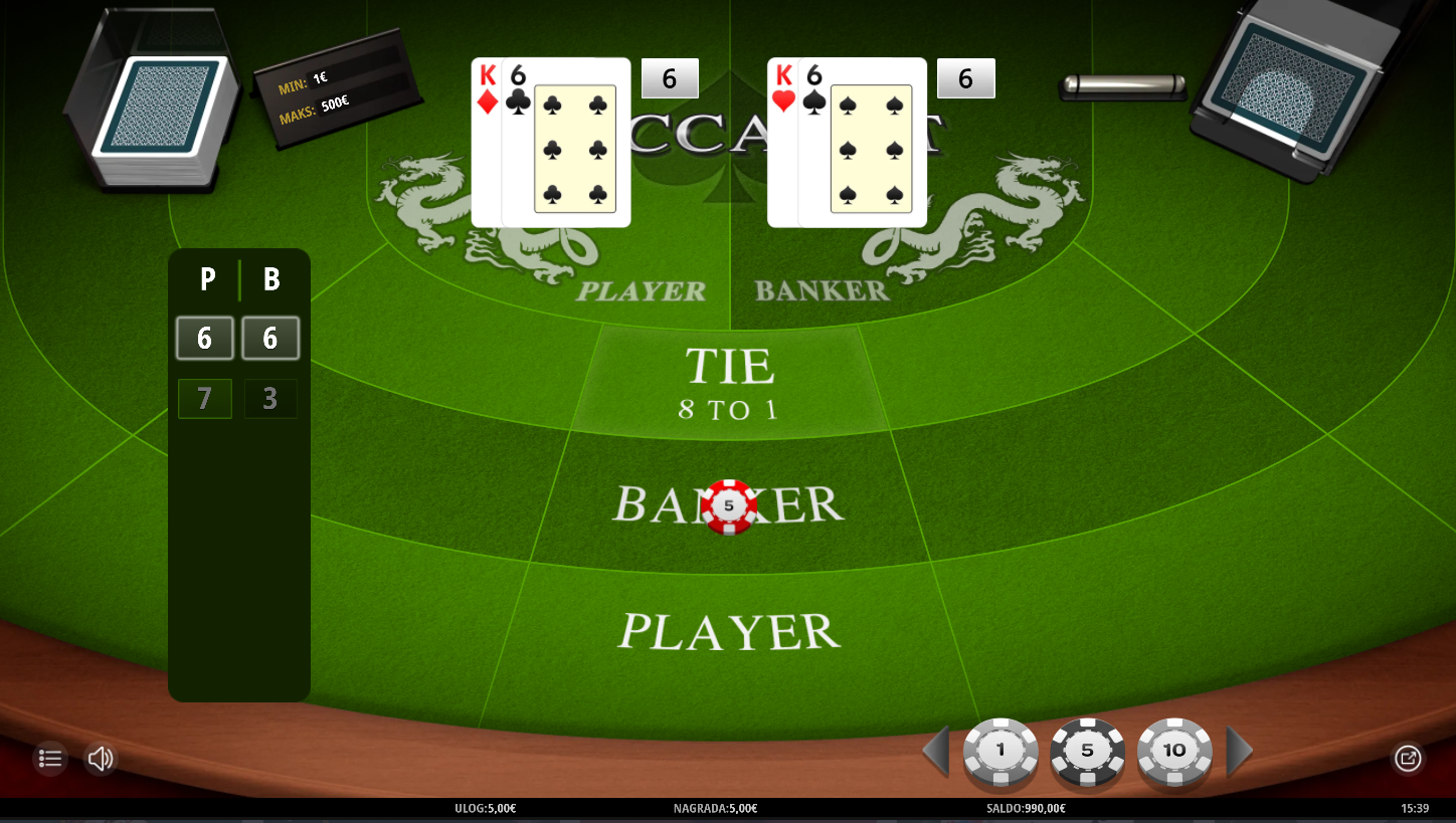 Postavi svoj ulog na Player, Banker ili Tie i pusti da se karte podijele. Pravila su jednostavna, a isplate jasne, posebno ako se kladiš na Bankera koji donosi najbolje šanse. Idealna igra za one koji vole brz tempo i čistu strategiju.