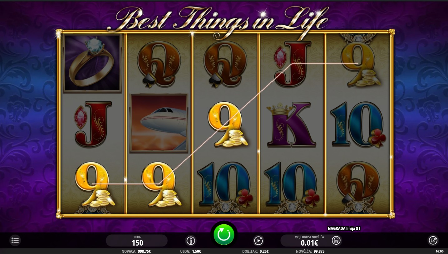 Best things in life ima RTP od 95,09%, što znači da pruža vrlo solidne šanse za dobitak tijekom igre. Volatilnost je srednja što povećava uzbuđenje jer igra može donijeti značajne dobitke, osobito tijekom bonus značajki. Idealna je za igrače koji vole dinamičnu s potencijalom za veće nagrade.