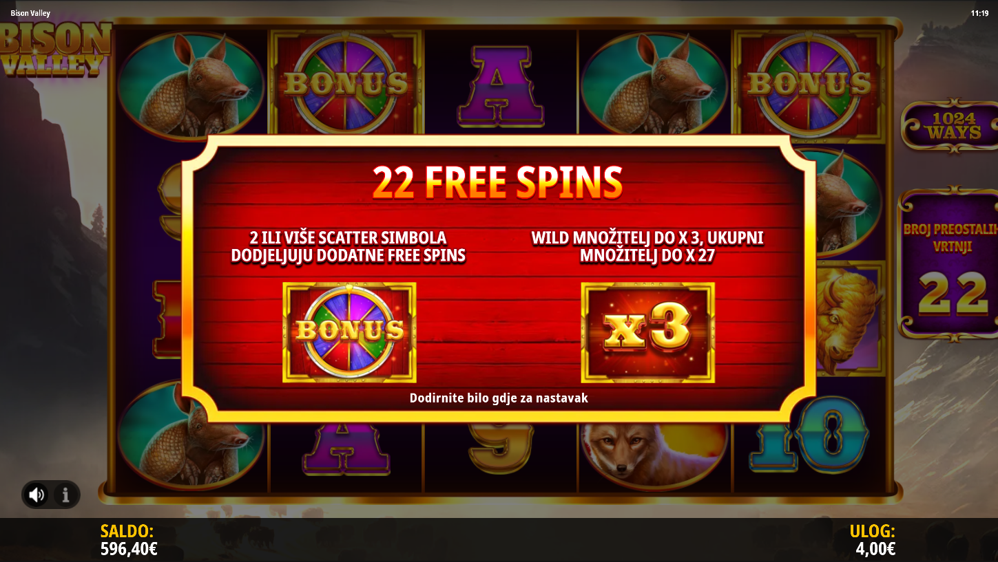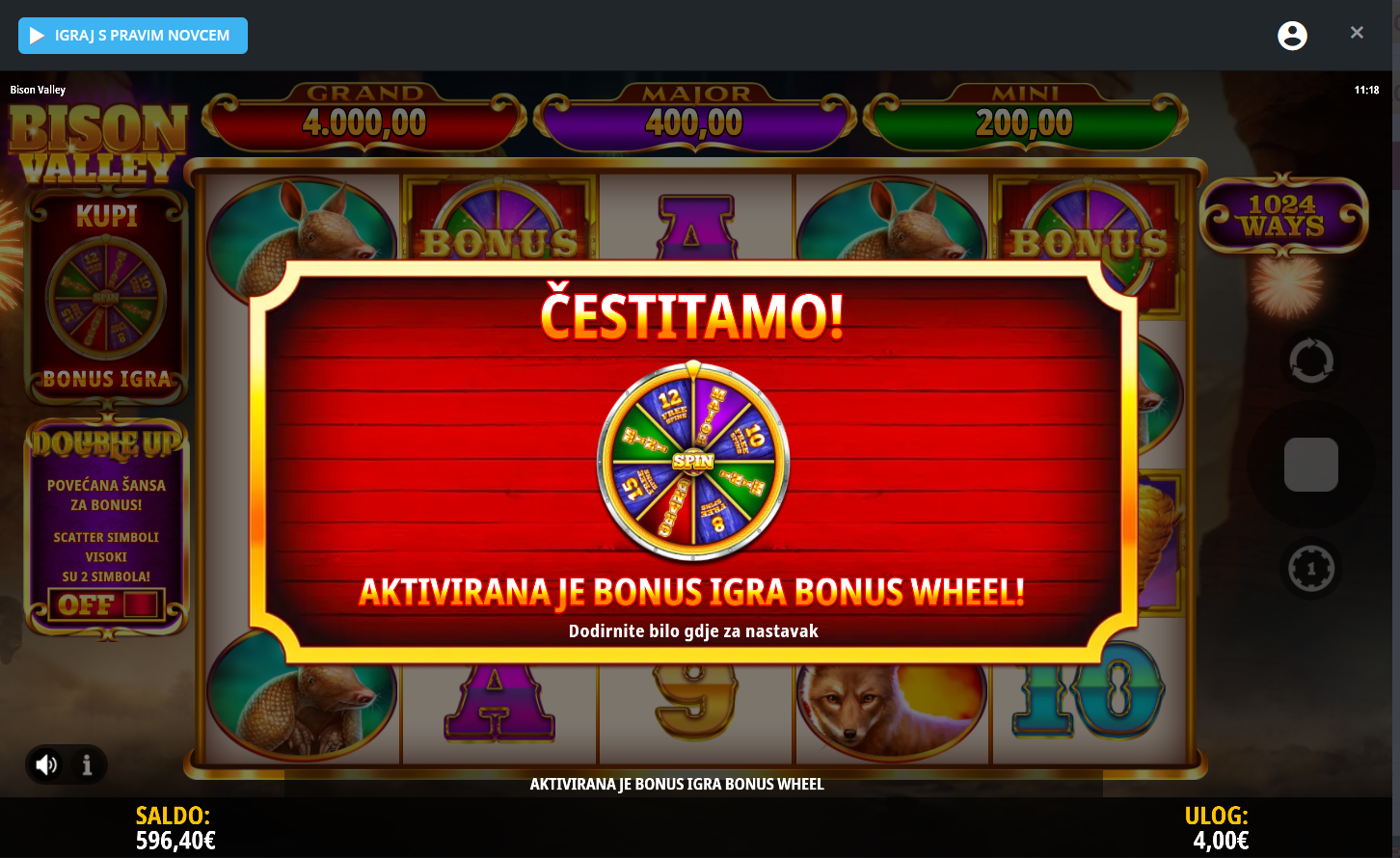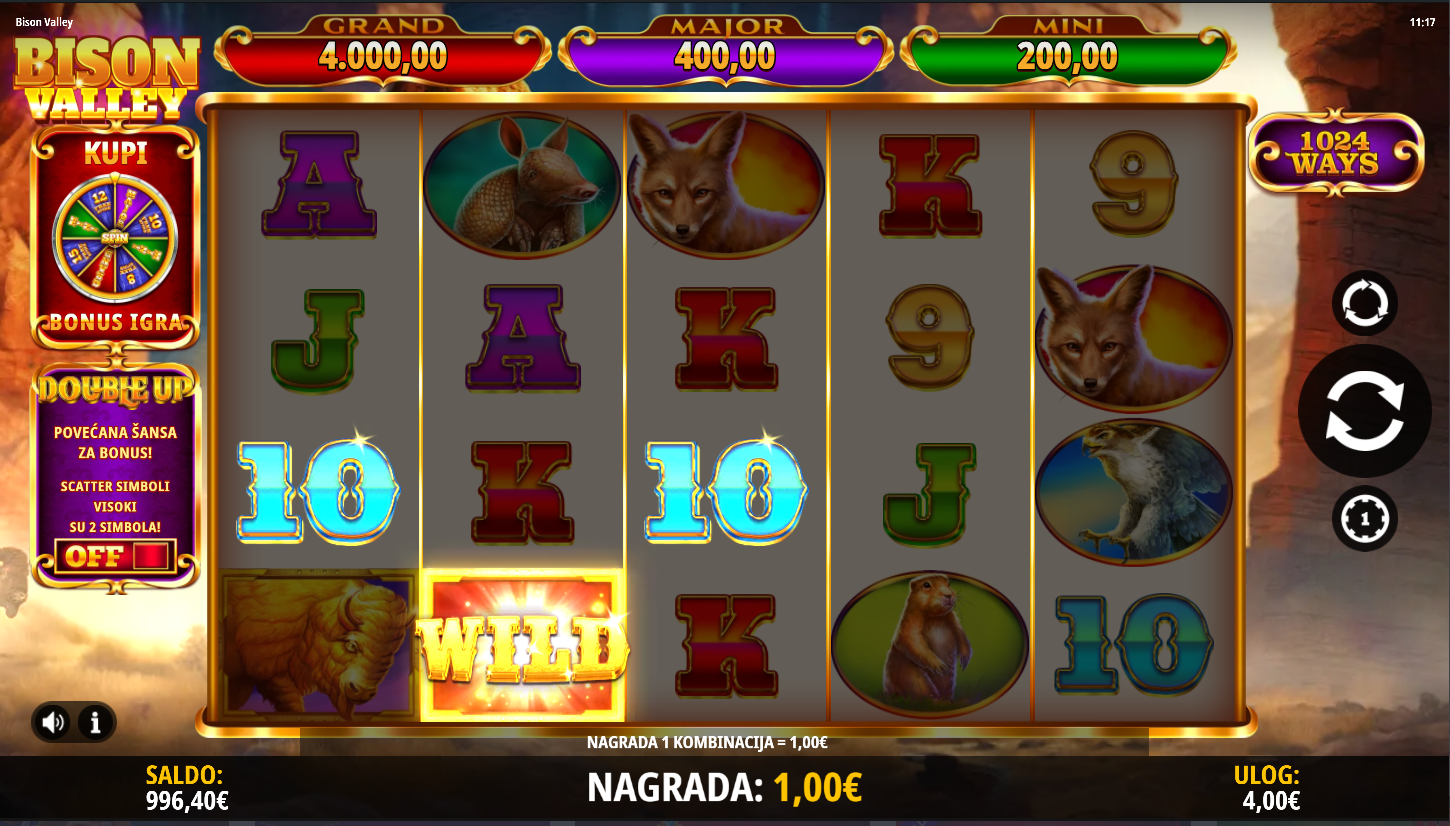 Započni igru jednostavnim odabirom uloga i zavrti kolute, a sve se može promijeniti ako se pojave scatter simboli. Tri ili više njih otvaraju kotač sreće koji može donijeti bonus rundu s besplatnim vrtnjama ili čak jednu od fiksnih nagrada. U bonus igri se pojavljuju bizoni s množiteljima, koji brzo podižu napetost i šansu za nešto veliko. Mehanika je jednostavna, ali te može iznenaditi onda kada to najmanje očekuješ. Svaka vrtnja djeluje kao povratak prirodi, ali s dodatnom dozom adrenalina.