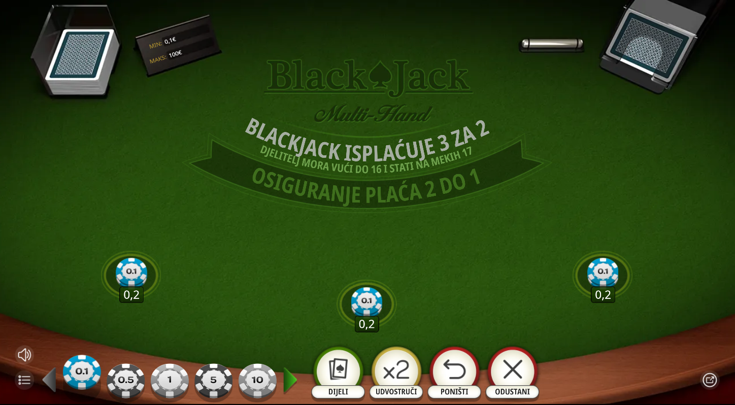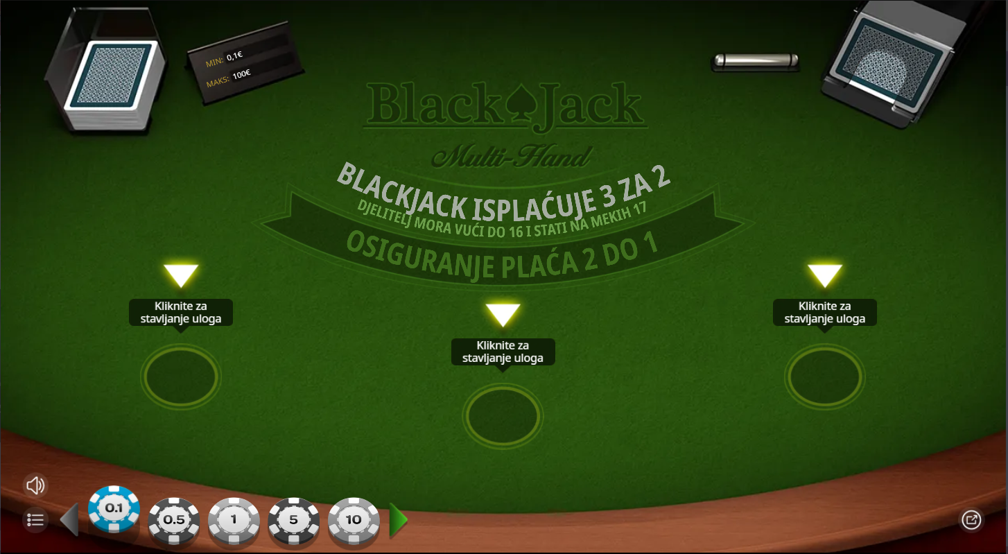 4. Koji su minimalni i maksimalni ulozi u igri Blackjack Multihand?