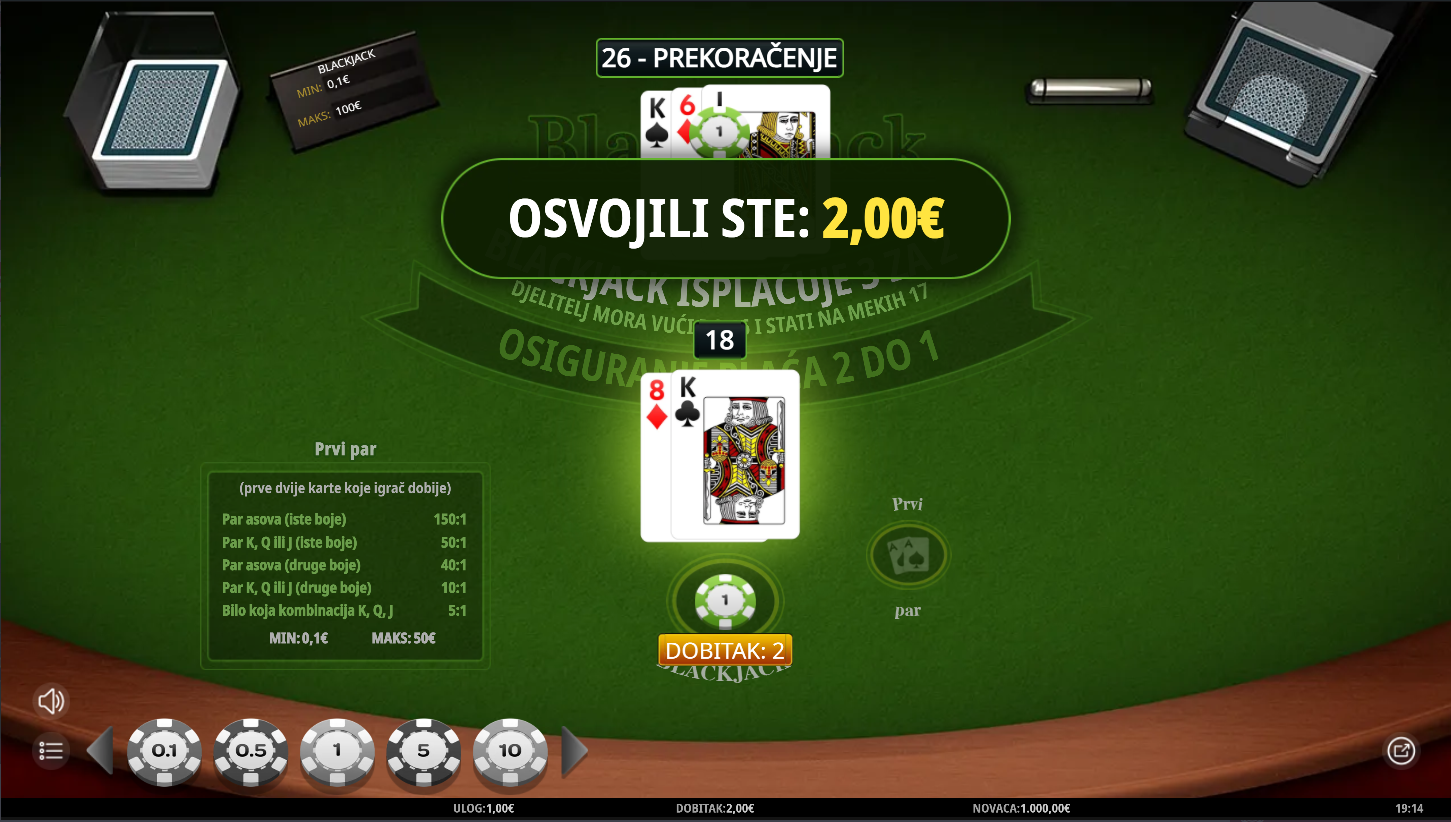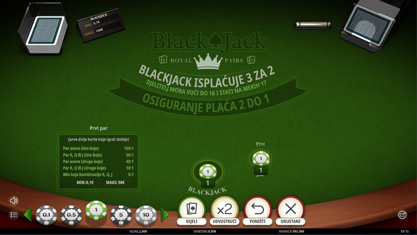 2. Ima li Blackjack Royal Pairs jackpot?