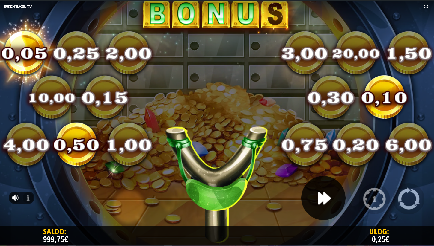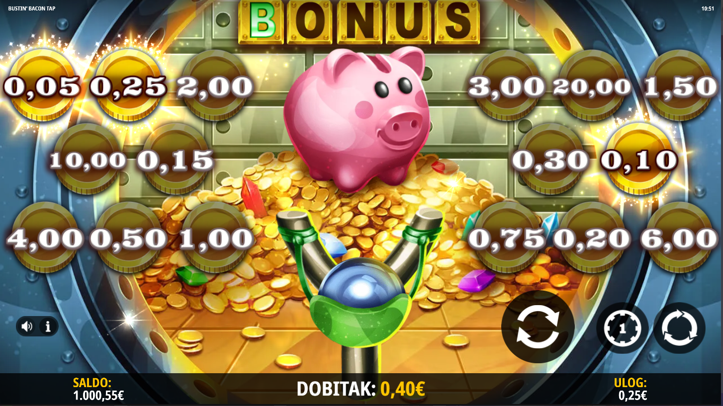 4. Koji su minimalni i maksimalni ulozi u igri Bustin' Bacon Tap?