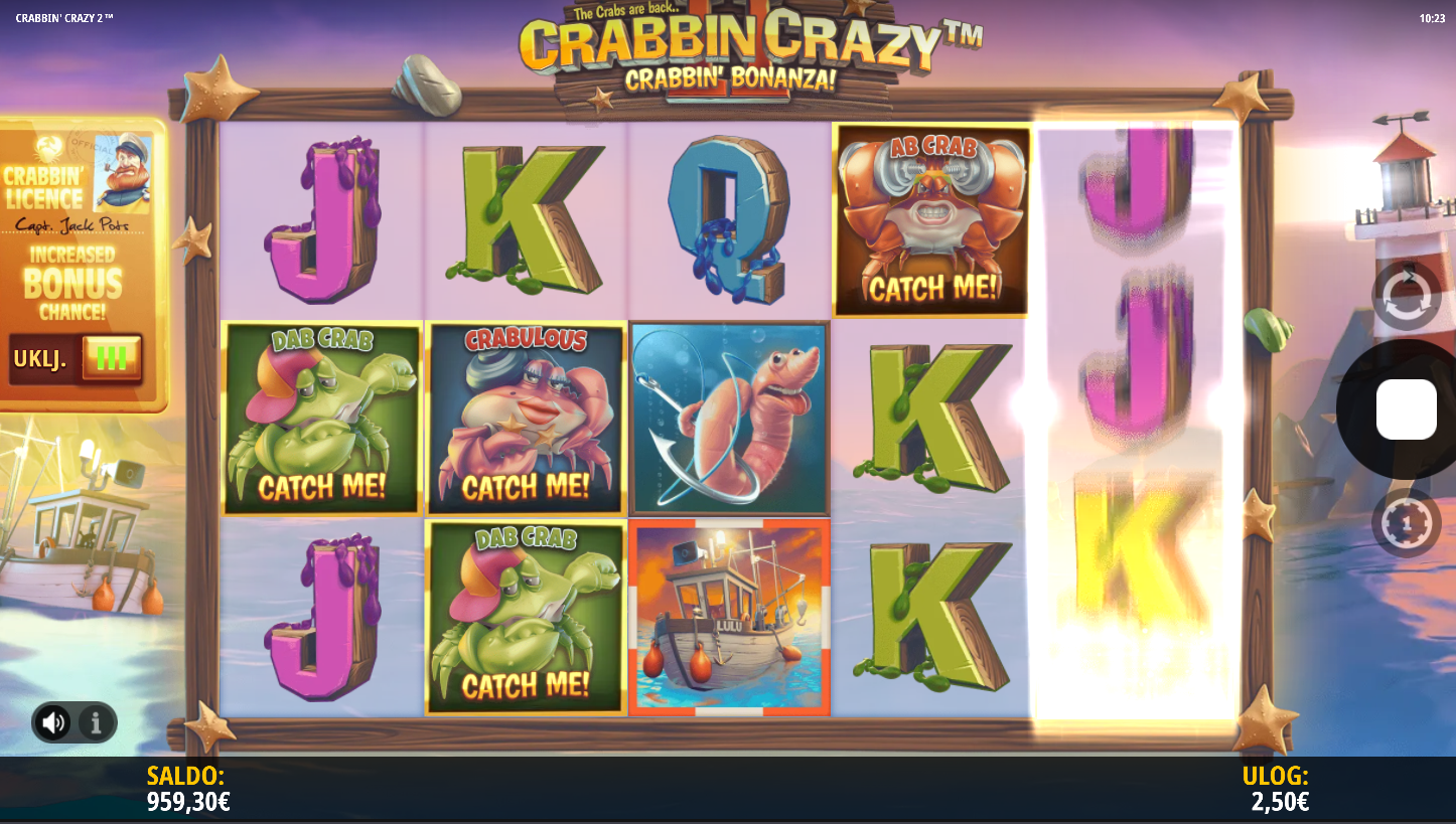 Kreni s ulogom i prati kako rakovi marširaju po kolutima. Pet rakova pokreće bonus igru s dodatnim okretajima gdje svaki novi rak ostaje na mjestu i povećava šanse za super ulov. Tu su i posebni simboli koji sakupljaju vrijednosti ili otvaraju put prema još većim nagradama. Tijekom igre mogu se nasumično aktivirati dodatne značajke poput sanduka iznenađenja i sinkroniziranih kolutova. Sve je brzo, zabavno i stalno te tjera na još jedan klik!