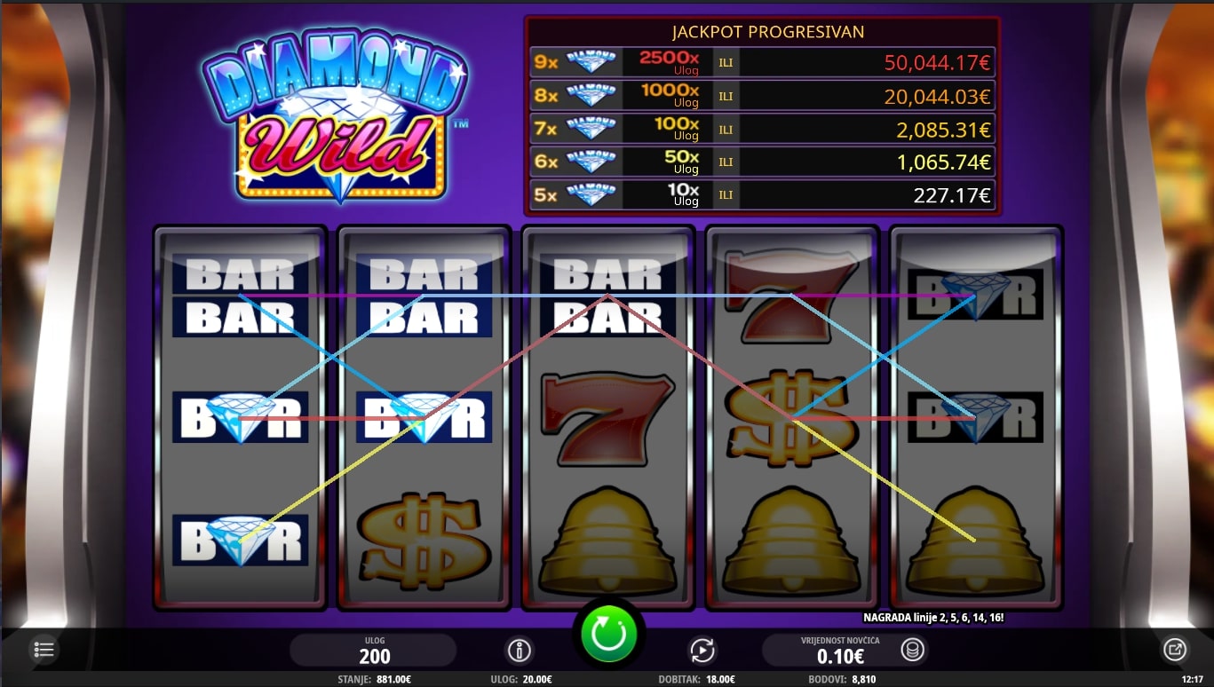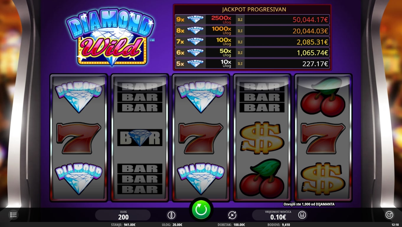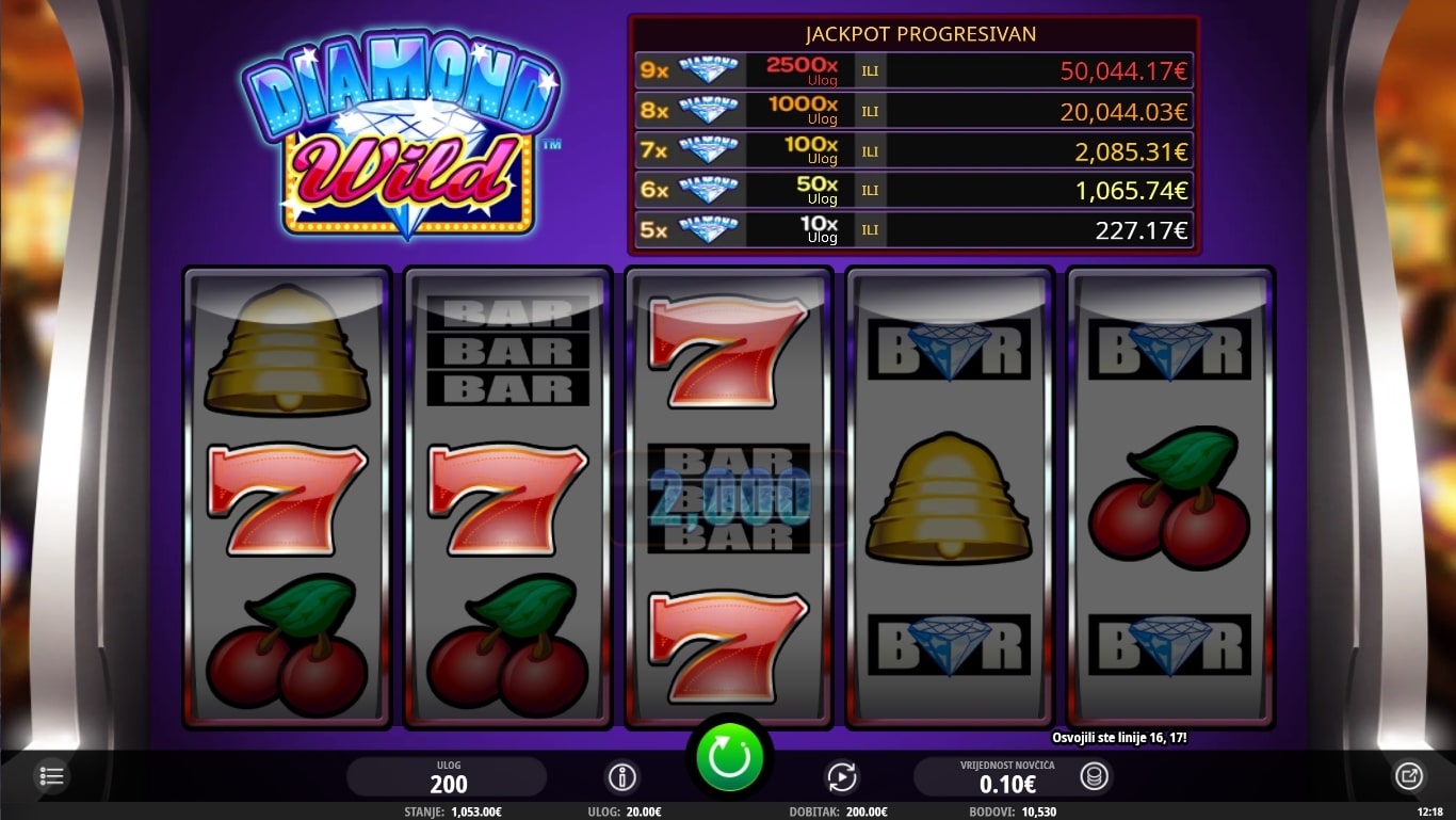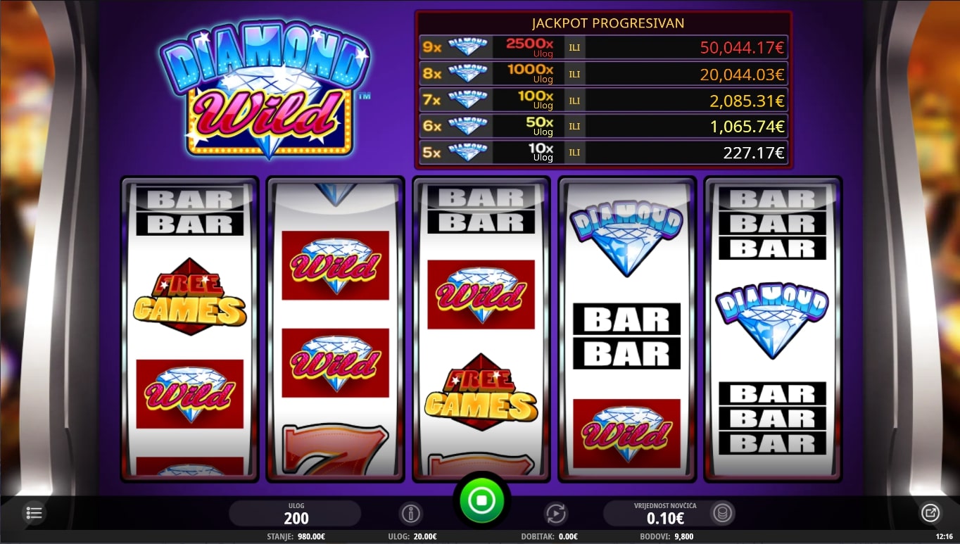 Diamond Wild slot je igra retro karaktera koja vodi igrača u svijet dragog kamenja i luksuza. Simboli su usko povezani za svijetom novca i dragulja, dok najviše isplaćuju sedmice, američki dolari te razne poluge. Igra uz to sadrži Wild dijamanta koji služi kao zamjena za druge simbole, dok Free games simbol vodi igrača do besplatnih vrtnji. Uz to, postoji mogućnost progresivnog Jackpota pojavom simbola dijamanata. Zaigraj Diamond Wild te osvoji vrhunske nagrade!
