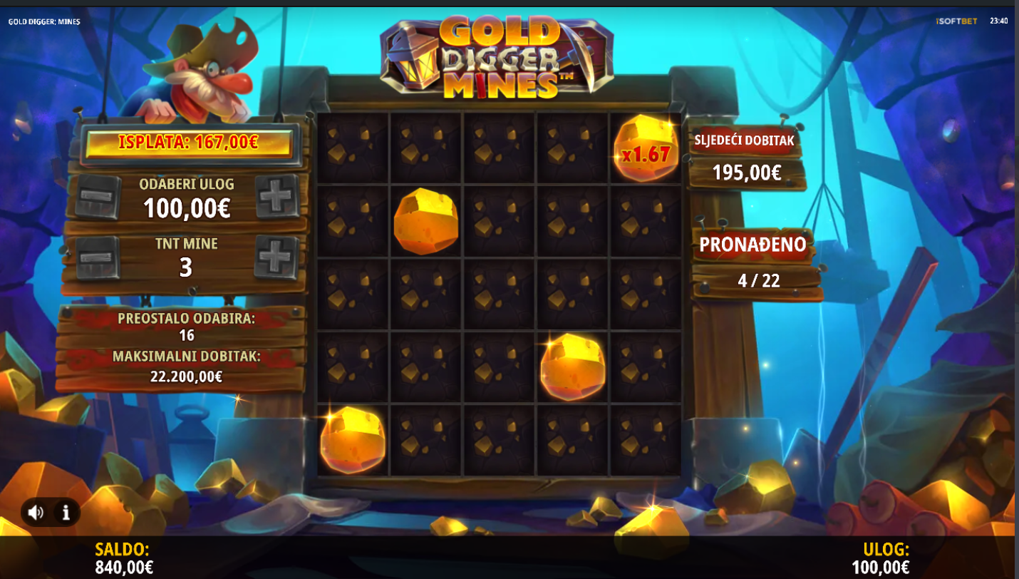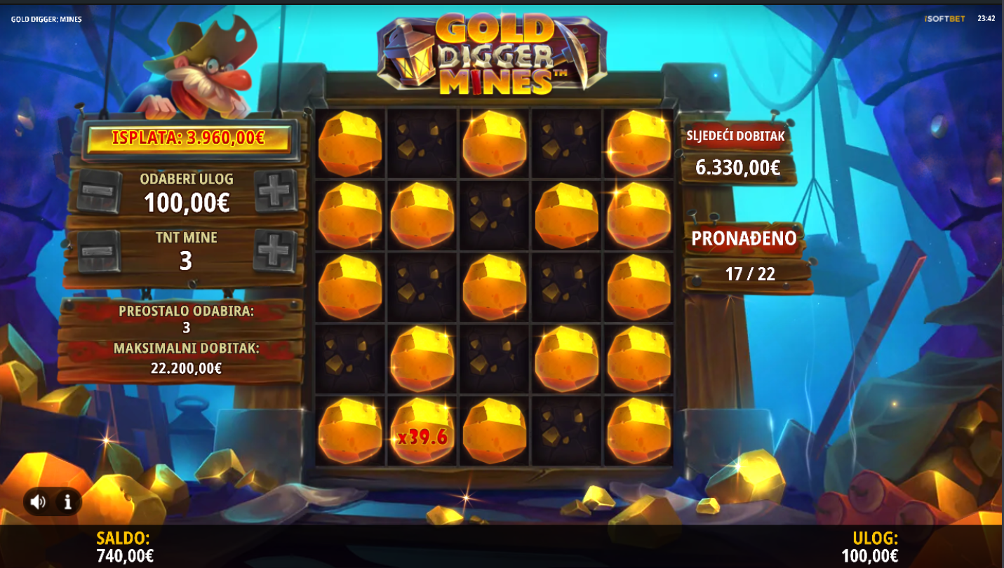 Gold Digger: Mines od iSoftBet donosi igru u kojoj svaki klik otkriva novi dio rudarskog svijeta. Dinamičan dizajn stvara uzbudljivu atmosferu istraživanja. Svaka odluka vodi put prema novim iznenađenjima!
