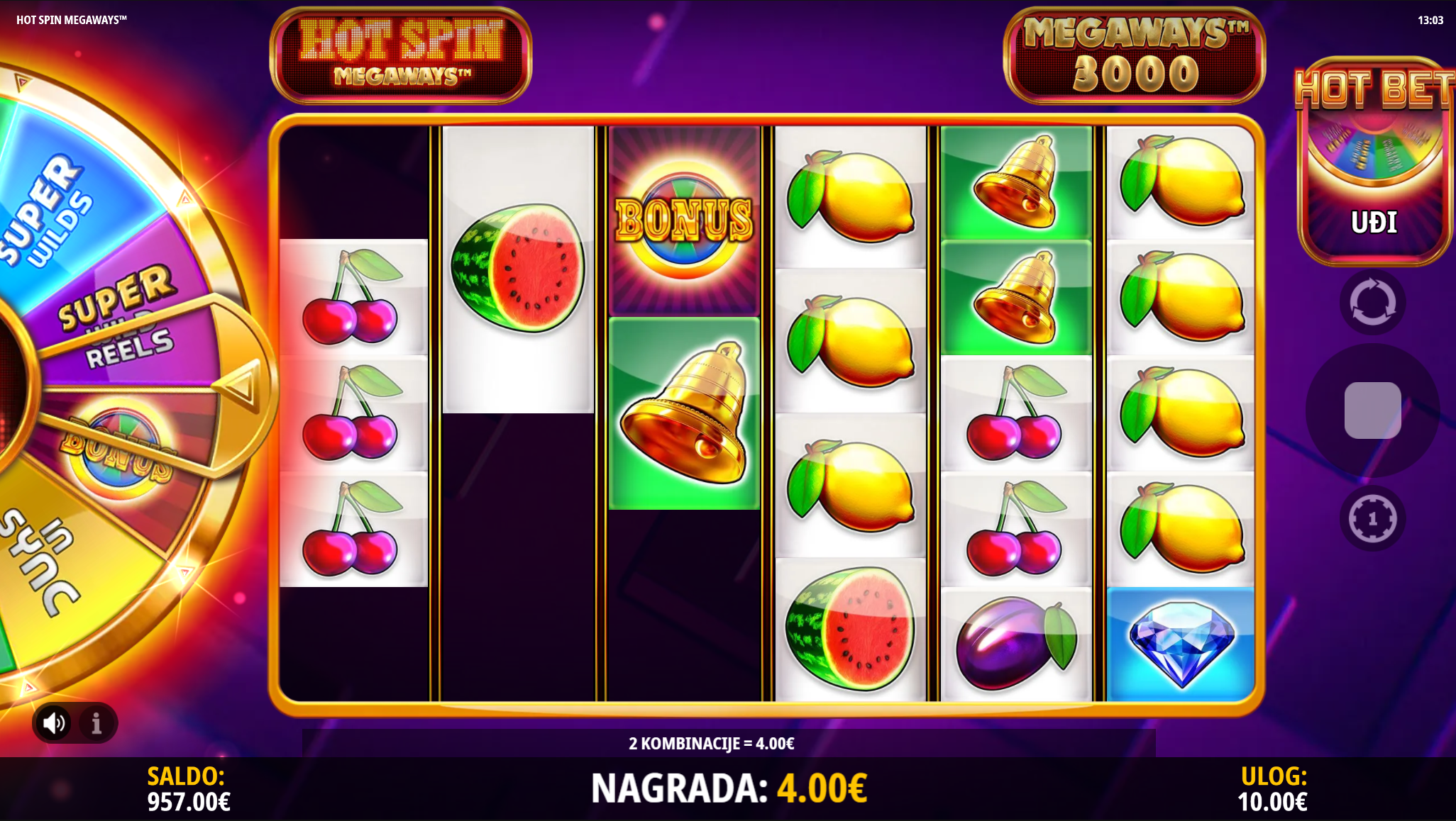 Svatko tko voli jednostavne slotove sa elegantnim simbolima i dozom uzbuđenja na pravom je mjestu, jer Hot Spin Megaways pruža sve to, a i mnogo više. Primamljivo ilustrirano voće blistavo-kristalnog dizajna učiniti će igranje zabavnijim i zanimljivijim, a tajanstveni wildovi i bonus simboli super uzbudljivim te bogatim po pitanju dobitaka! Kao jedan od najpopularnijih slotova, Hot Spin Megaways odličan je izbor za sve igrače koji vole izvrstan omjer rizika i dobitaka.