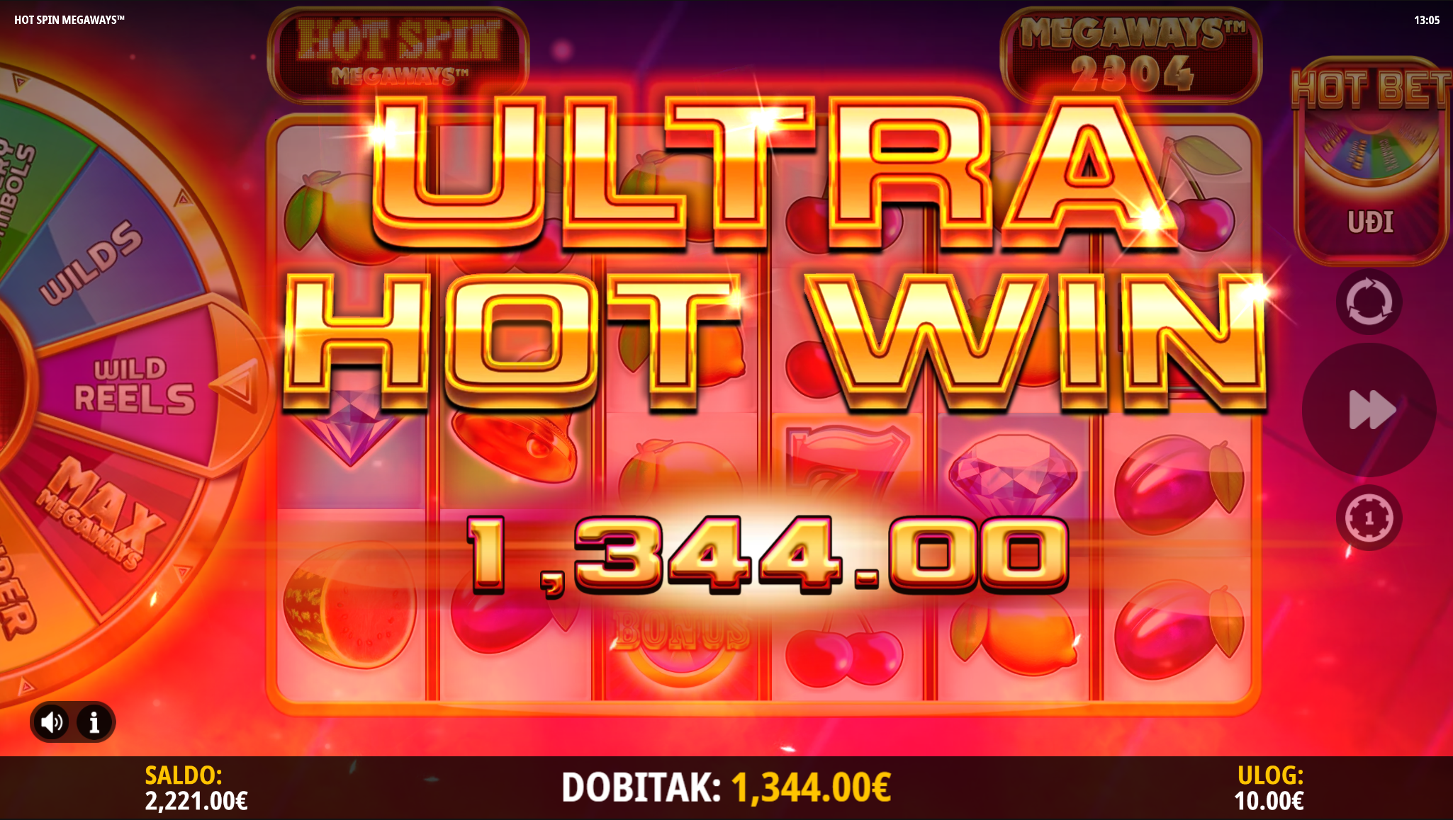 Igra Hot Spin Megaways ima RTP u iznosu od 96.44%, što znači da igrači imaju dobre šanse za ostvariti dobitak. Volatilnost igre je srednja, što znači da igrači mogu očekivati česte, ali niže dobitke.