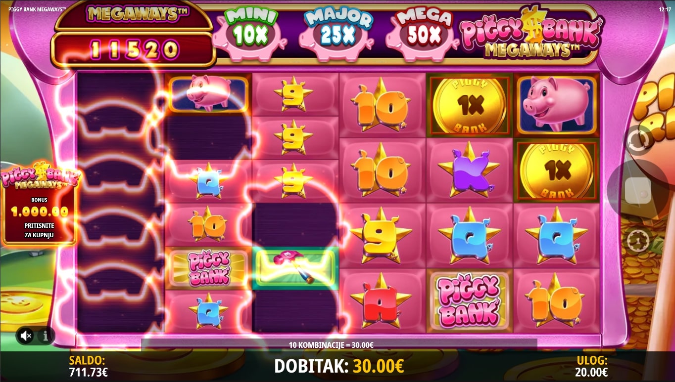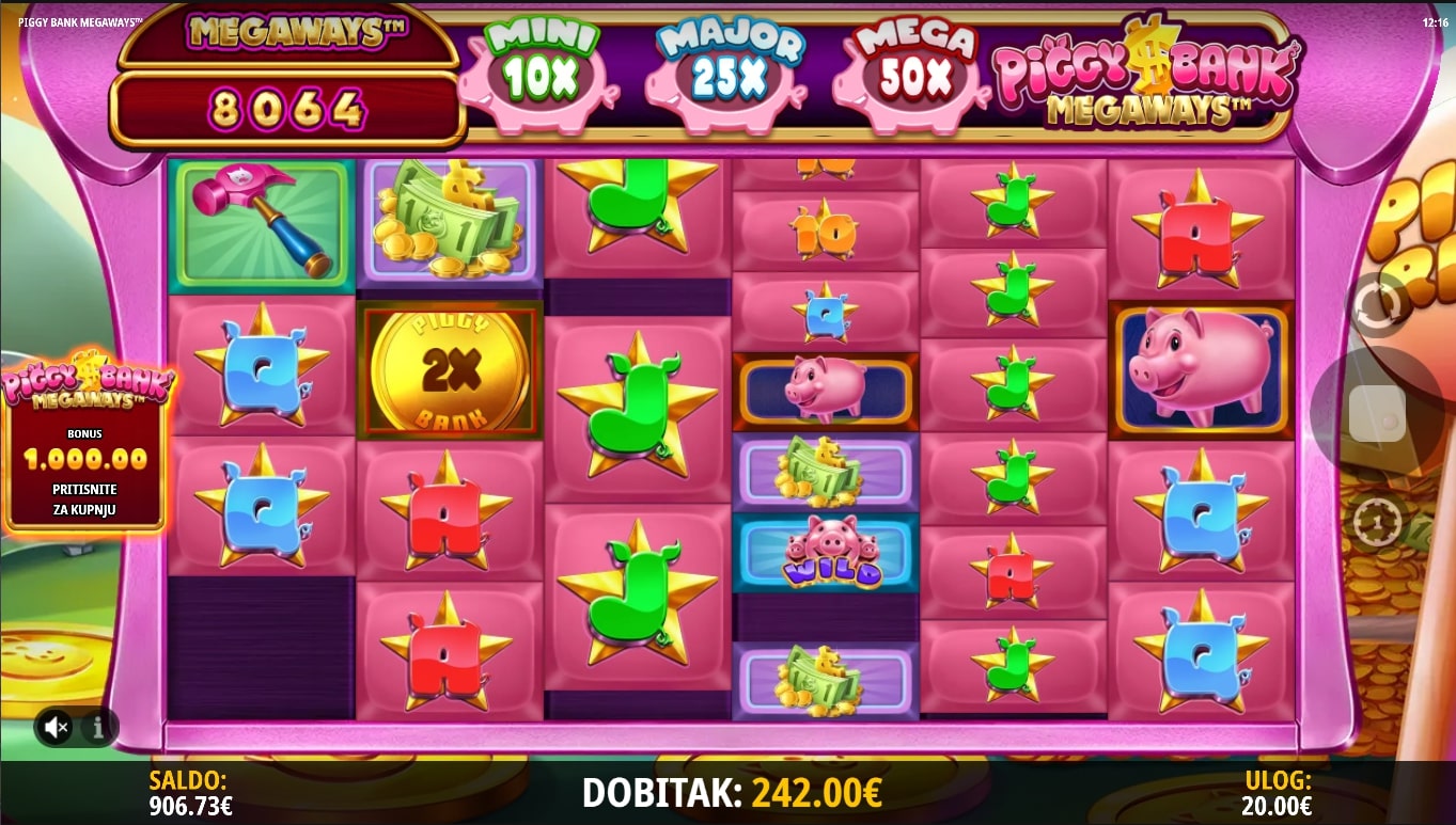 Piggy Bank Megaways slot je igra koja vodi igrača u bezbrižni svijet ispunjen novcem i zabavom. Lajtmotiv igre je famozna 'kasica prasica', tako da najviše isplaćuju simboli vezani uz nju. Simbol novčića vodi igrača do besplatnih vrtnji, a posebni Wild simbol služi kao zamjena za druge simbole u potrazi za iznimnim dobicima. Zaigraj Piggy Bank Megaways te osvoji fenomenalne nagrade!