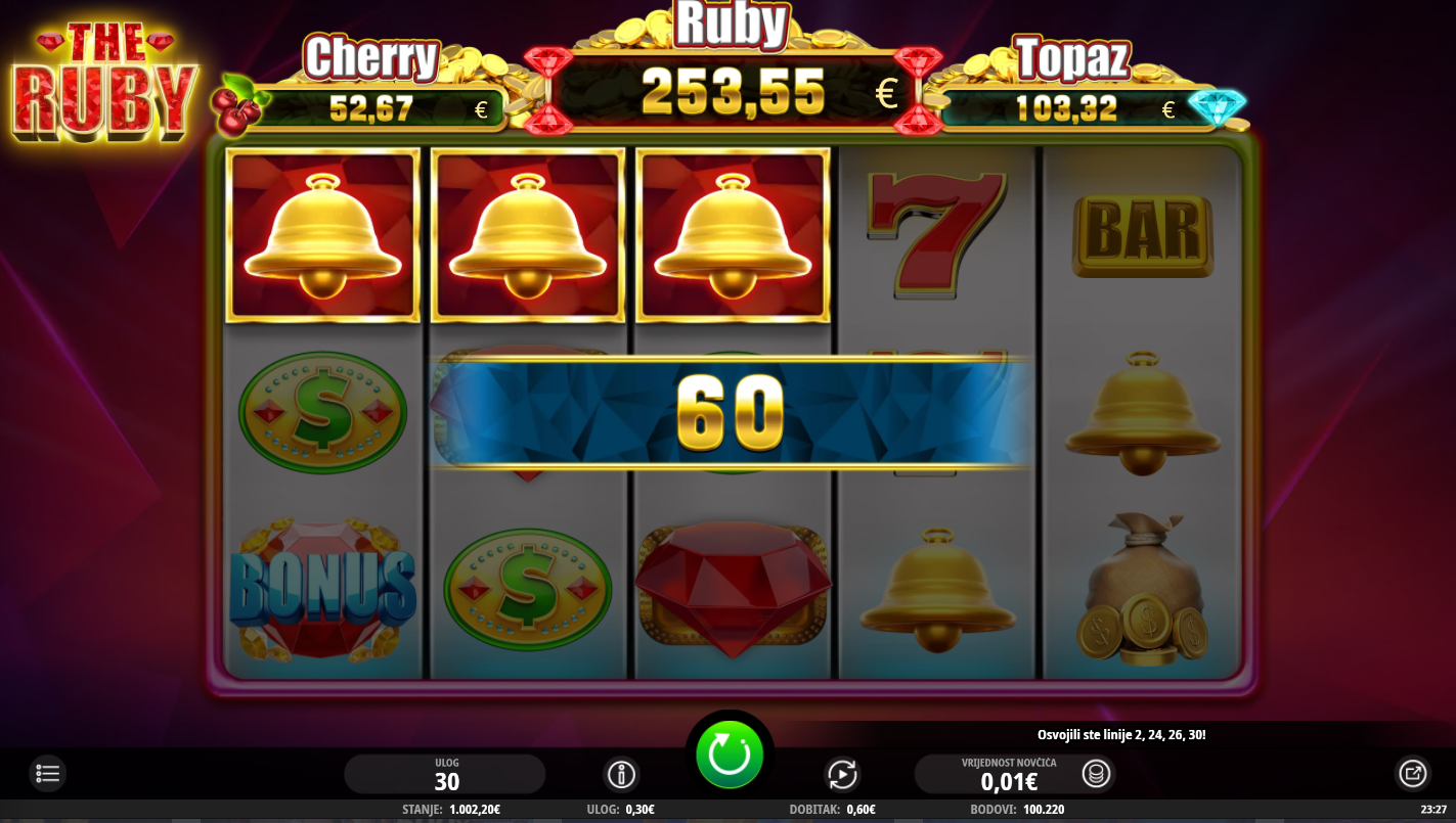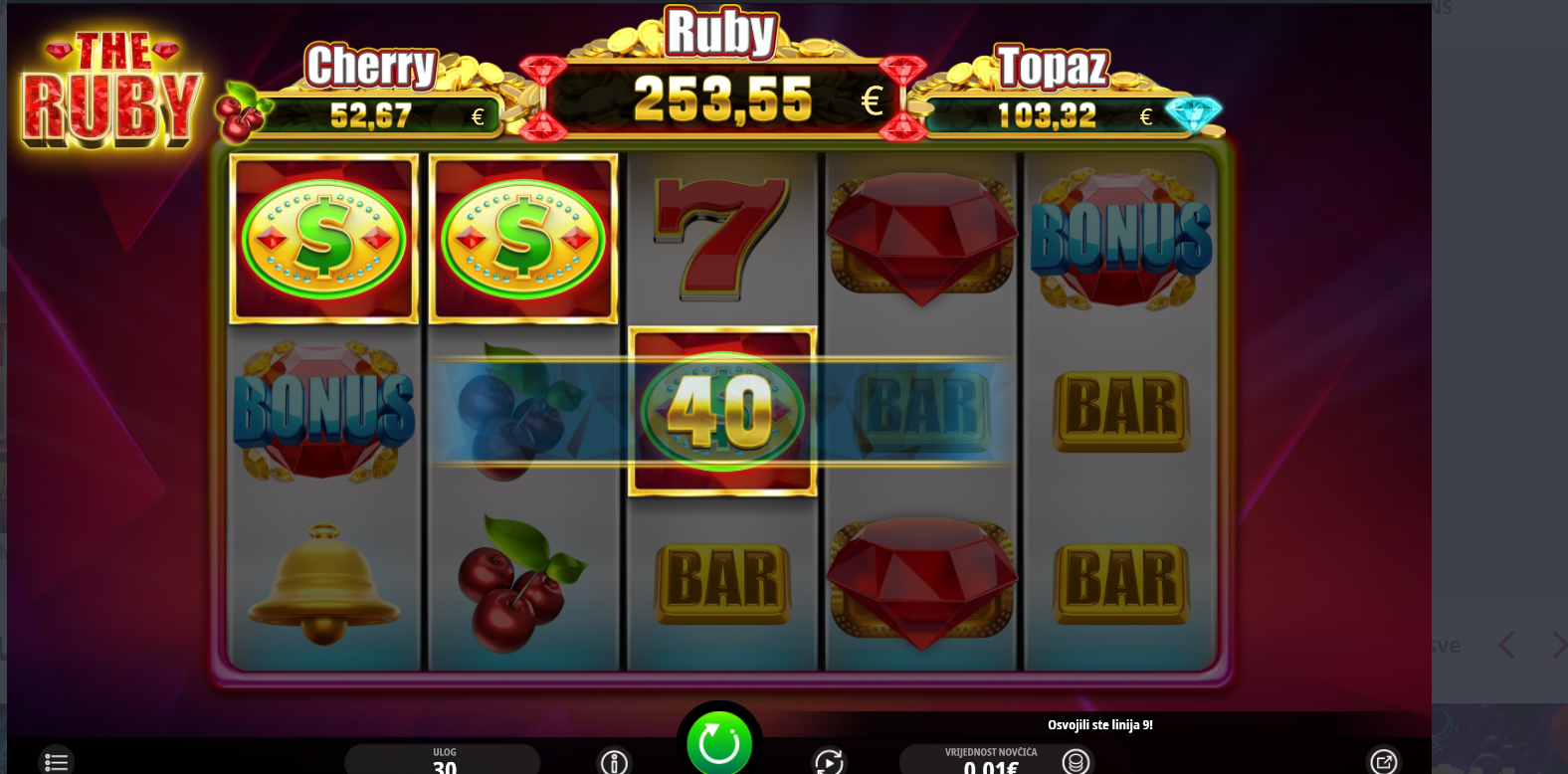 The Ruby od iSoftbet donosi igru koja kombinira retro šarm voćnih simbola i eleganciju dragulja. Na kolutima se pojavljuju trešnje, limuni i zvona te naravno, crveni rubin. Svaka runda donosi osjećaj old-school stila uz dodatak glamura!