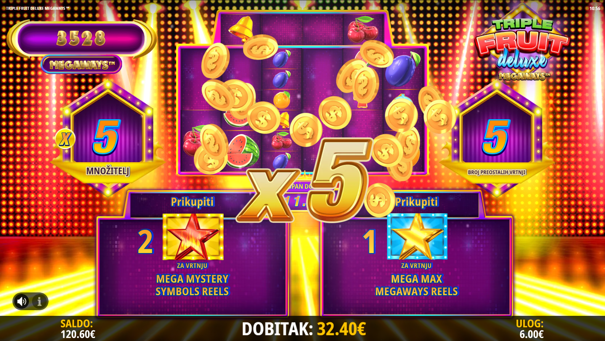 Igra Triple Fruit Deluxe Megaways ima RTP u iznosu od 95.25%, što znači da igrači imaju dobre šanse za ostvariti dobitak. Volatilnost igre je srednja, što znači da igrači mogu očekivati česte, ali niže dobitke.