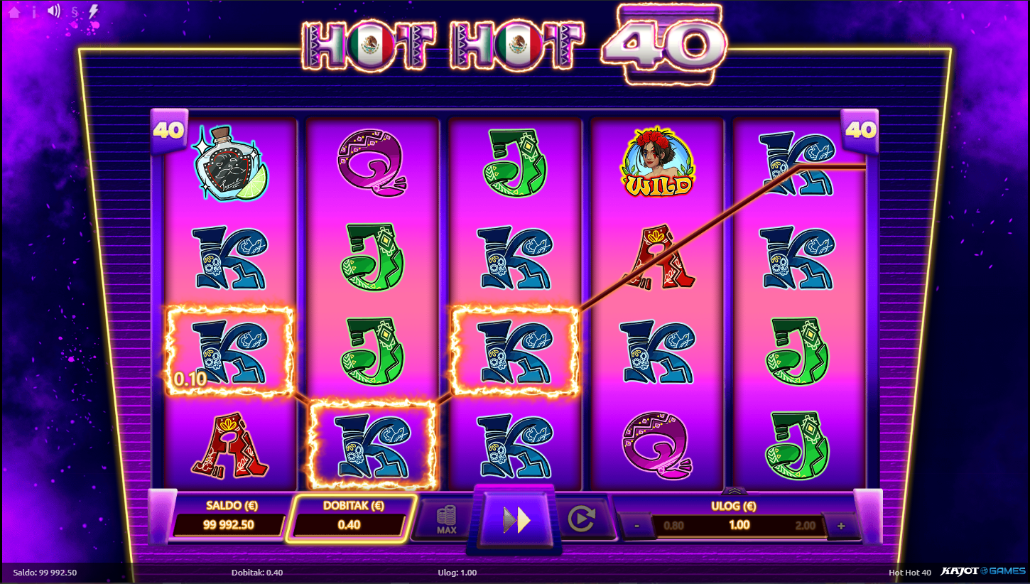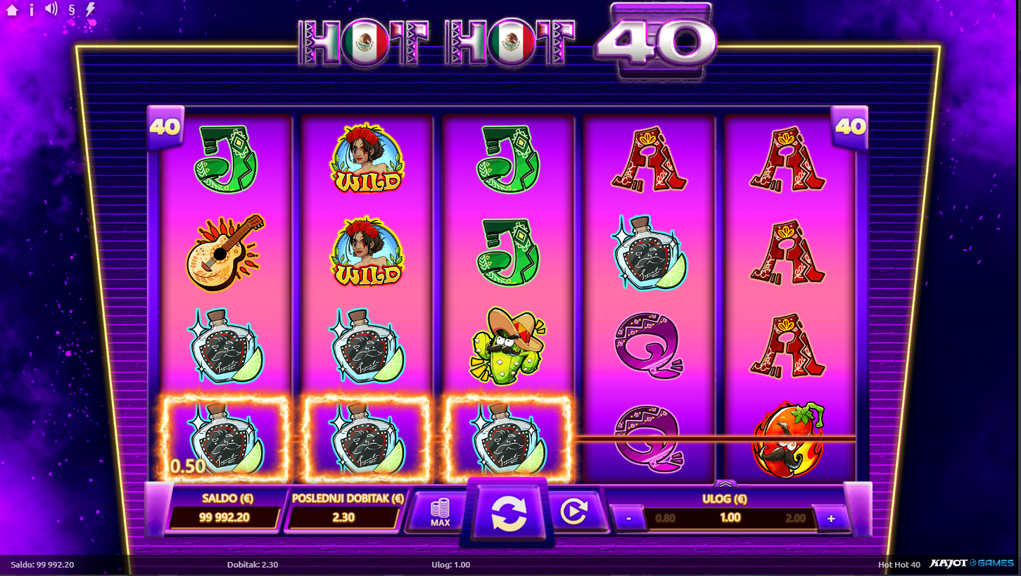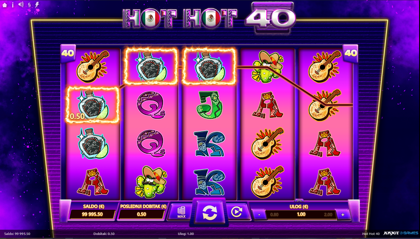 Hot Hot 40 ima RTP od oko 96%, što znači da nudi dobru ravnotežu između rizika i nagrade. Volatilnost je niska do srednja, pa su dobici češći, iako manji, savršeno za duže, opuštene sesije igranja. Očekuj stalne iskre uzbuđenja, ali bez prevelikih oscilacija. Ovo je igra koja te drži u ritmu, bez stresa, ali s puno zabave!