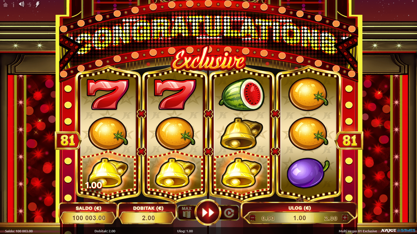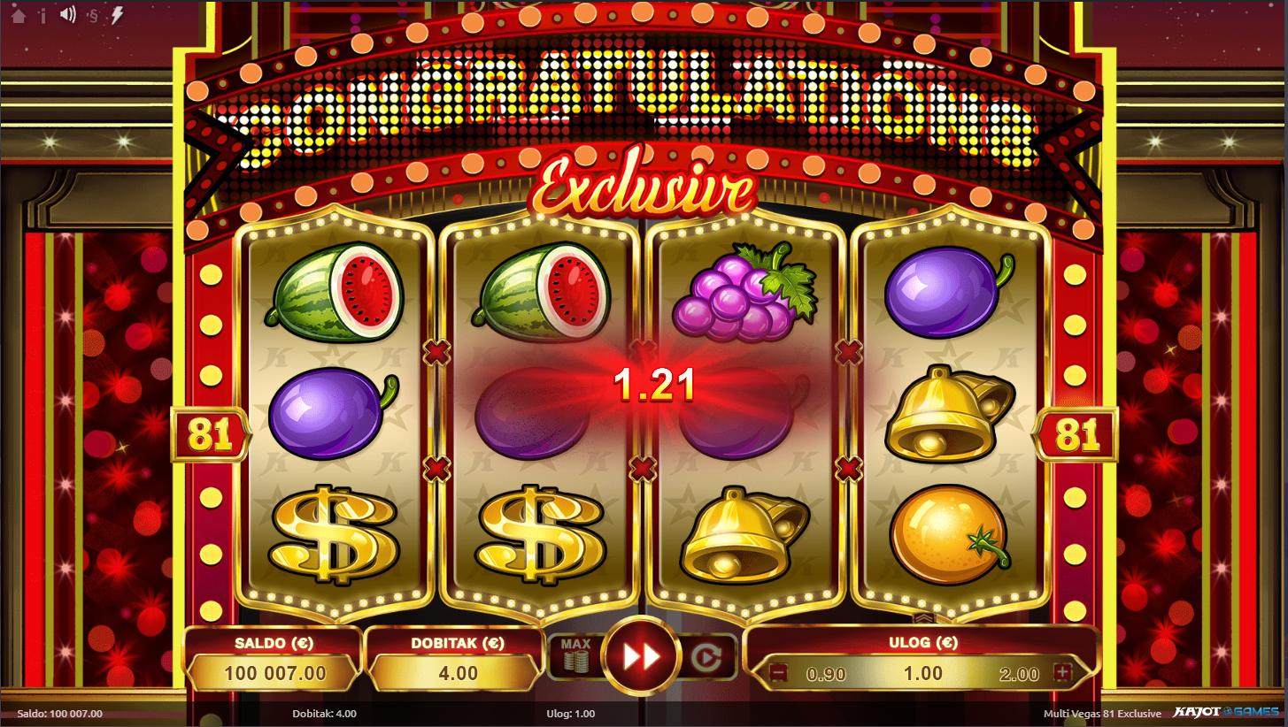 Multi Vegas 81 Exclusive ima RTP od oko 94.78%, što znači poštene šanse za isplate uz dozu uzbuđenja. Volatilnost je srednje visoka, pa se pripremi na nepredvidive, ali uzbudljive trenutke. Veliki dobici možda ne dolaze svaki spin, ali kad dođu, svijetli cijeli Vegas!