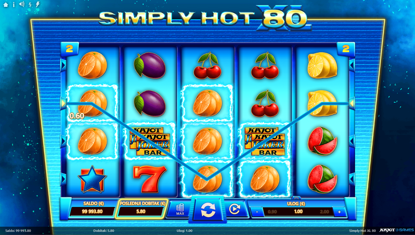 4. Koji su minimalni i maksimalni ulozi u igri Simply hot XL 80?