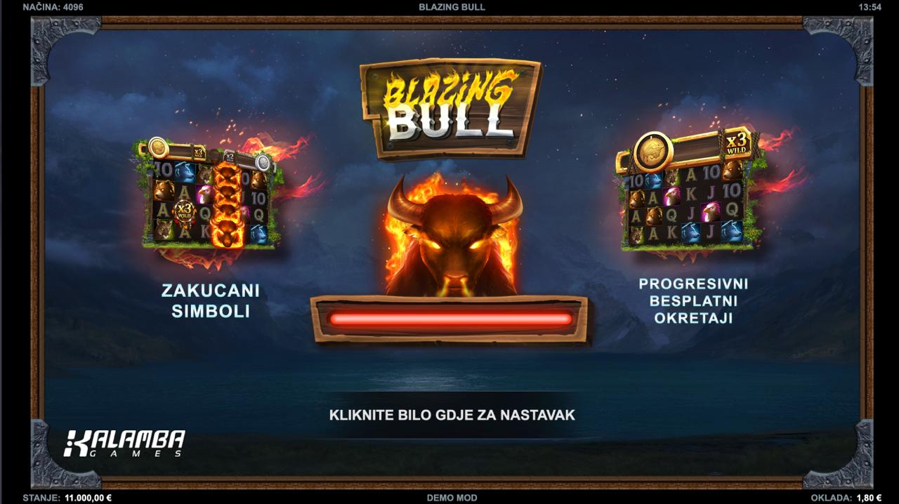 BLAZING BULL se igra na standardnoj slot mreži. Cilj je složiti iste simbole na isplatnim linijama kako bi se ostvario dobitak. Minimalni ulog je 0,60 €, a maksimalni 15,00 €, što omogućuje fleksibilno igranje — od opreznog do agresivnog. Igra nema besplatnih vrtnji, bonus rundi ni jackpot, fokusirajući se na brzu i dinamičnu slot akciju.