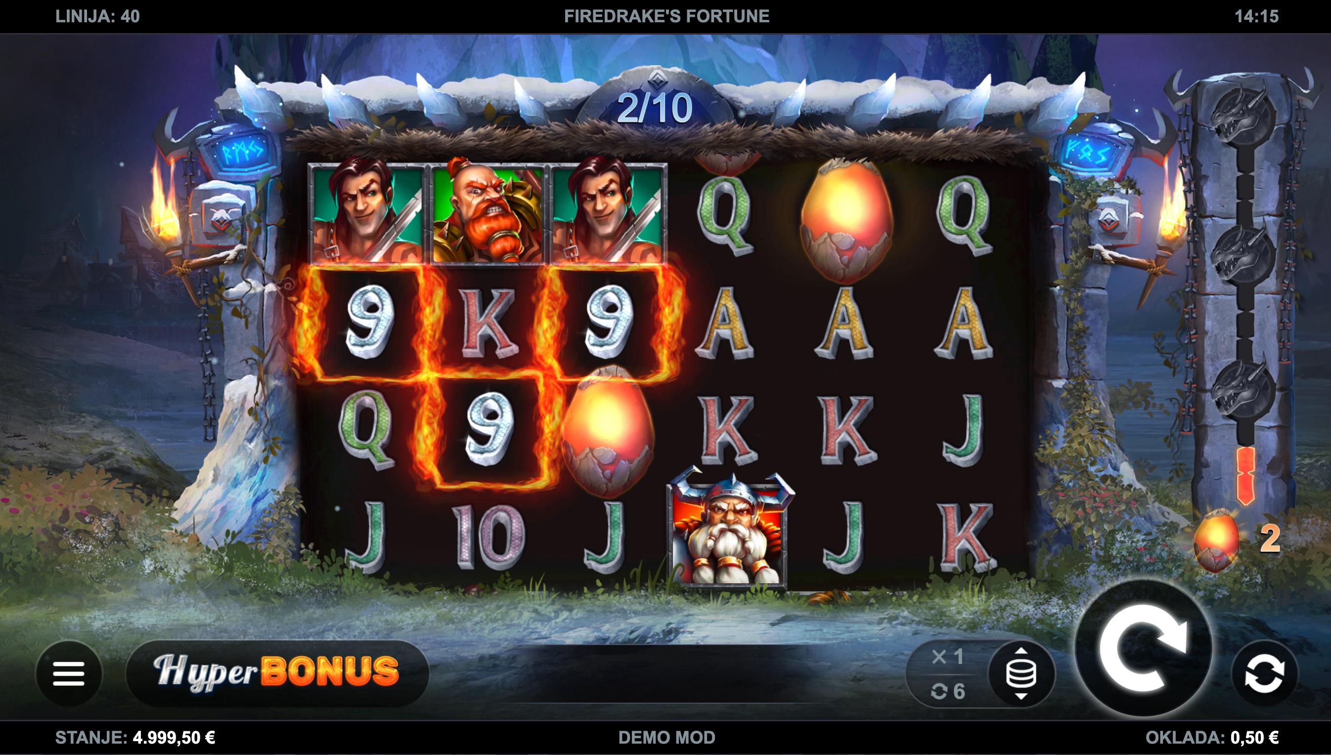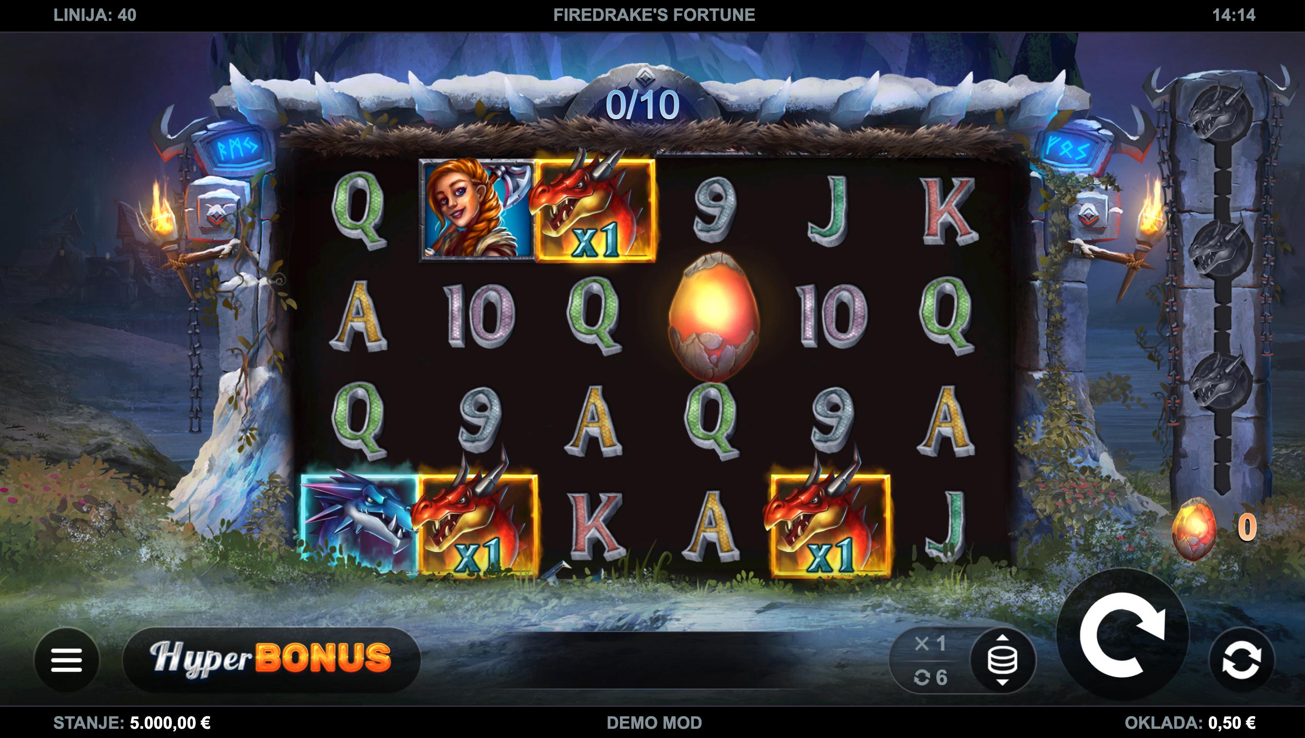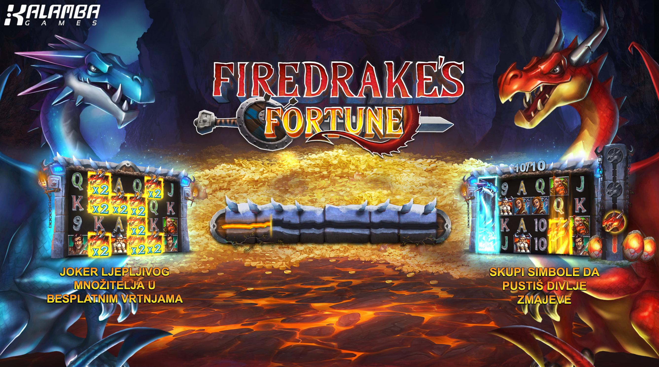 Firedrake’s Fortune je video slot koji je razvio Kalamba Games. Smješten u svijet mitoloških stvorenja i vikinških ratnika, igra se odvija na 6 koluta i 4 reda s 40 isplatnih linija. Tema igre uključuje simbole poput crvenih i plavih zmajeva, ratnika, jaja zmaja i očiju zmaja. Pozadina igre prikazuje ulaz u zmajevu špilju, stvarajući napetu atmosferu.