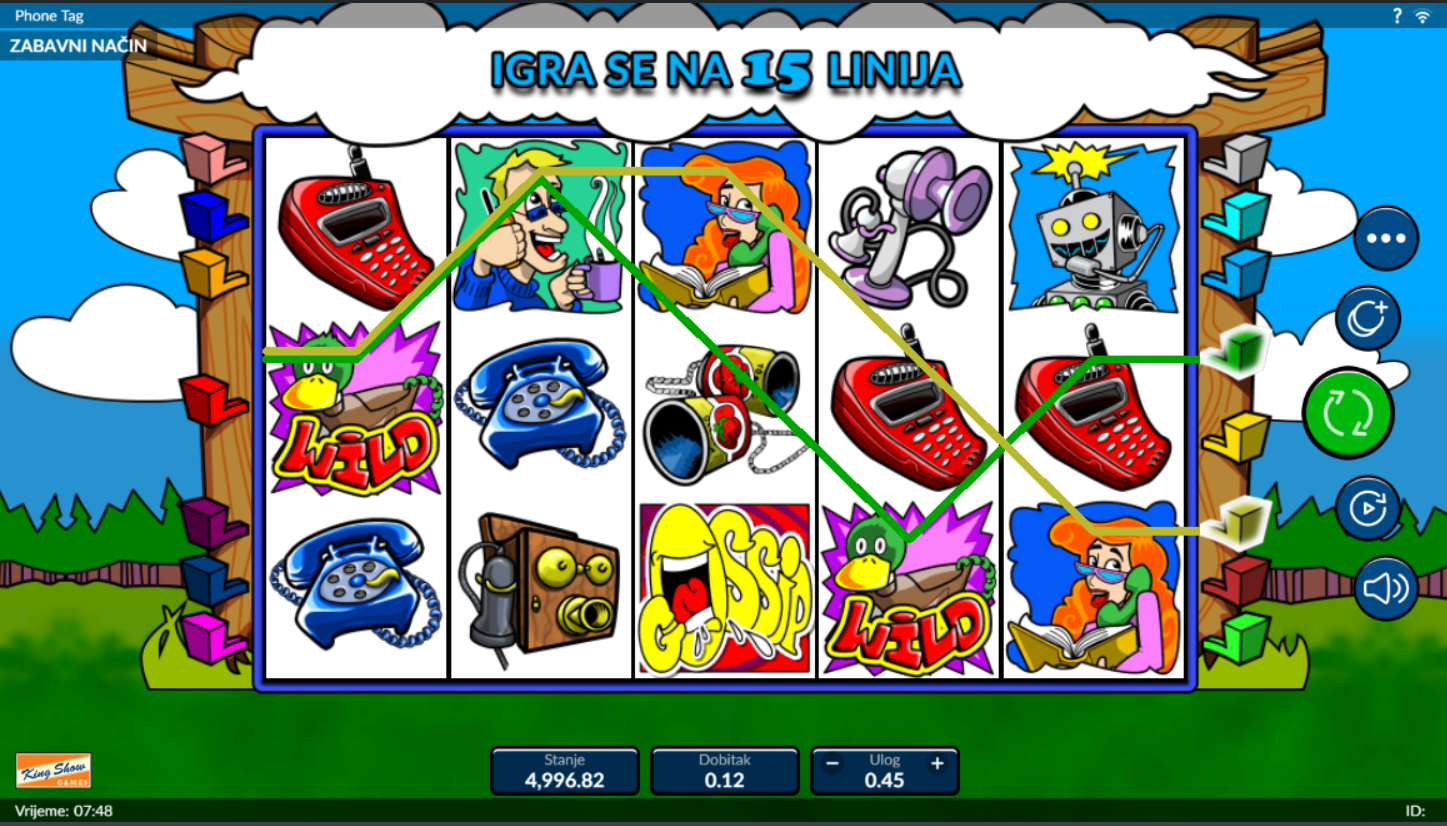 Vrti kolute, spoji simbole i pazi na telefonske aparate jer oni donose posebne bonuse i besplatne vrtnje! Tri ili više Scatter simbola aktiviraju bonus rundu, gdje svaki poziv može otkriti skrivene nagrade. Igra je jednostavna, ali energična i puna iznenađenja. Svaki spin zvoni kao prilika za dobitak! Samo podigni slušalicu i odgovori na poziv sreće!