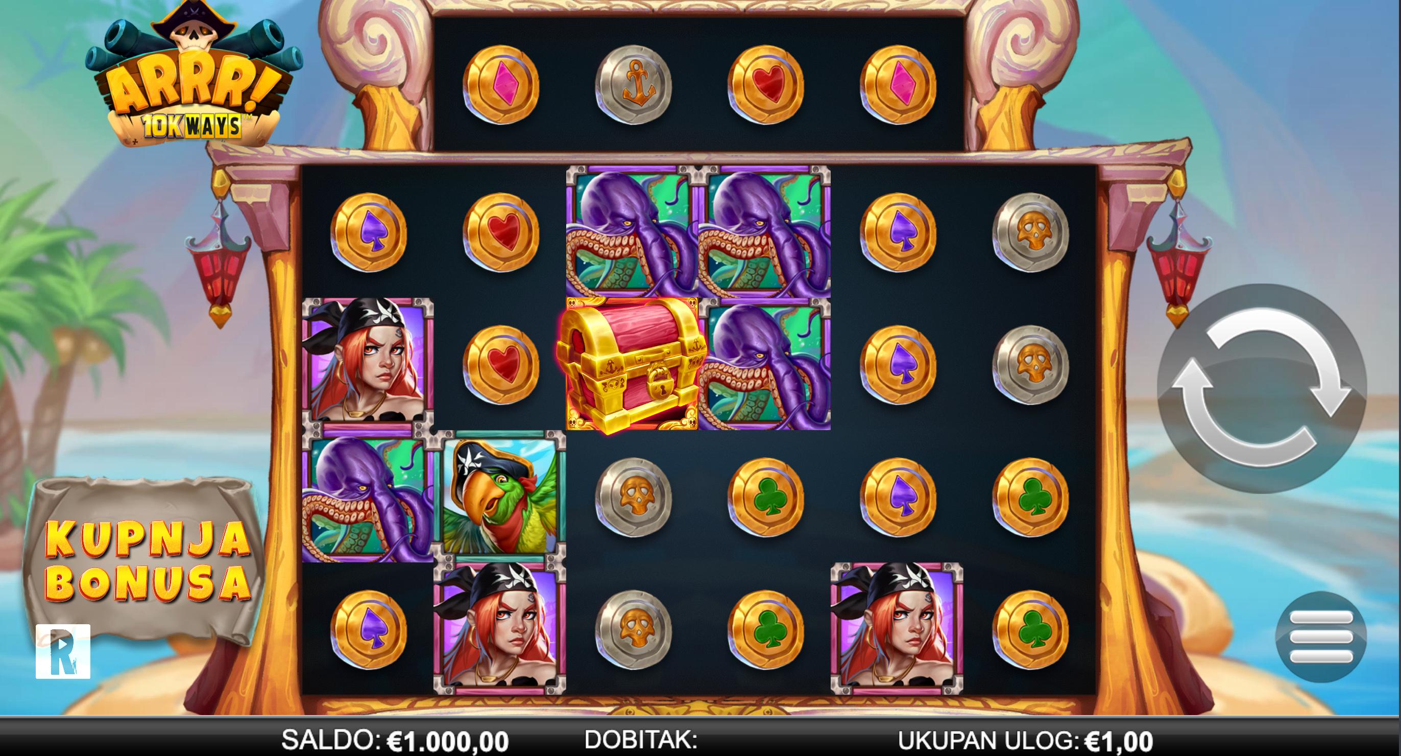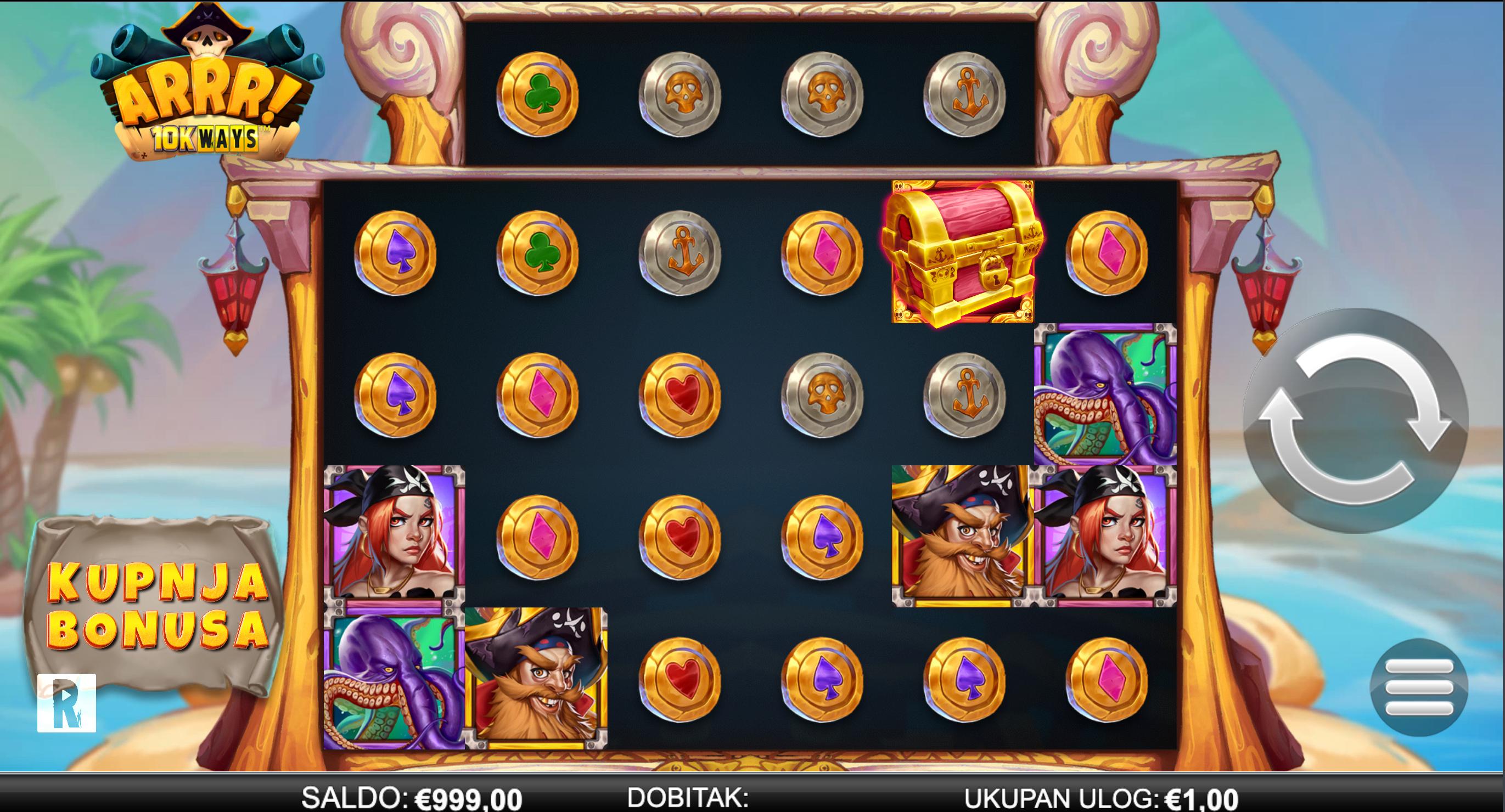 ARRR! 10K Ways je video slot providera Light & Wonder (LnW) koji donosi piratsku tematiku na mrežu s velikim brojem mogućih dobitaka. Minimalni ulog iznosi 0,20 €, a maksimalni ulog iznosi 12,00 €. Igra nema jackpot.