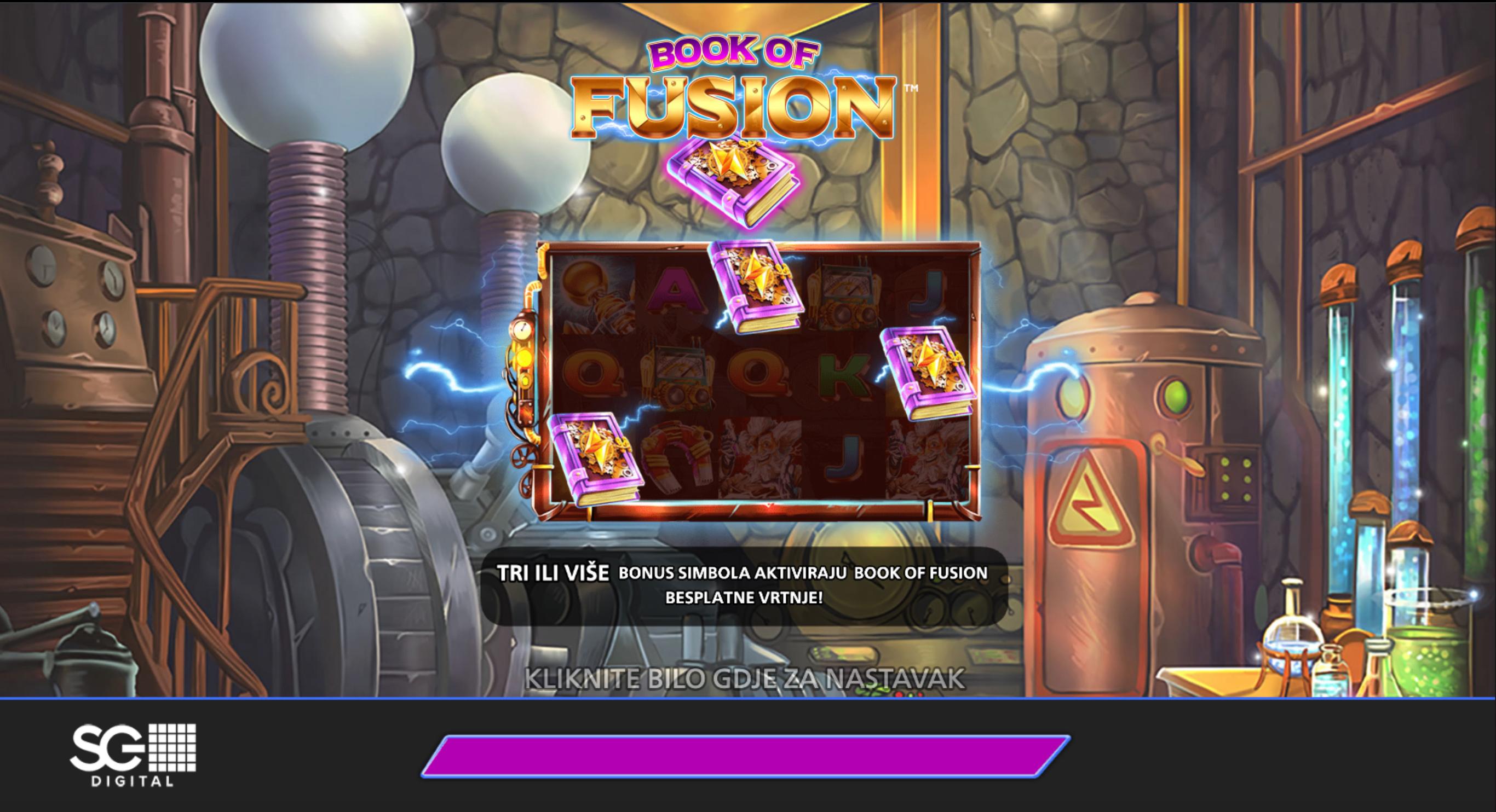 Book of Fusion je video slot koji donosi alkemijsku temu i klasični „Book” stil igre sa 5 koluta i 10 isplatnih linija. Razvijen od strane Light & Wondera, igra je dinamična i vizualno atraktivna, a dostupni ulozi su od 0,10 € do 35,00 €. U verziji na SuperSportu minimalni ulog je 0,10 €, a maksimalni ulog 35,00 €. Igra nema jackpot.