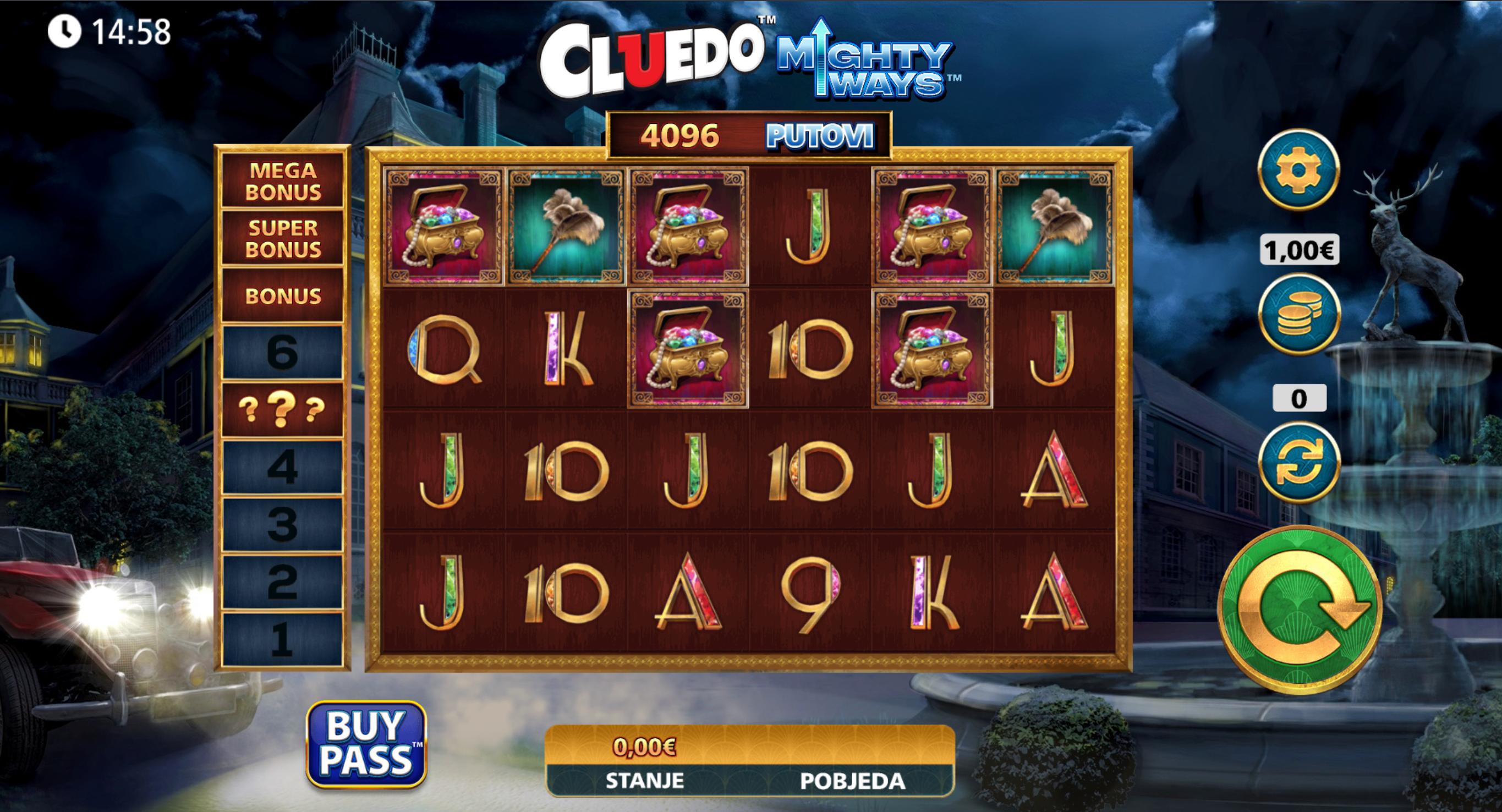 Cluedo Mighty Ways vodi igrača u detektivsku avanturu kroz tamnu ladanjsko-mansion atmosferu, gdje se svaka vrtnja pretvara u potragu za tragovima, simbolima i bonusima. Igra ima 6 koluta (s mogućnošću proširenja redova) što omogućuje do 262 144 načina dobitka.