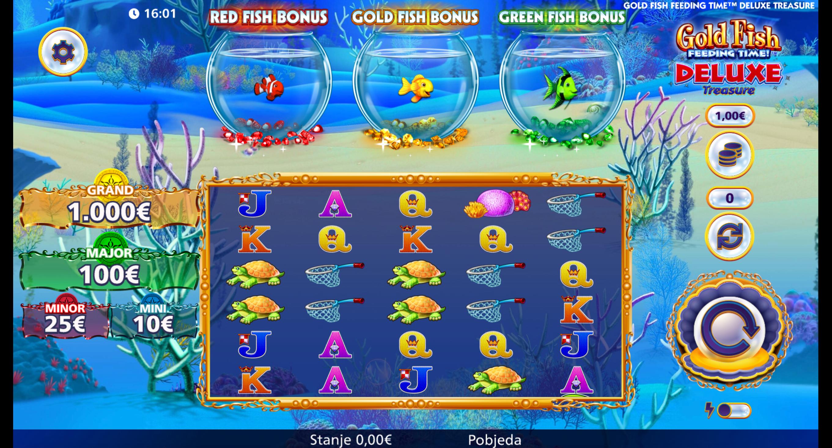 Gold Fish Feeding Time Deluxe Treasure vodi vas kroz šaren podvodni svijet i motiv zlatnih ribica koje treba hraniti da biste otključali bonus igre.