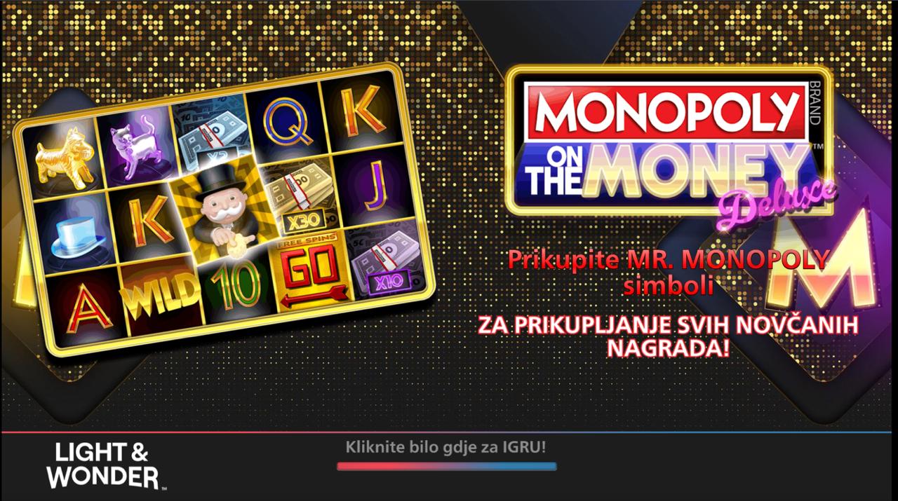Dobrodošli u svijet jednog od najpoznatijih brendova na svijetu, sada u obliku zabavnog online slota! MONOPOLY ON THE MONEY DELUXE dolazi od providera Light & Wonder (LnW) i donosi prepoznatljivu Monopoly atmosferu uz jednostavnu, ali uzbudljivu mehaniku. Ova igra kombinira klasični slot ugođaj s estetikom popularne društvene igre. Minimalni ulog iznosi 0,10 €, dok maksimalni iznosi 50,00 €, što je čini pristupačnom svim vrstama igrača. Jackpot nije dostupan u ovoj verziji, ali igra pruža stabilne i česte dobitke kroz jasnu strukturu isplata. Ako voliš slotove s poznatom temom i jednostavnim gameplayem, MONOPOLY ON THE MONEY DELUXE je odličan izbor!