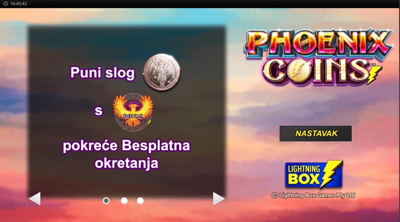 Dobrodošli u svijet vatre i bogatstva gdje svaki spin može probuditi mitskog Feniksa! PHOENIX COINS dolazi od providera Light & Wonder (LnW) i donosi dinamično iskustvo video slota s očaravajućim vizualima i jednostavnom, ali uzbudljivom mehanikom. Minimalni ulog iznosi 0,40 €, dok maksimalni iznosi 80,00 €, što igru čini pogodnom za igrače različitih stilova. PHOENIX COINS nema jackpot, ali svaki spin može iznenaditi velikim dobitkom zahvaljujući snažnim isplatnim simbolima i uglađenoj dinamici igre. Ako voliš slotove s intenzivnom atmosferom i direktnom akcijom, PHOENIX COINS je prava igra za tebe!