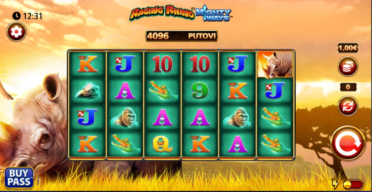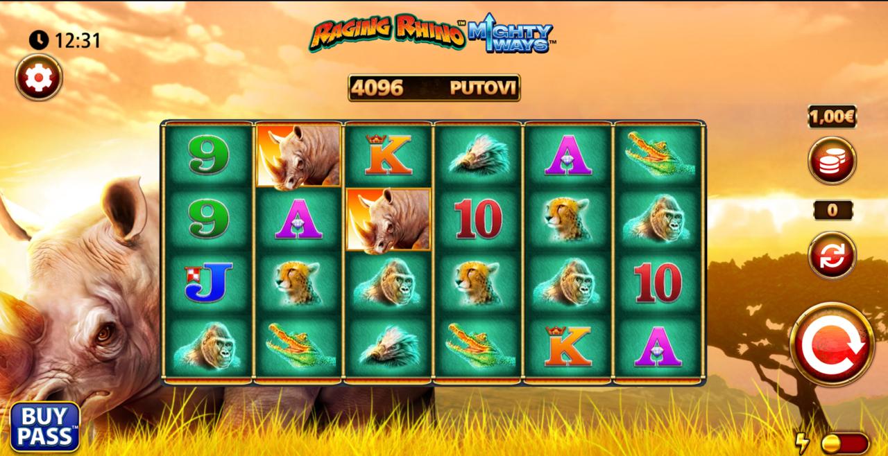 RAGING RHINO MIGHTY WAYS se igra na mreži slot rola, gdje igraš spinove i nastojiš složiti dobitne kombinacije simbola s lijeva na desno. Svaki spin pruža priliku za kombinacije s različitim isplatnim simbolima, a posebne značajke — poput proširenih simbola ili bonus rundi — povećavaju šanse za veću isplatu. Minimalni ulog je 0,20 €, a maksimalni 20,00 €, što omogućuje i oprezno i hrabro igranje. Igra nema besplatnih vrtnji, bonus rundi ni jackpot — sve se vrti oko simbola, sreće i intuicije.